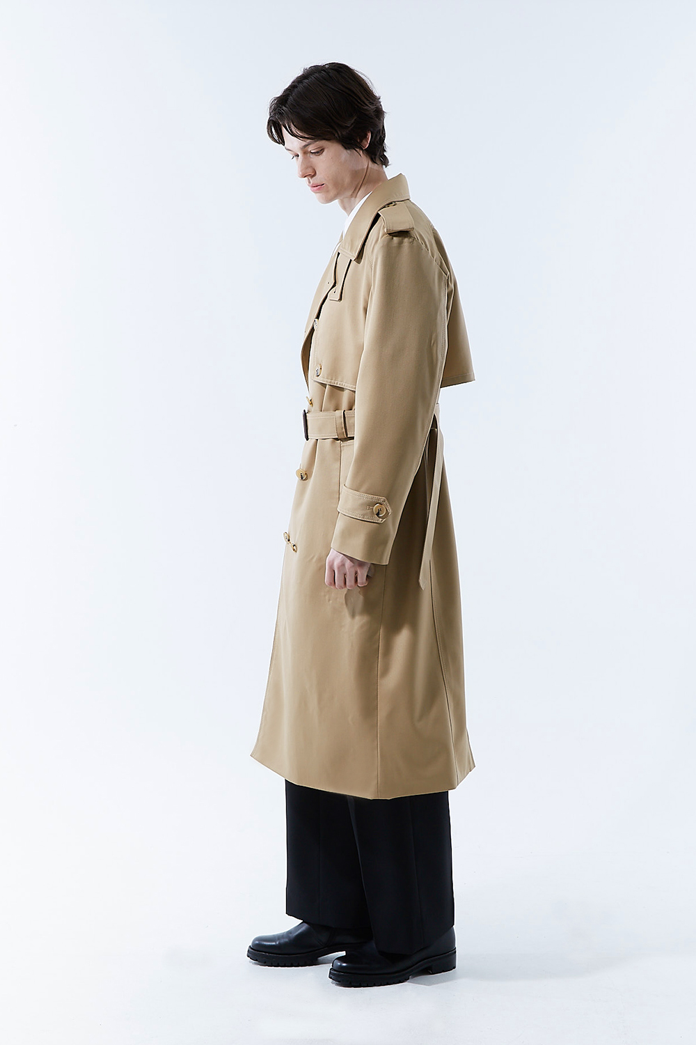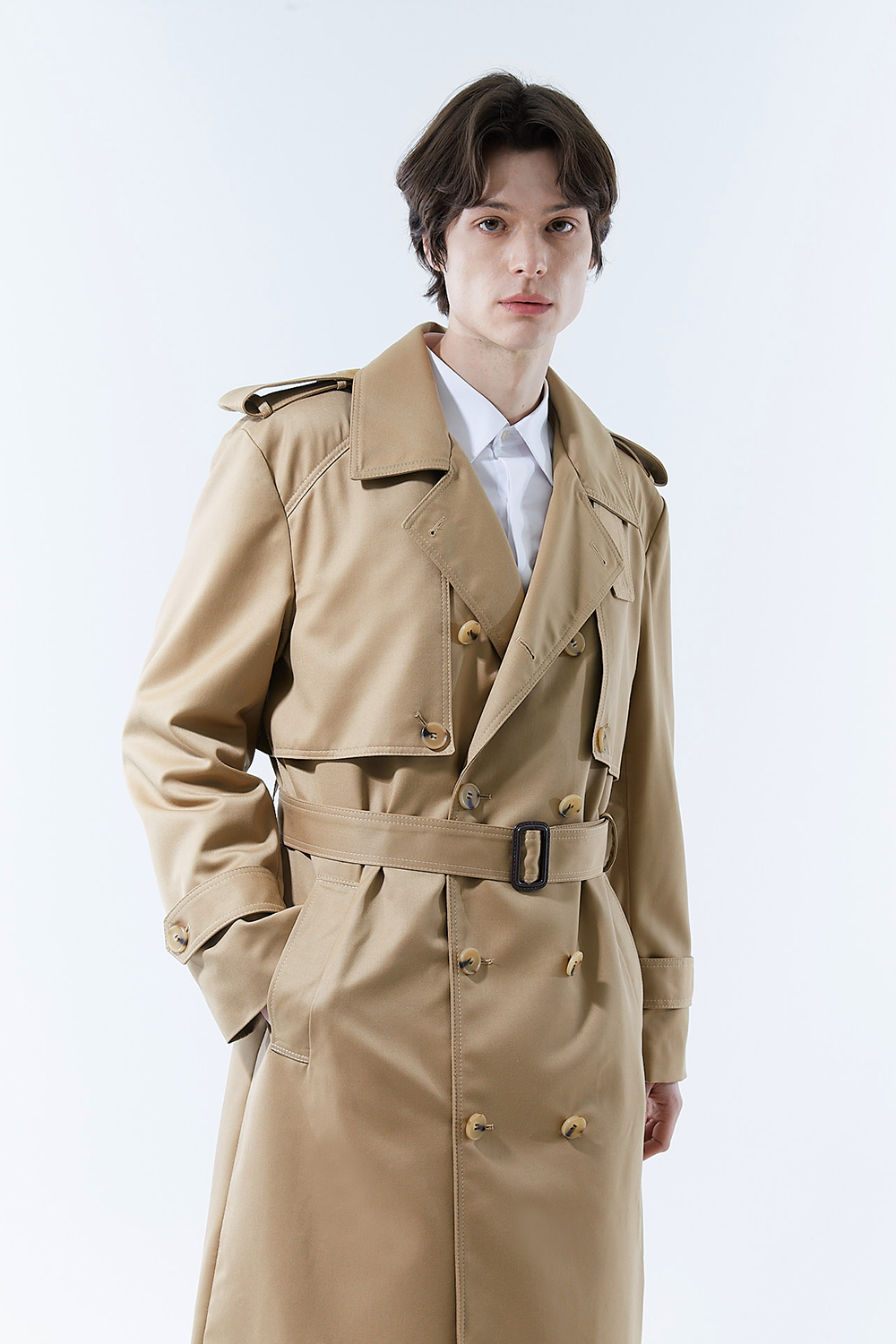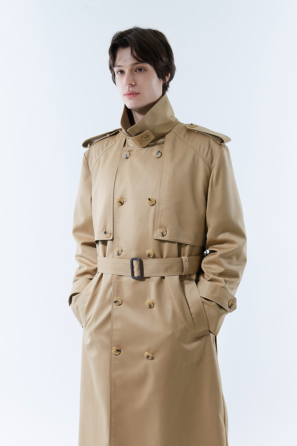 HIGH-END 울 100% 하이브리드 딥-베이지 롱 트렌치코트SALE