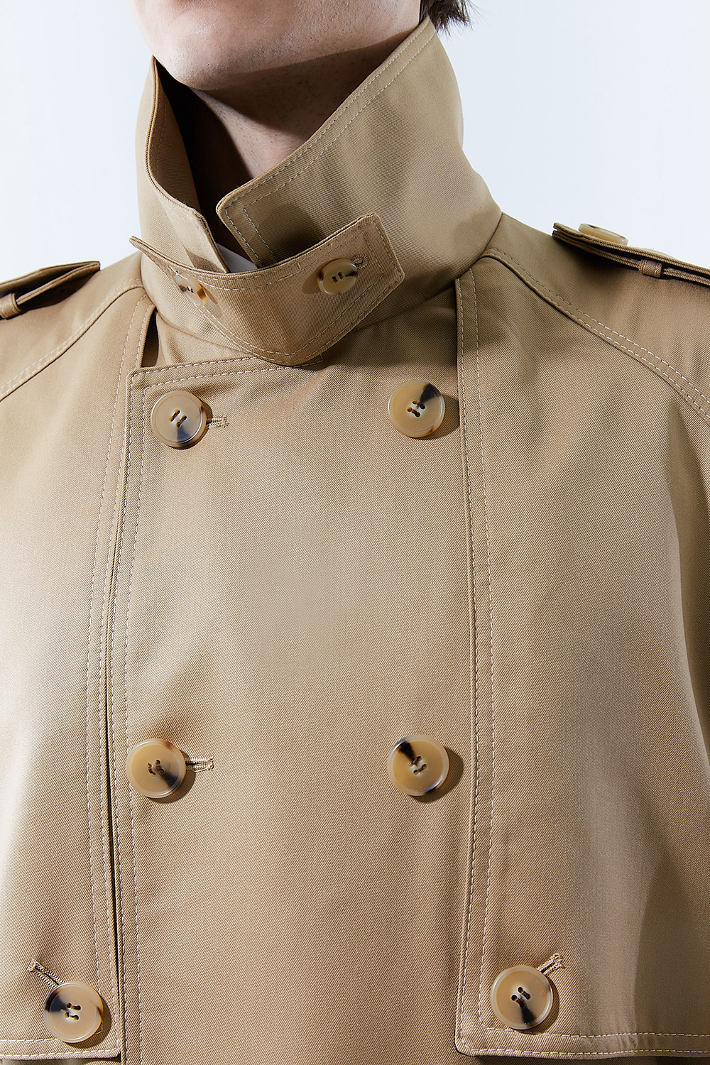 * 럭셔리 트렌치코트에 사용되는 최고급 울 100%로 고급스러운 윤기와 부드러운 터치감이 예술이며 적당한 두께감으로 구김이 안가는 최고급 원단.