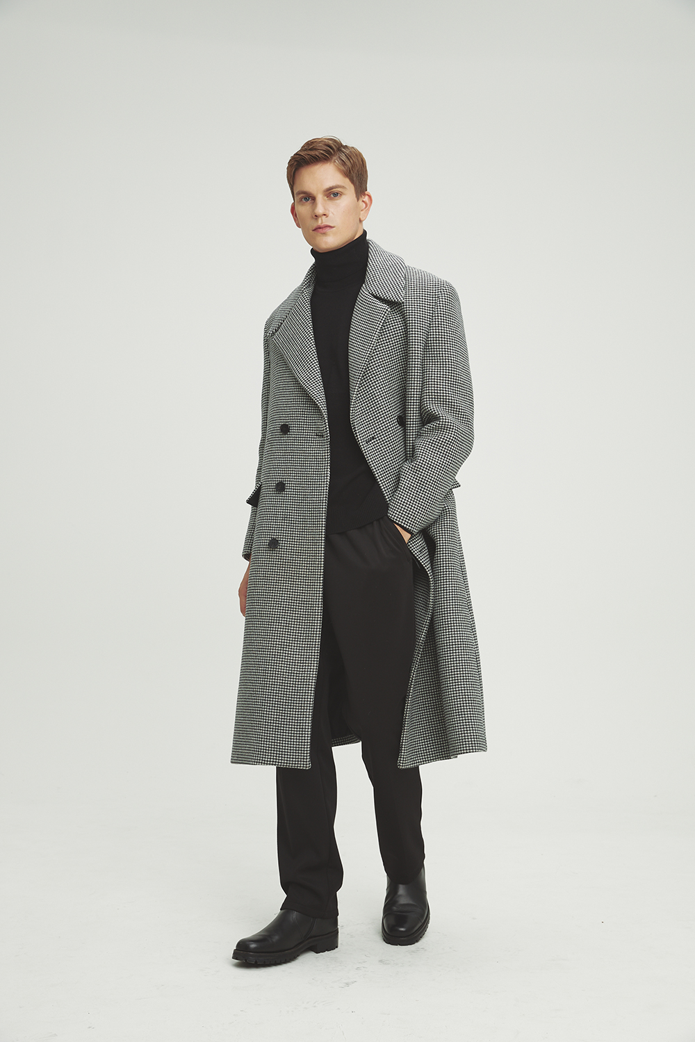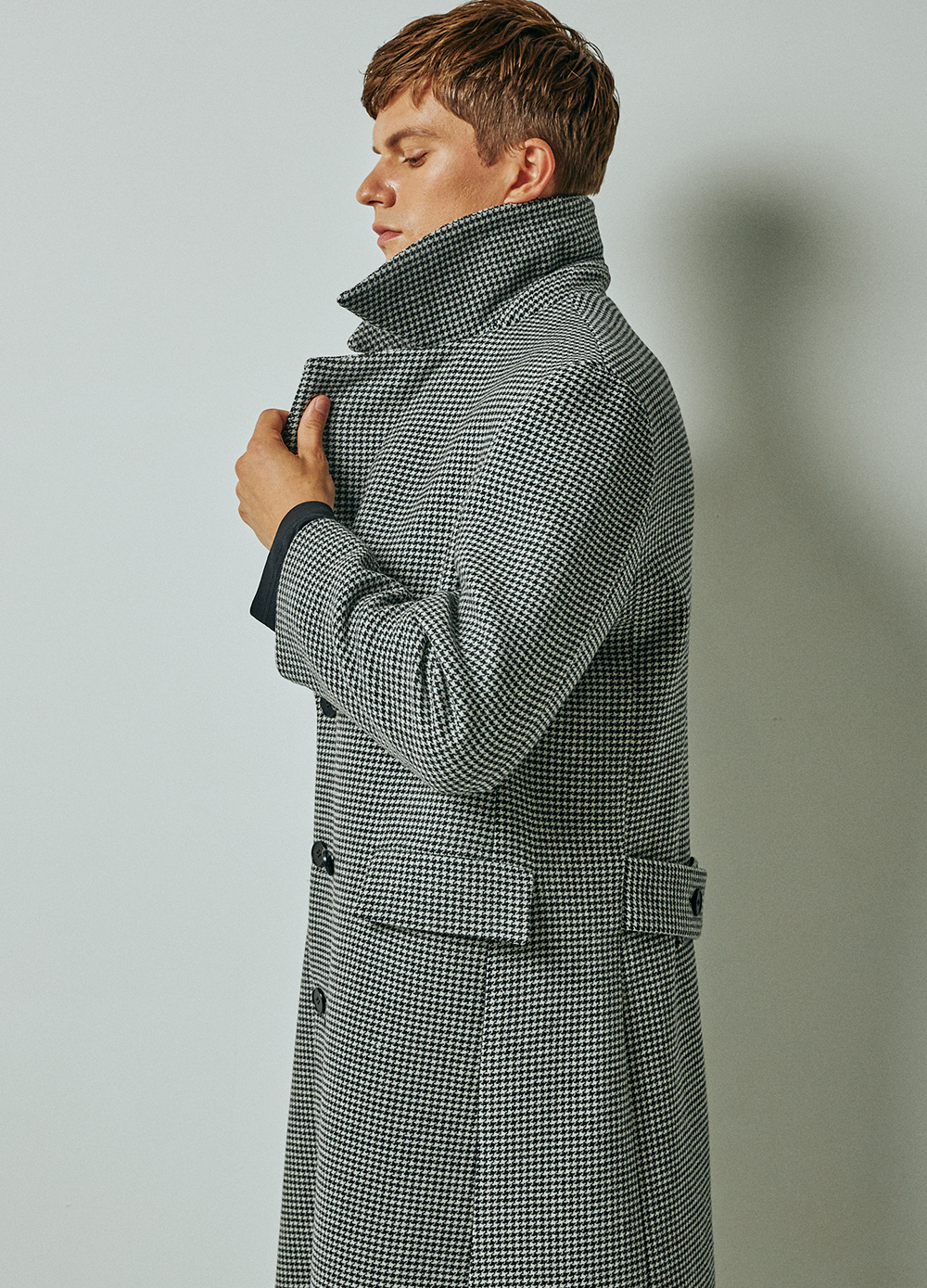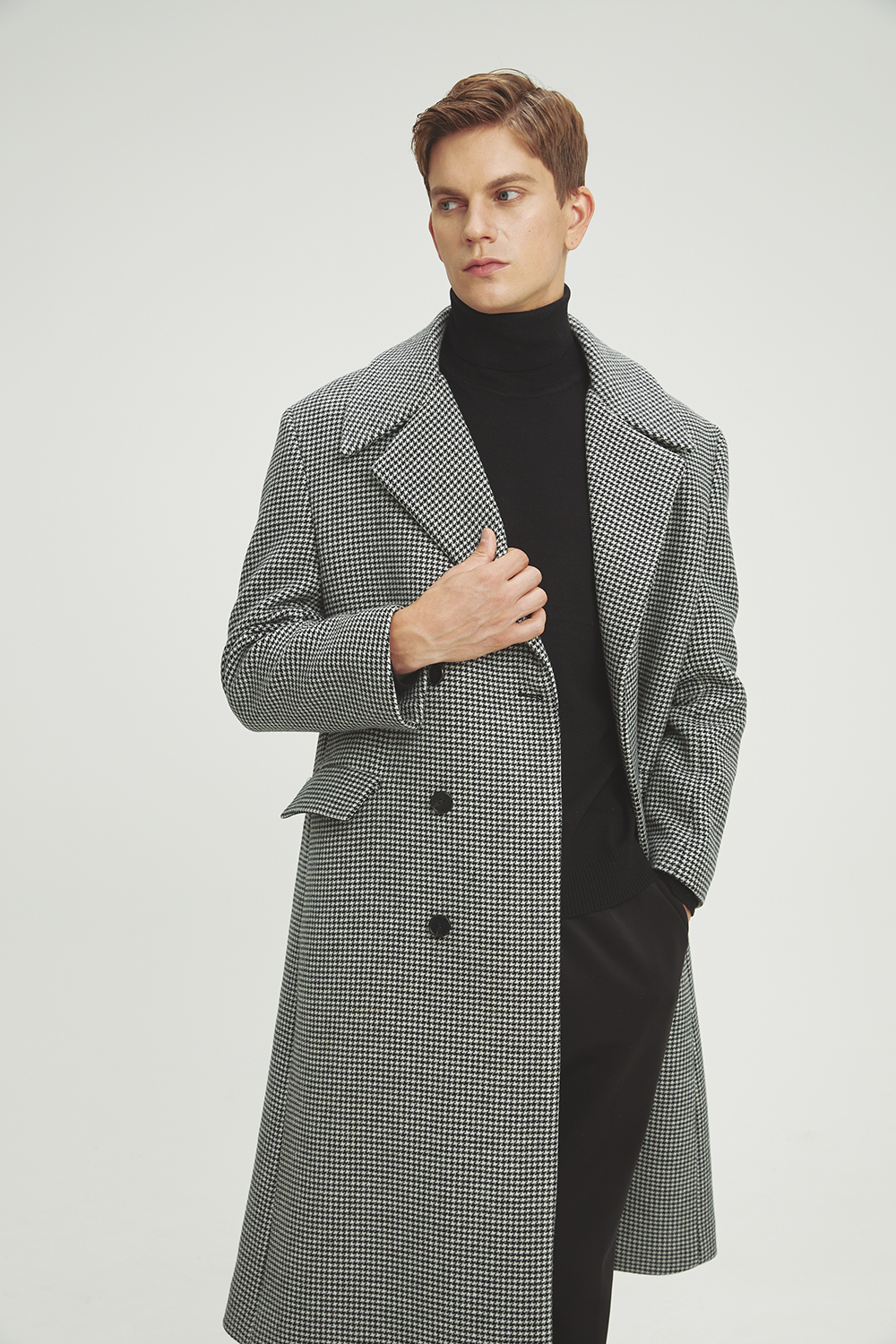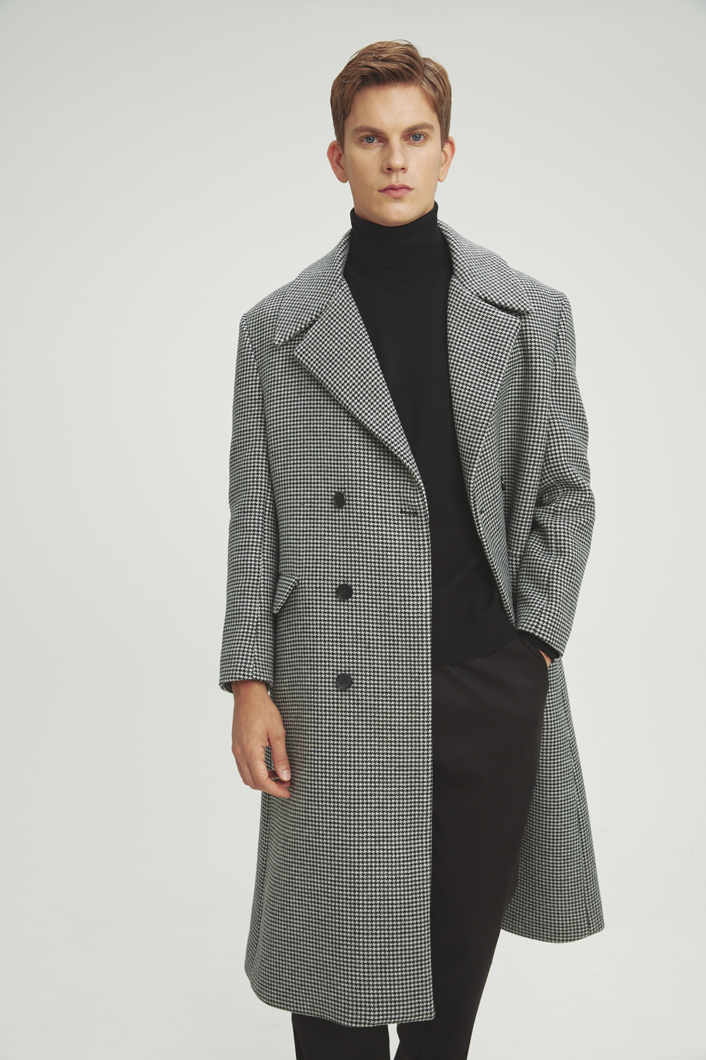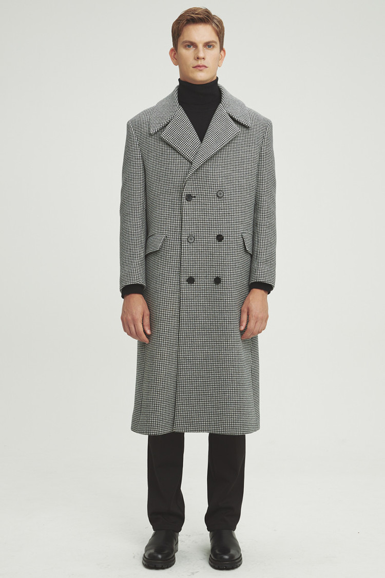 고급스러운 하운드-투스 체크 더블 슈퍼 롱코트, 두툼한 두께감으로 보온성이 뛰어난