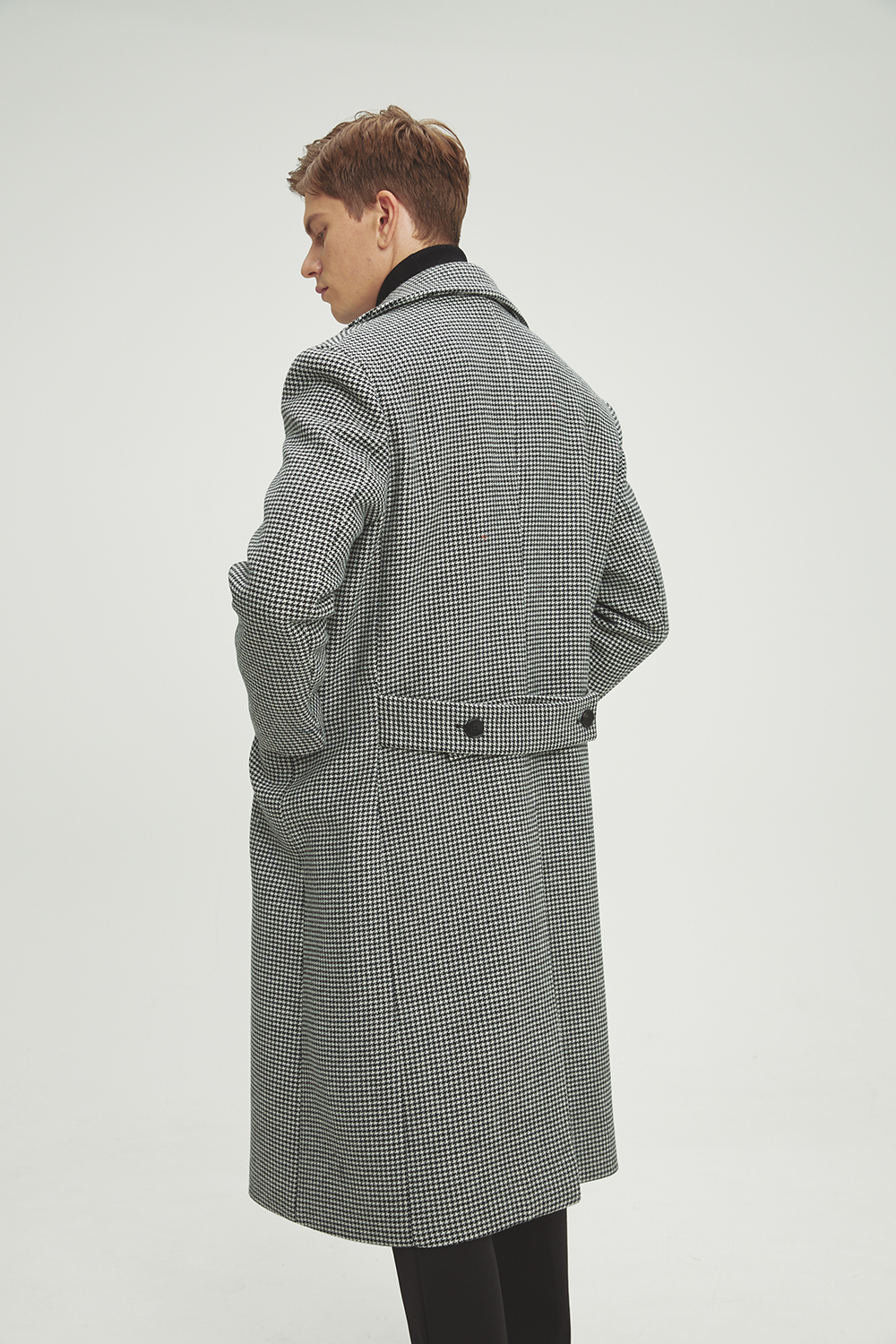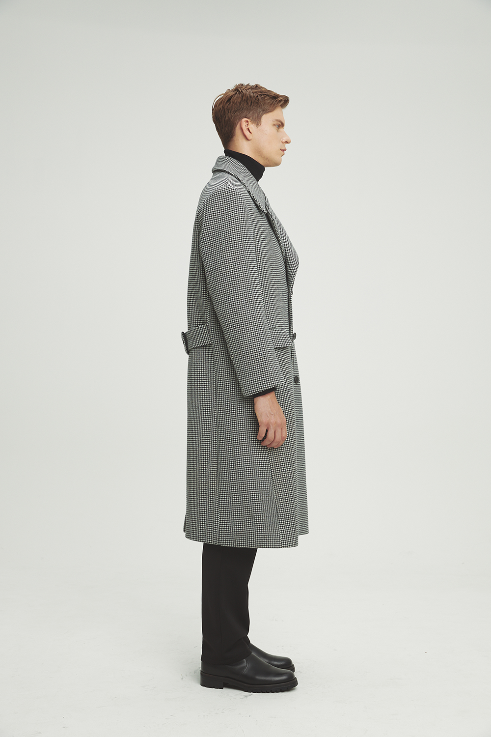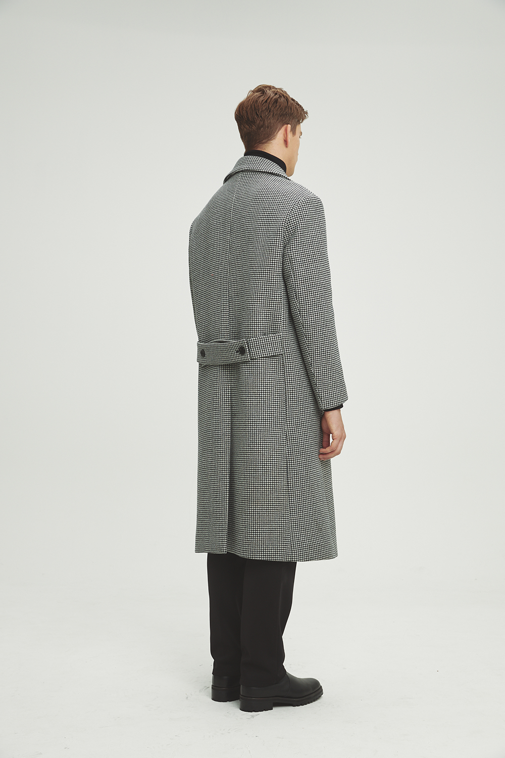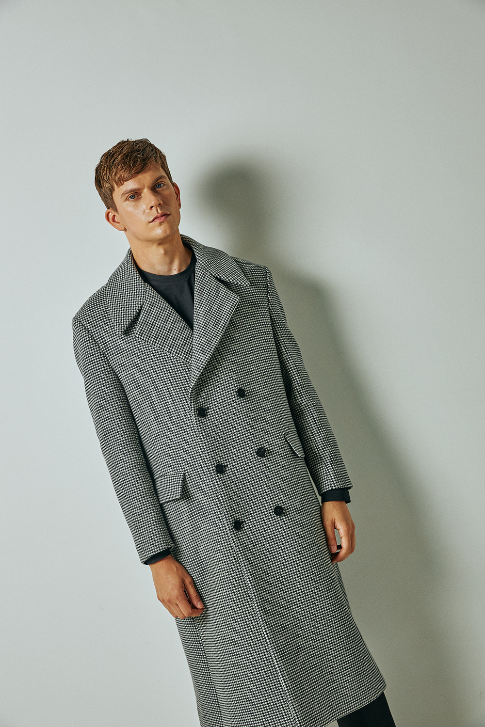 고급스러운 하운드-투스 체크 더블 슈퍼 롱코트, 두툼한 두께감으로 보온성이 뛰어난