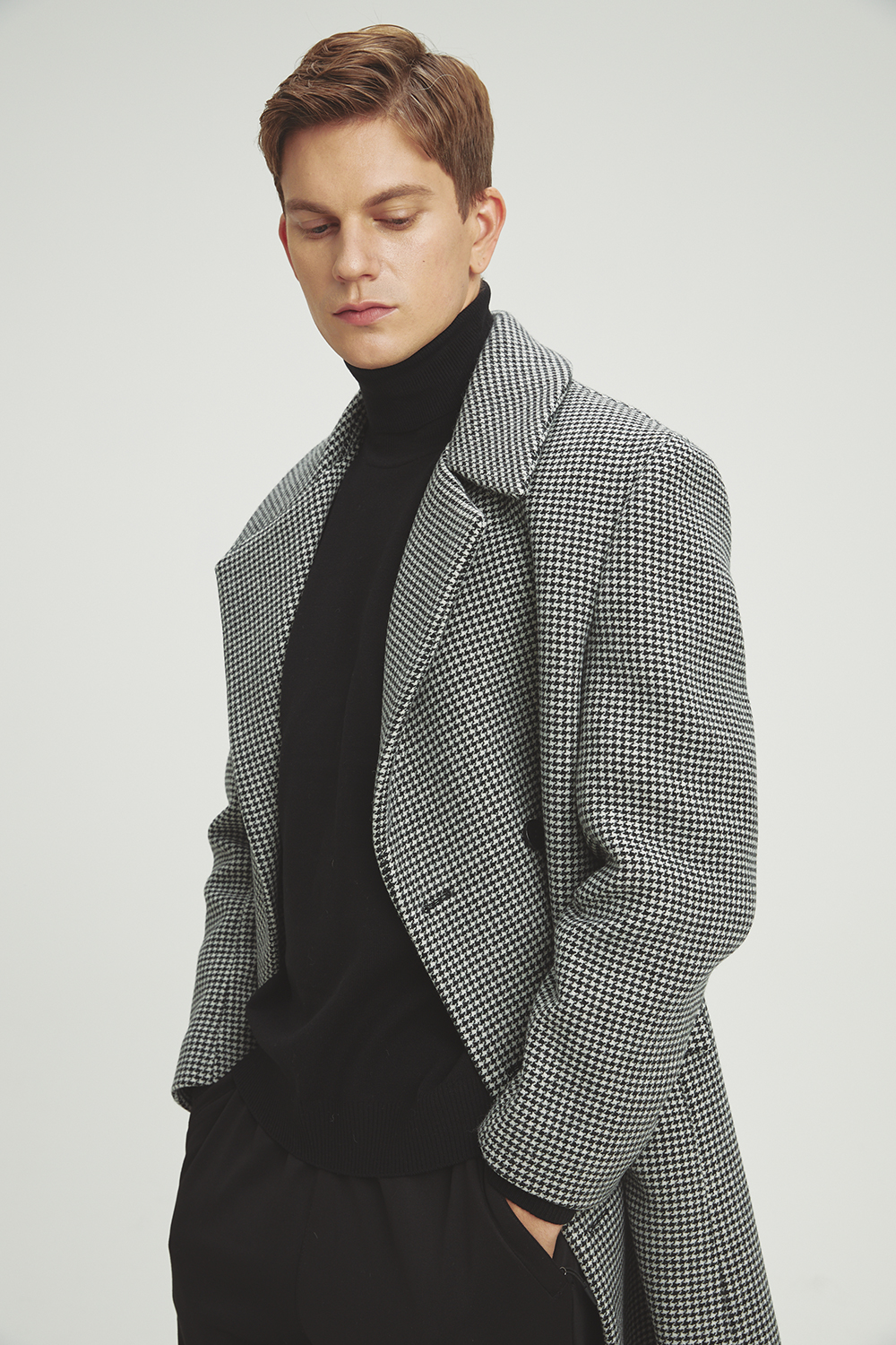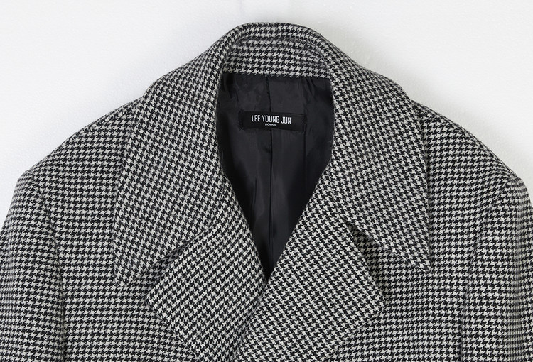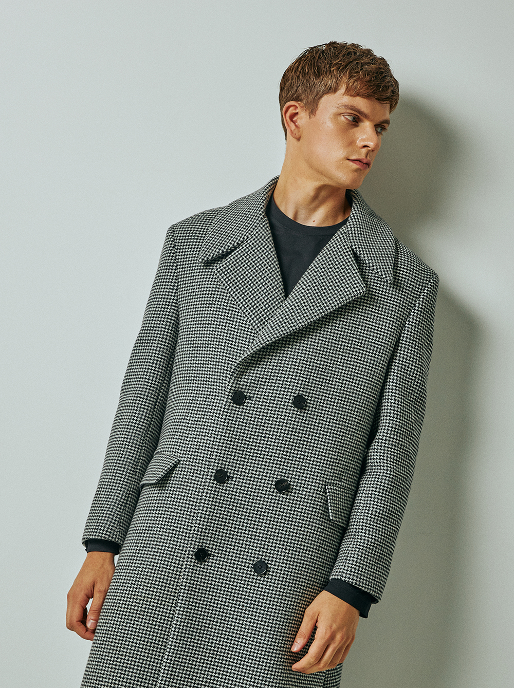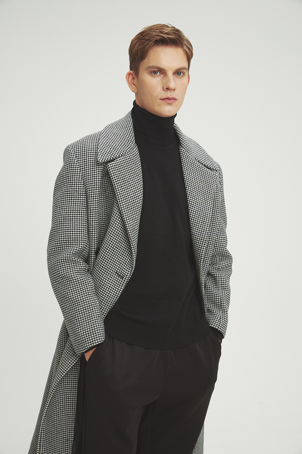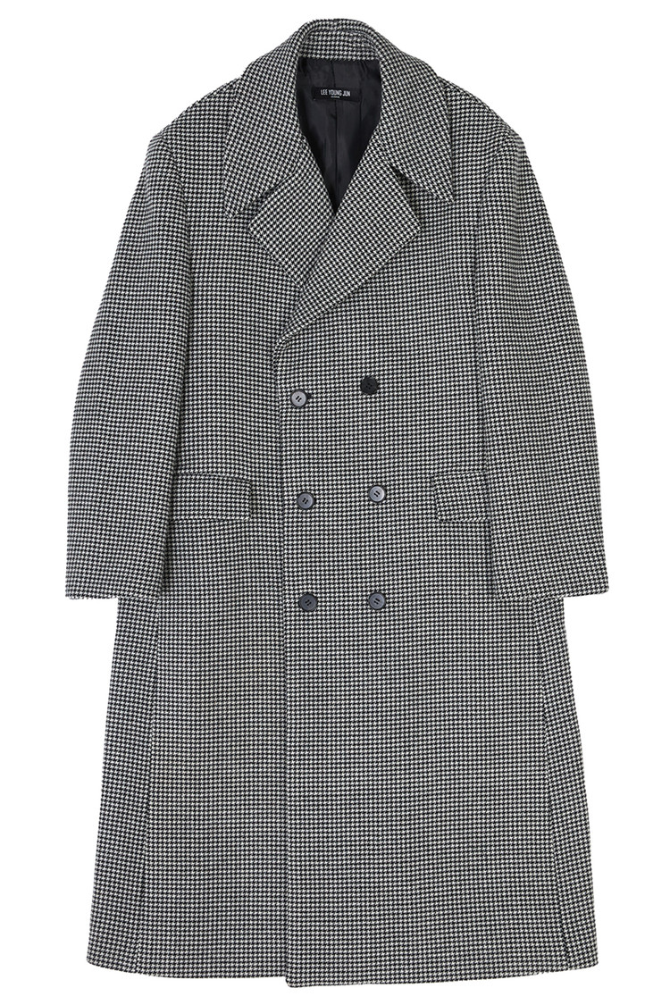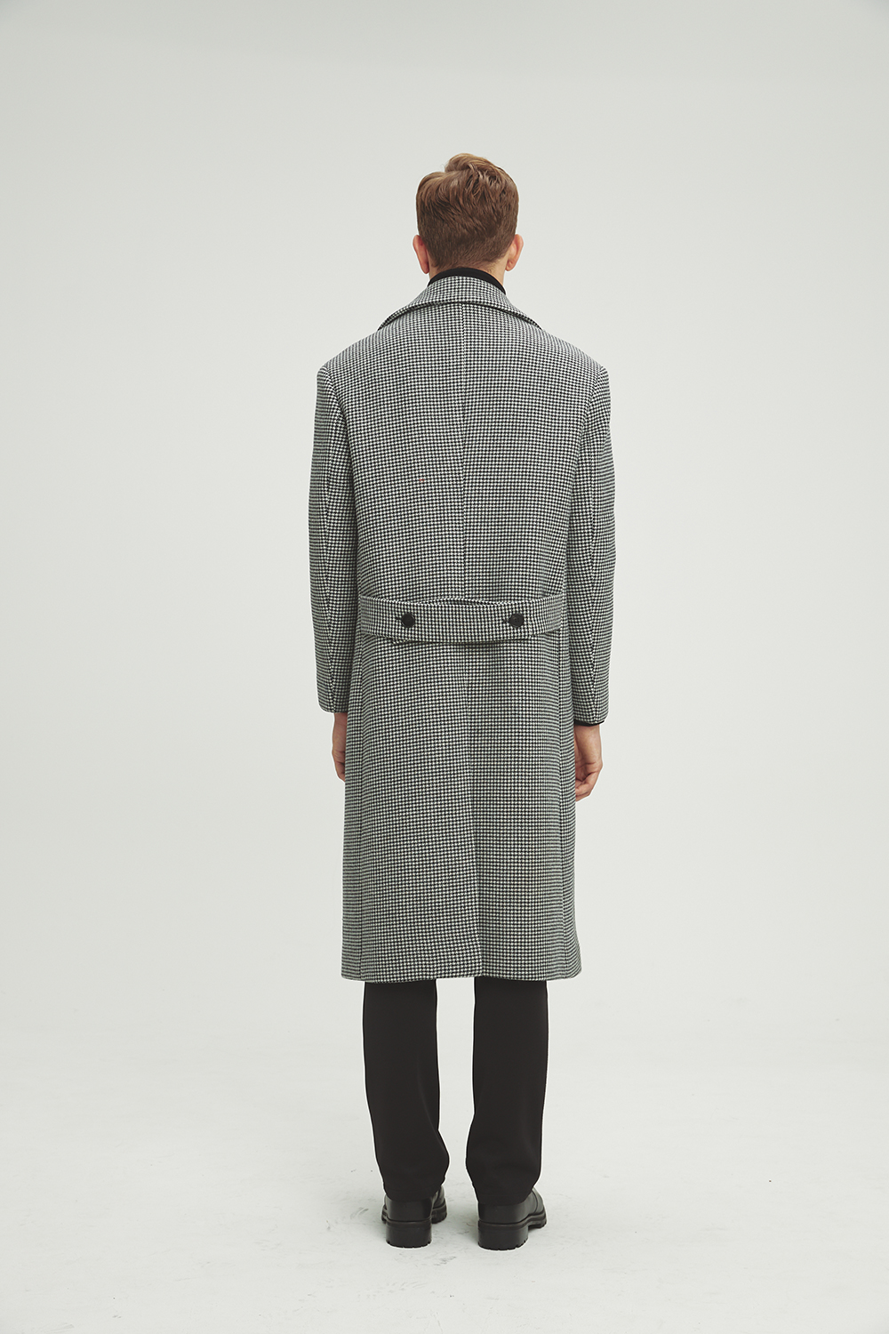 고급스러운 하운드-투스 체크 더블 슈퍼 롱코트, 두툼한 두께감으로 보온성이 뛰어난
