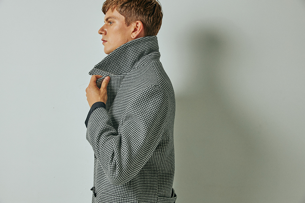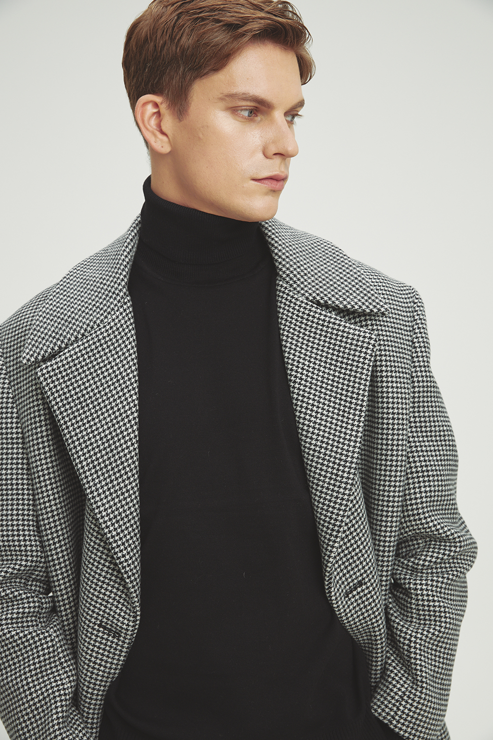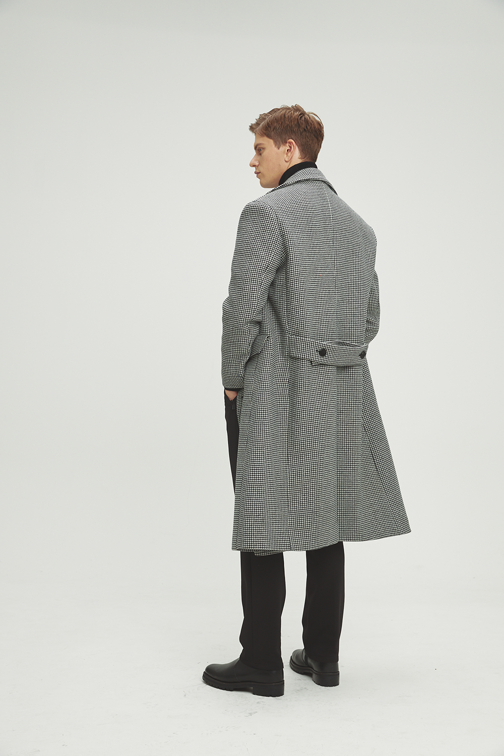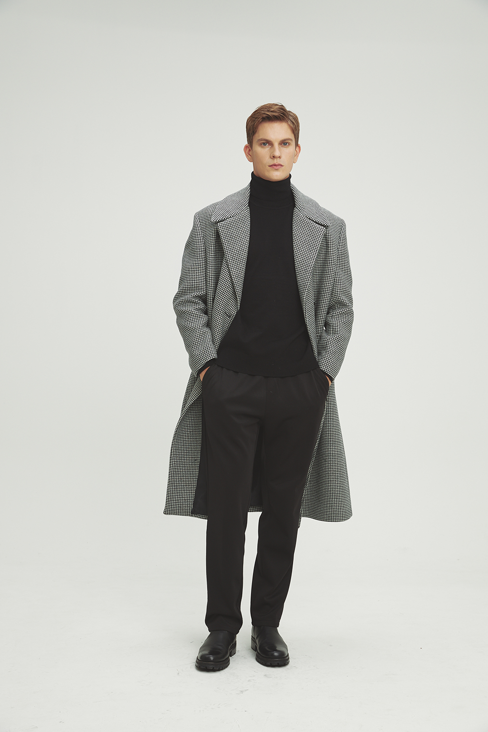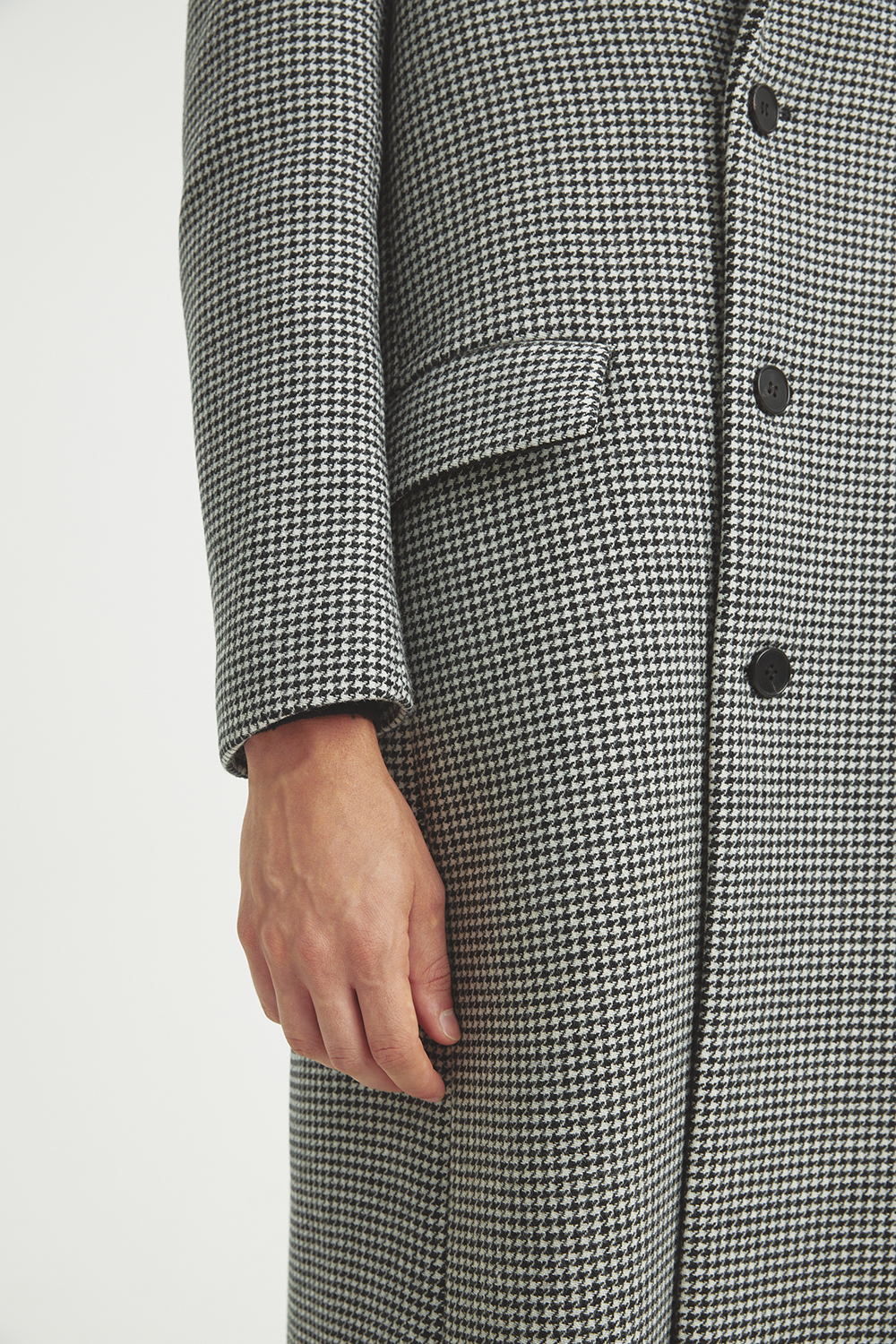고급스러운 하운드-투스 체크 더블 슈퍼 롱코트, 두툼한 두께감으로 보온성이 뛰어난