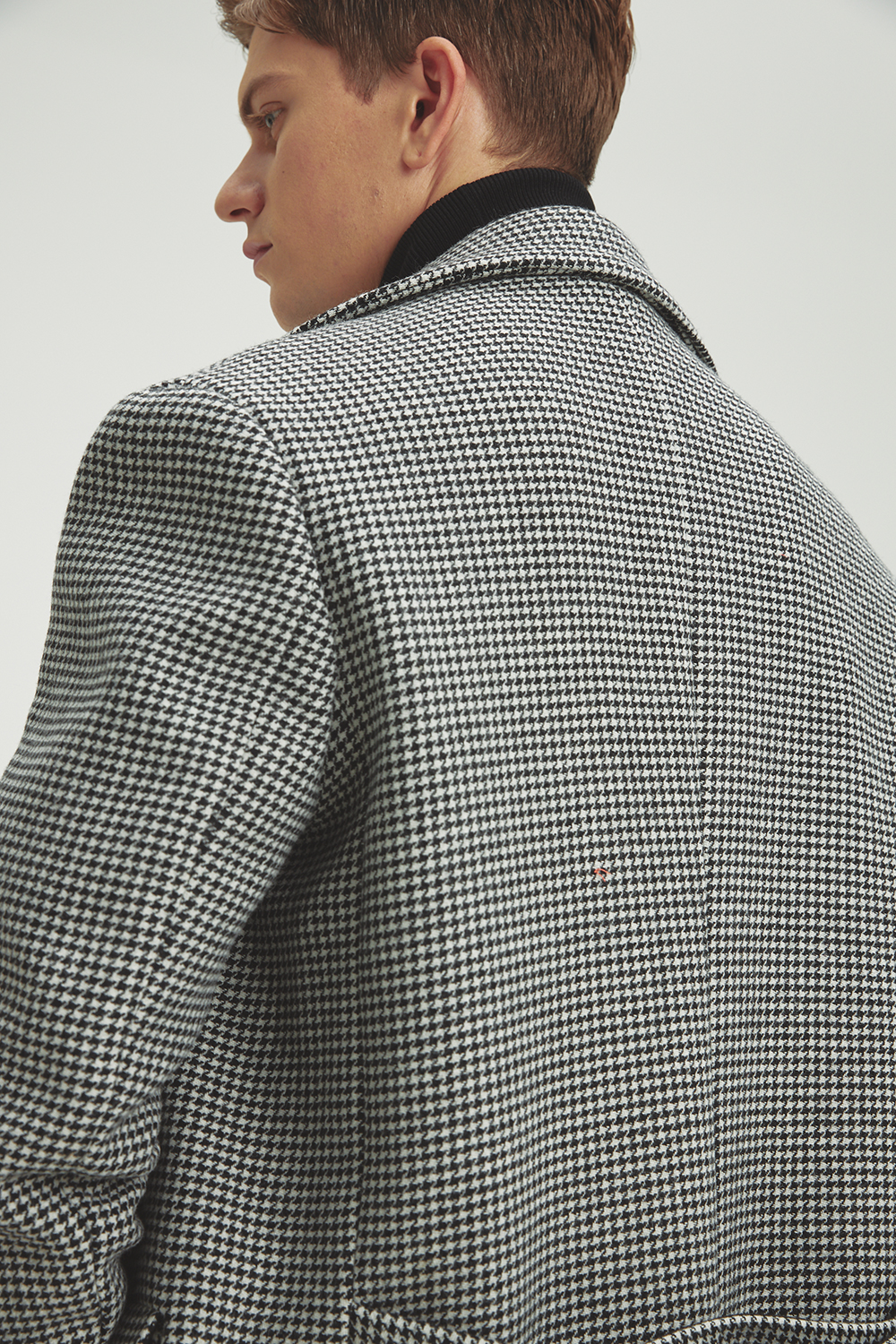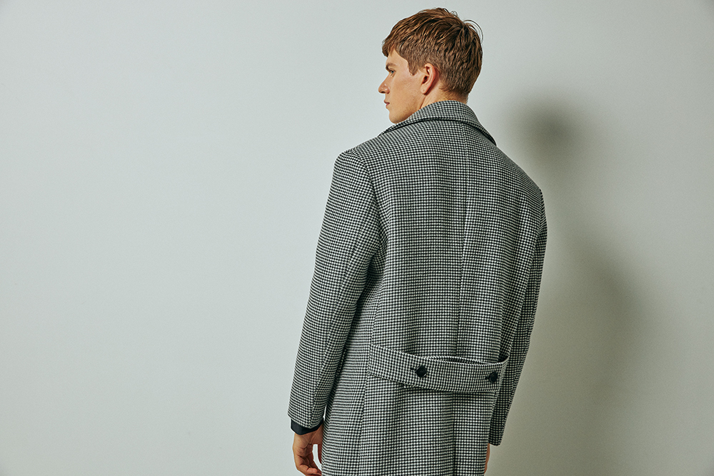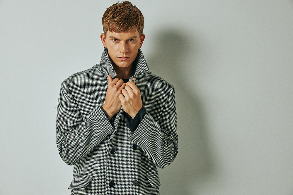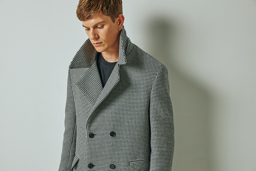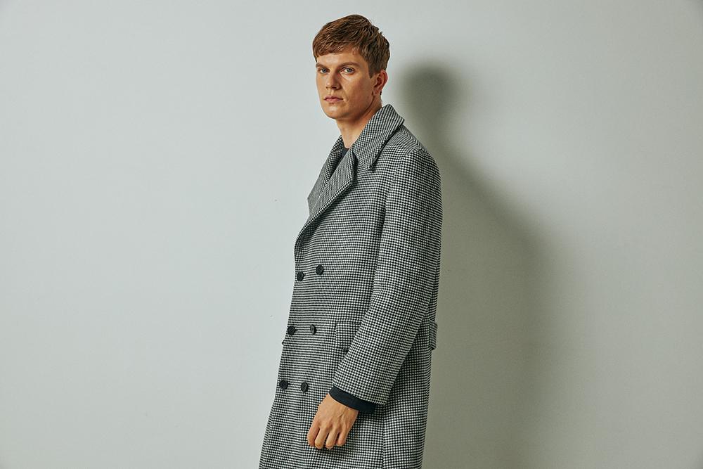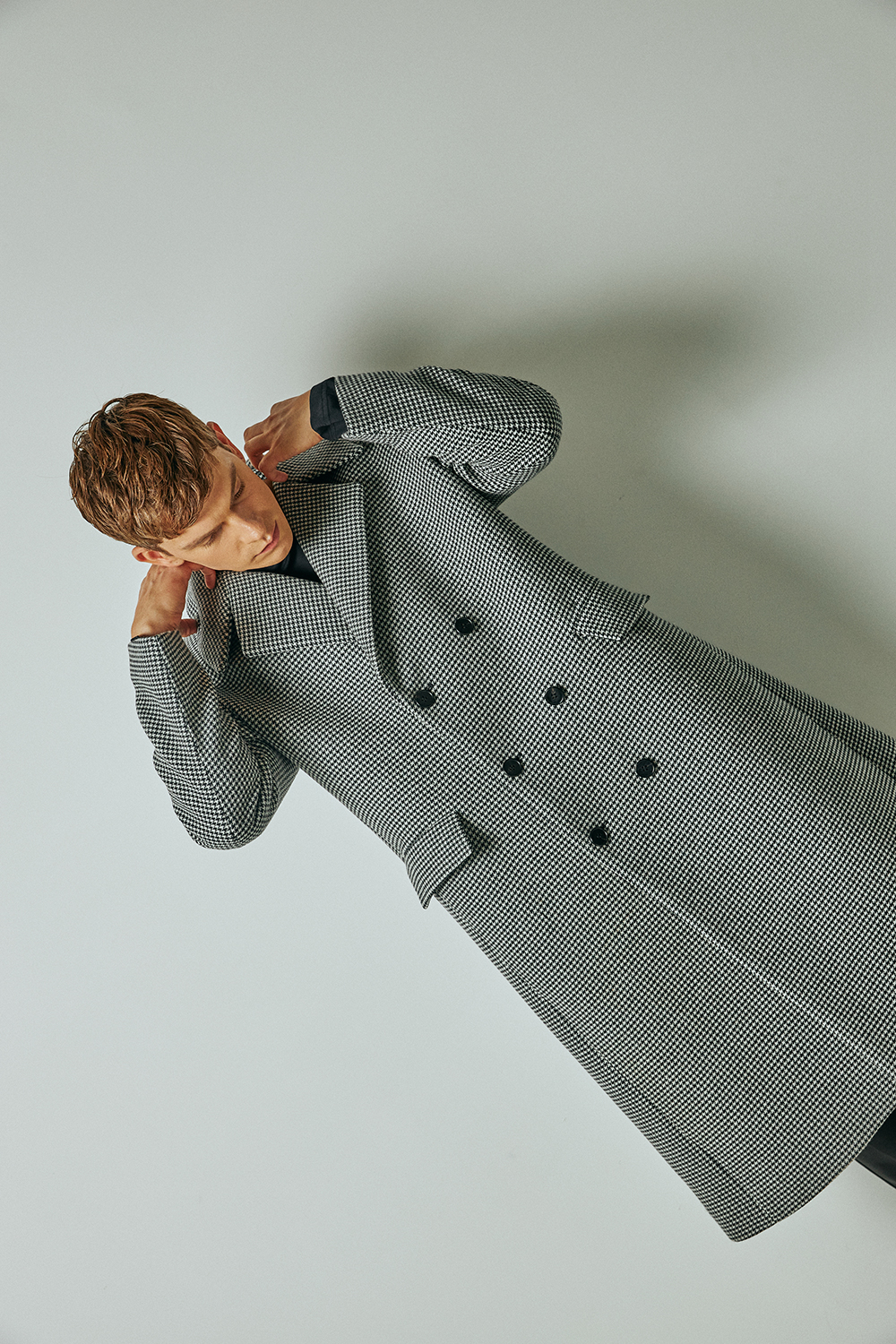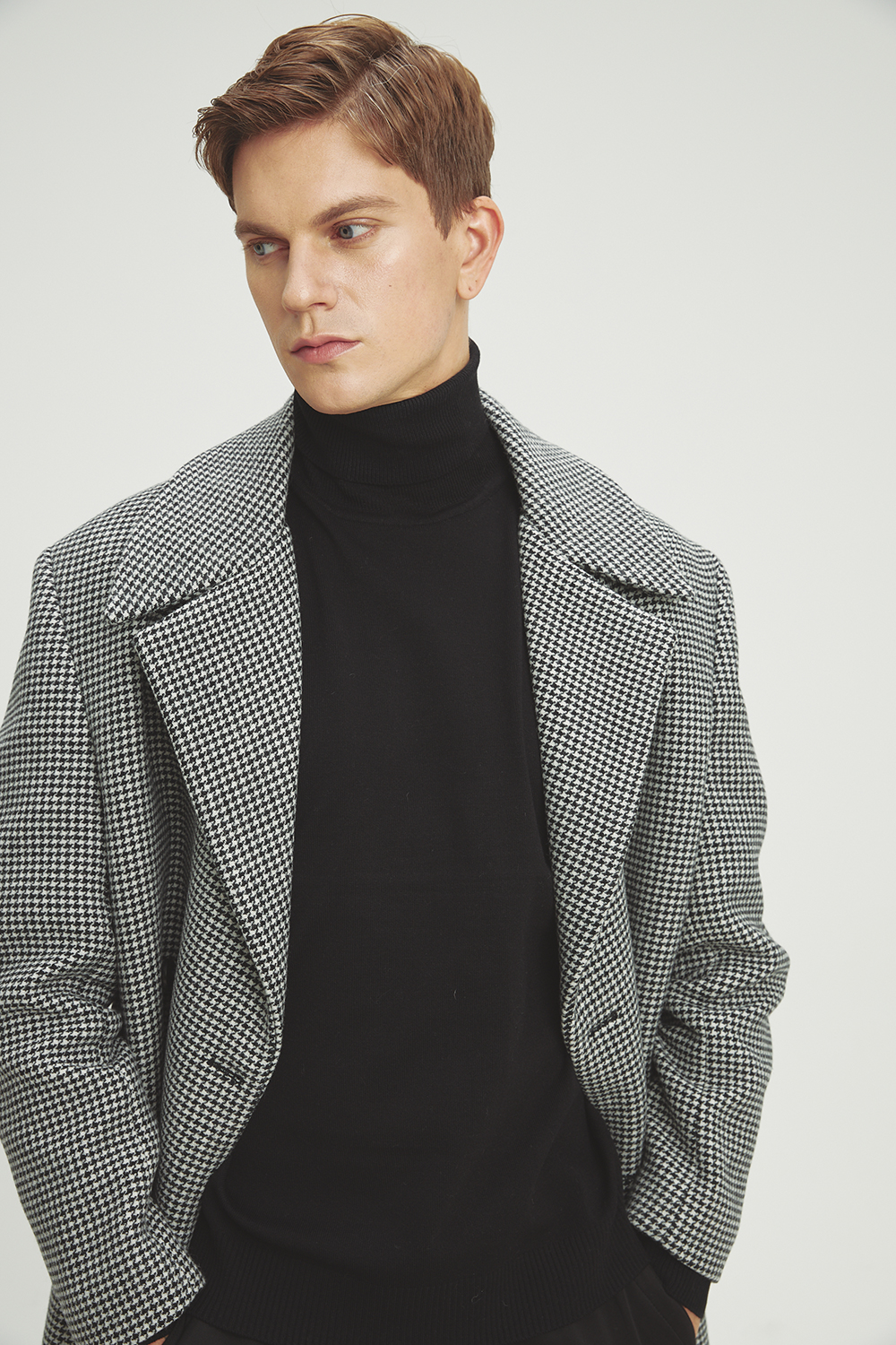 고급스러운 하운드-투스 체크 더블 슈퍼 롱코트, 두툼한 두께감으로 보온성이 뛰어난