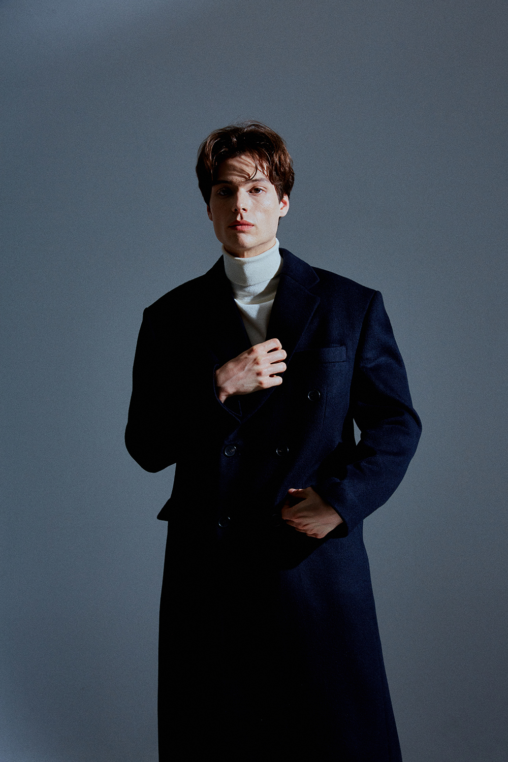 *네이비의 고급스러운 원단 / 노치드 라펠의 클래식한 디자인