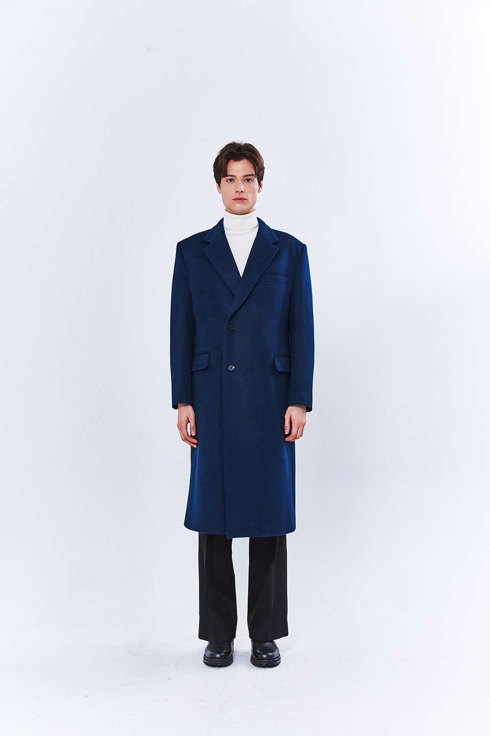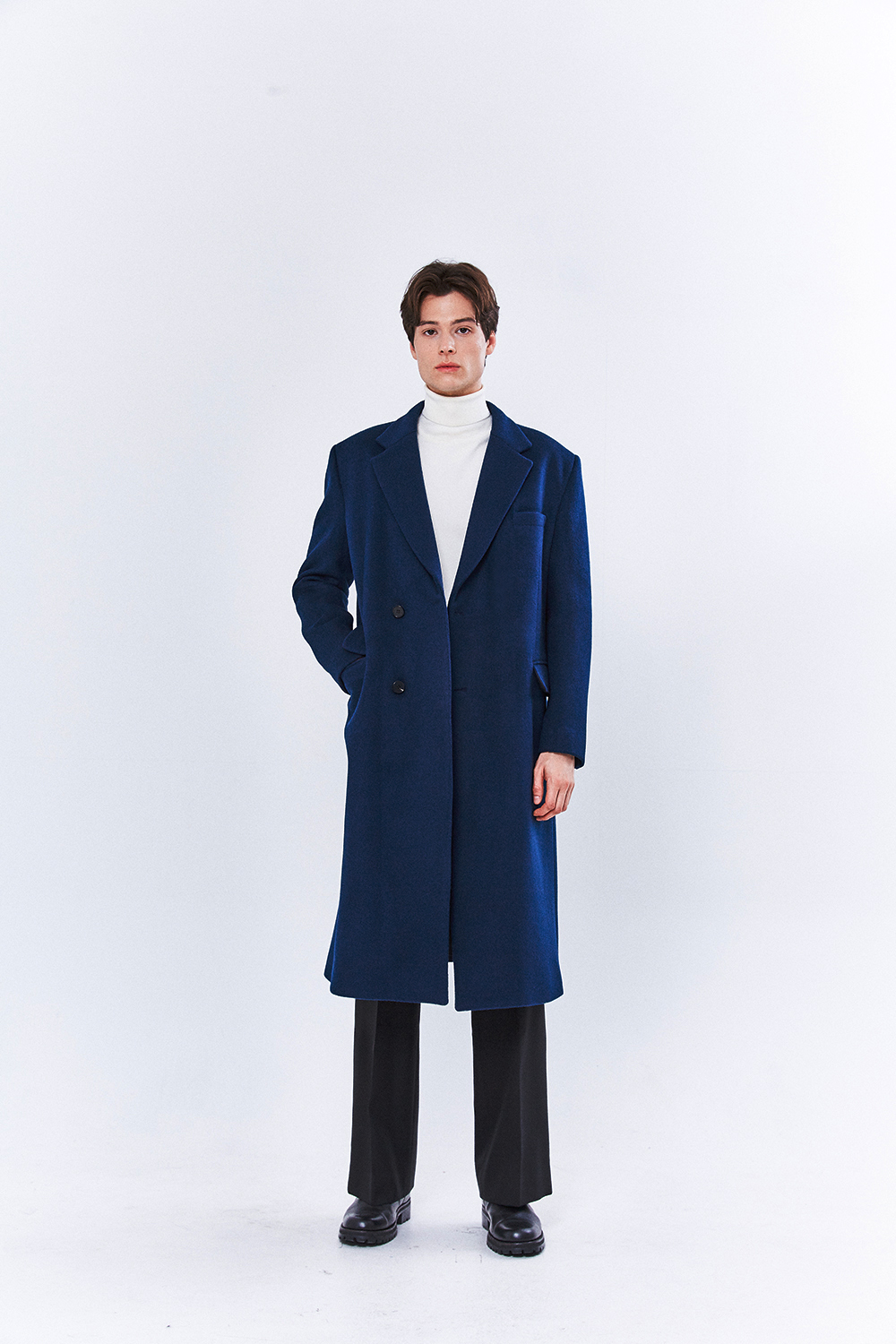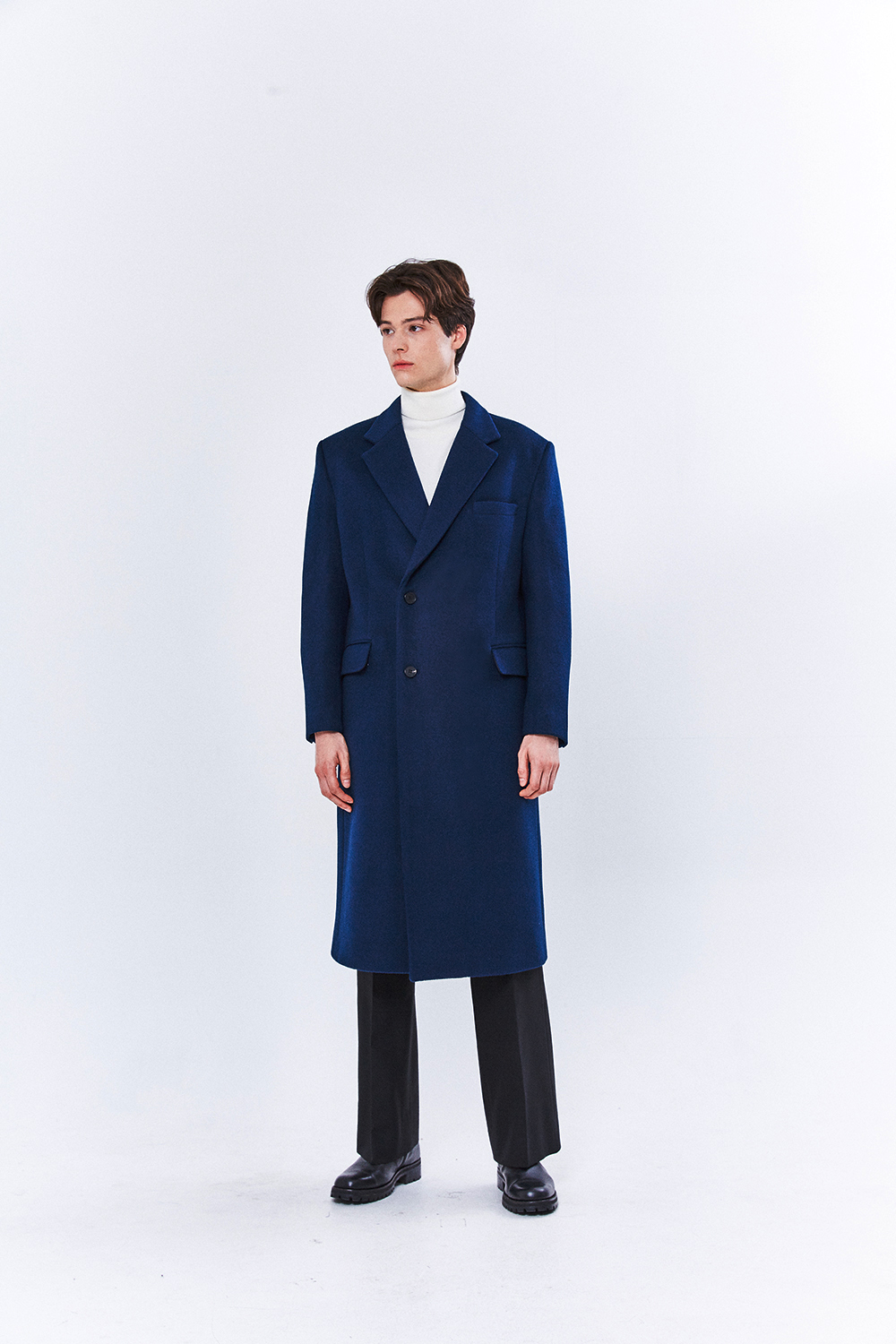 최고급 캐시미어 20% + 울 80% / 색상 DEEP-BLUE 딥-블루 / 소뿔단추 100%