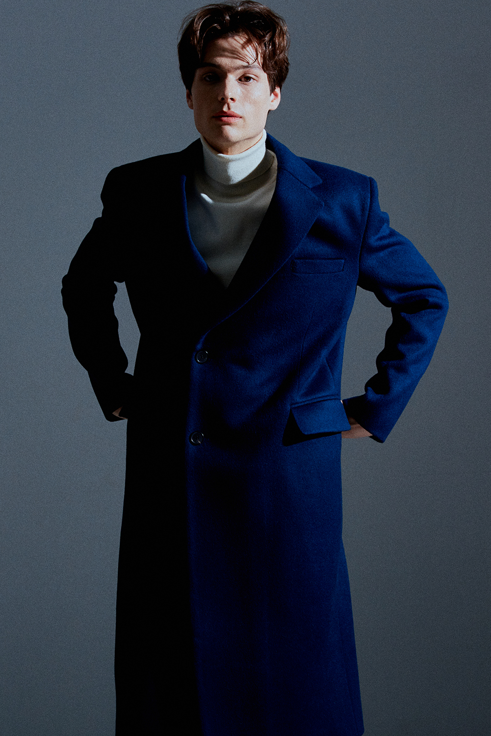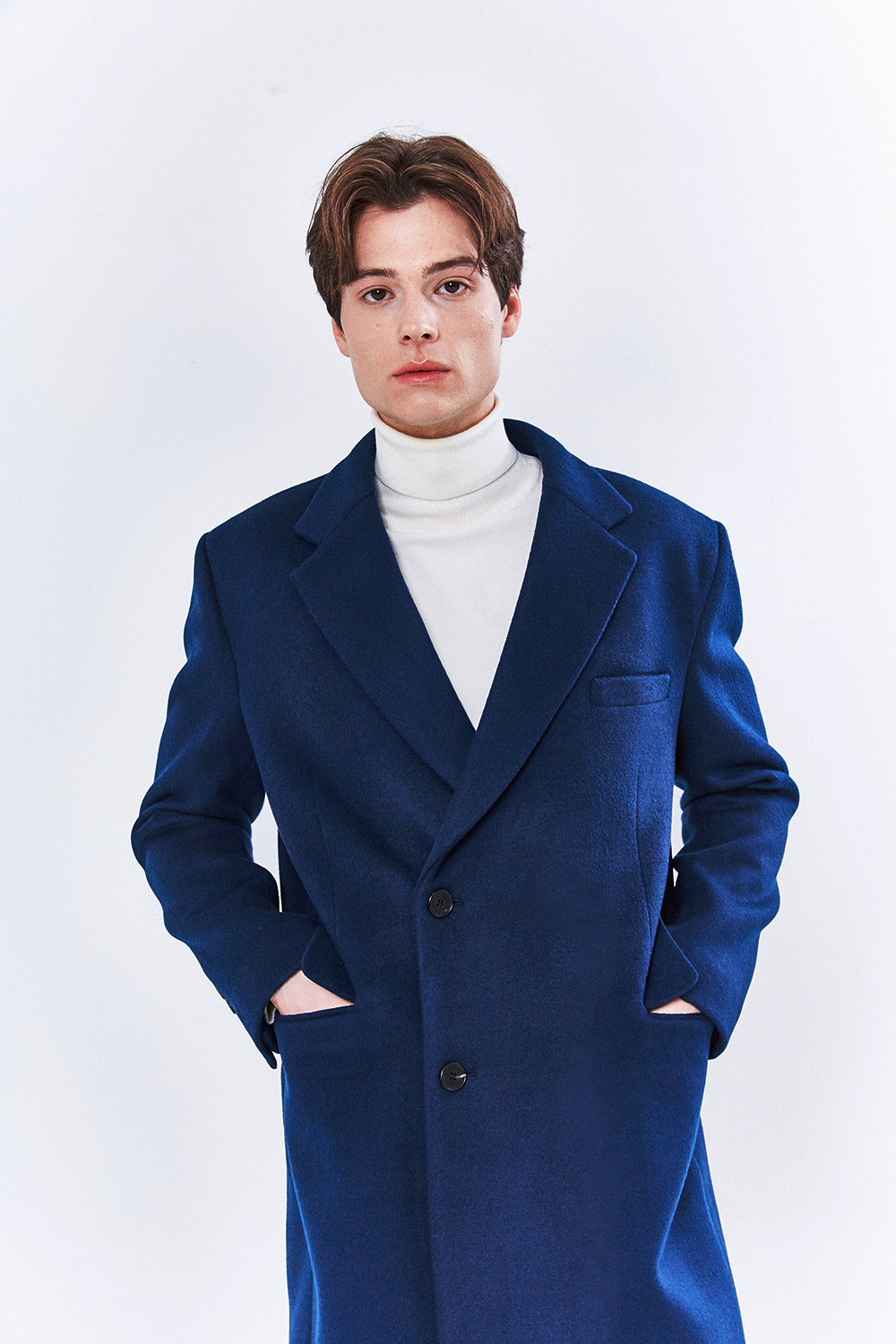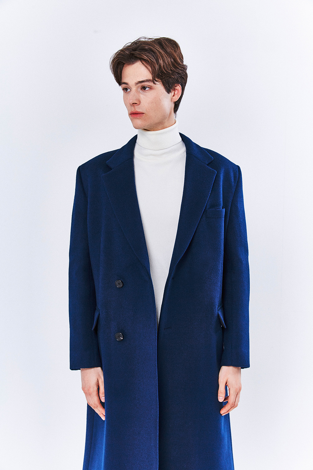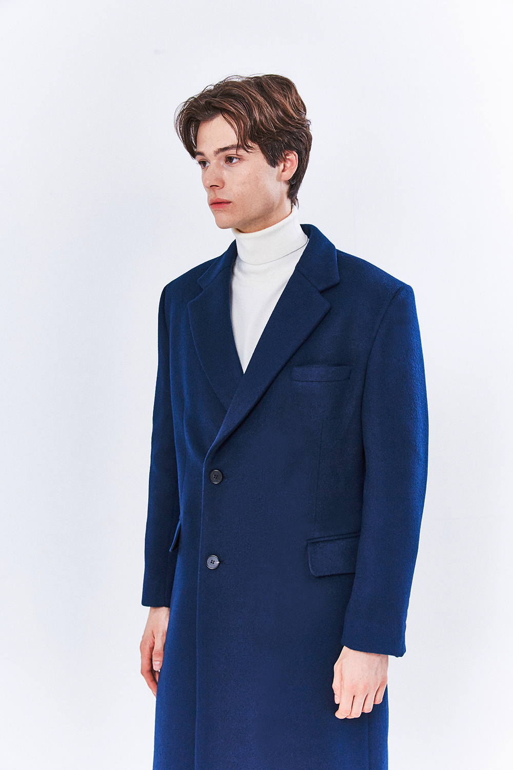 최고급 캐시미어 20% + 울 80% / 색상 DEEP-BLUE 딥-블루 / 소뿔단추 100%