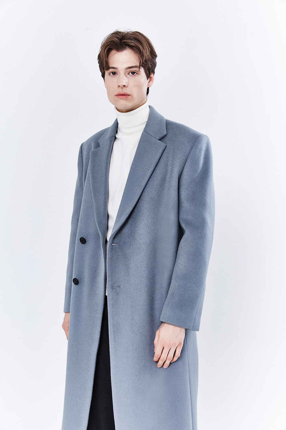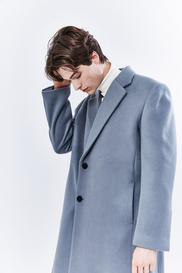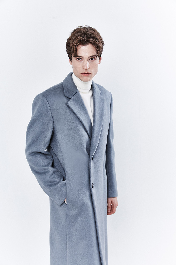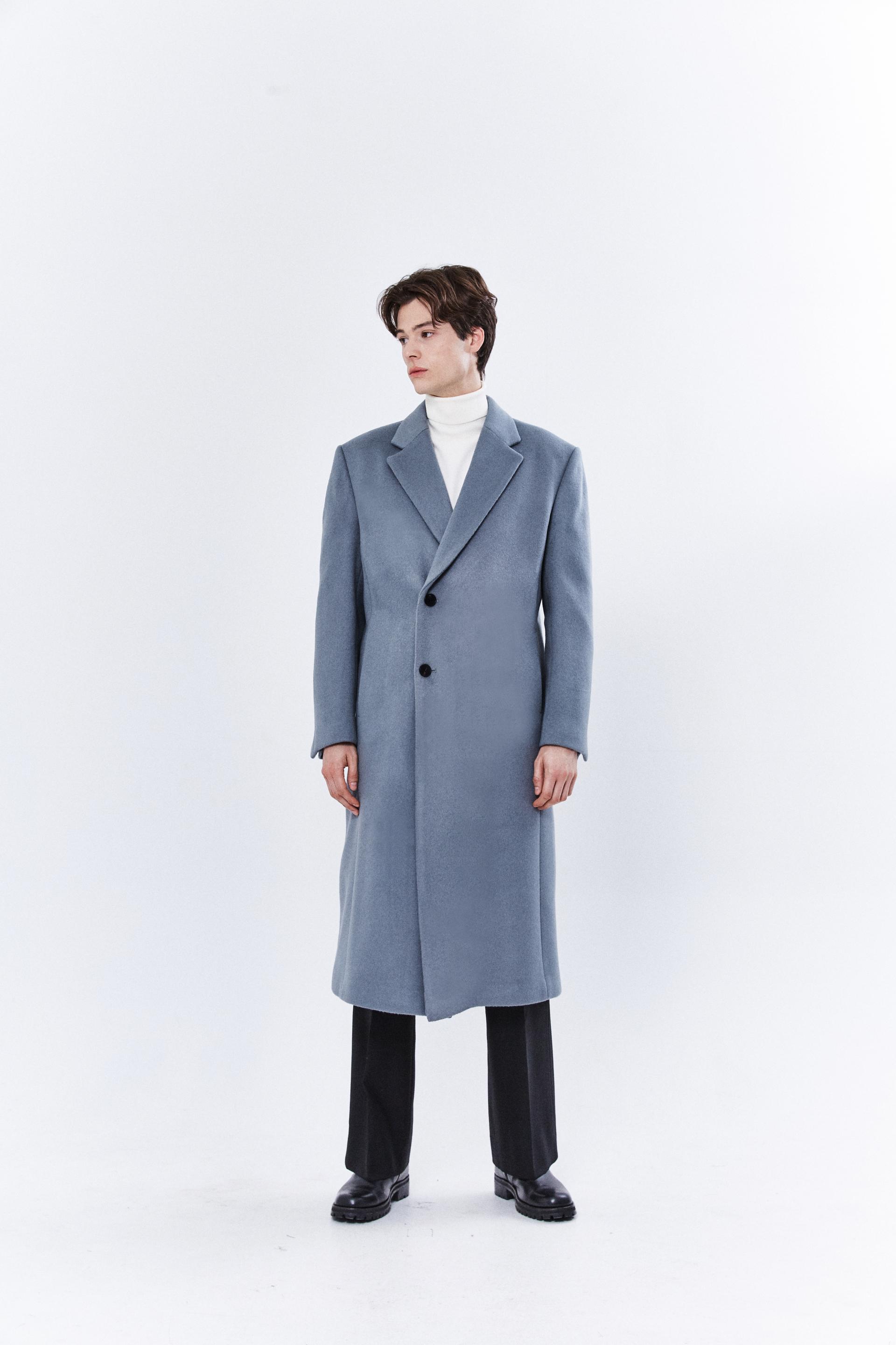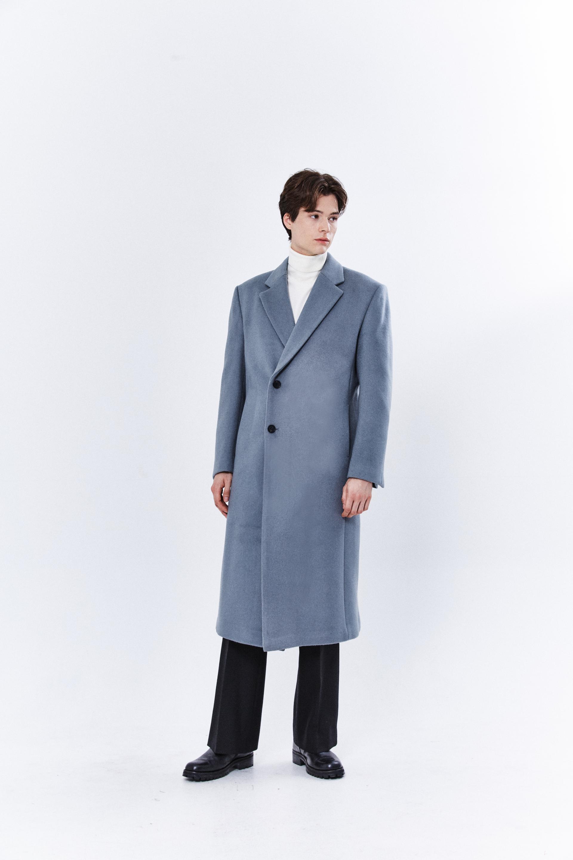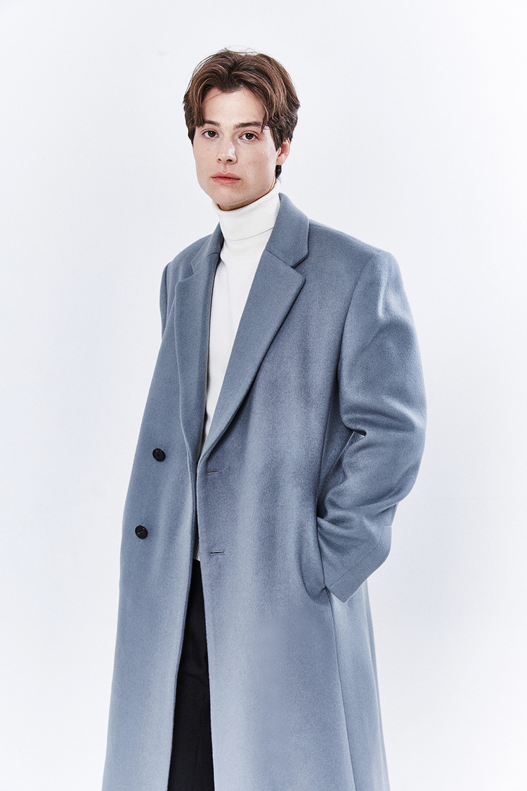 최고급 캐시미어 20% + 울 80% / 색상 SKY-GRAY 스카이-그레이 / 소뿔단추 100%
