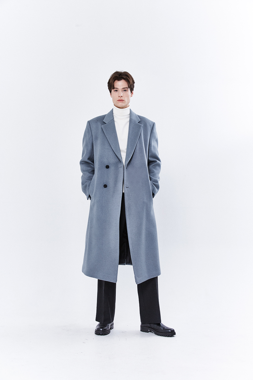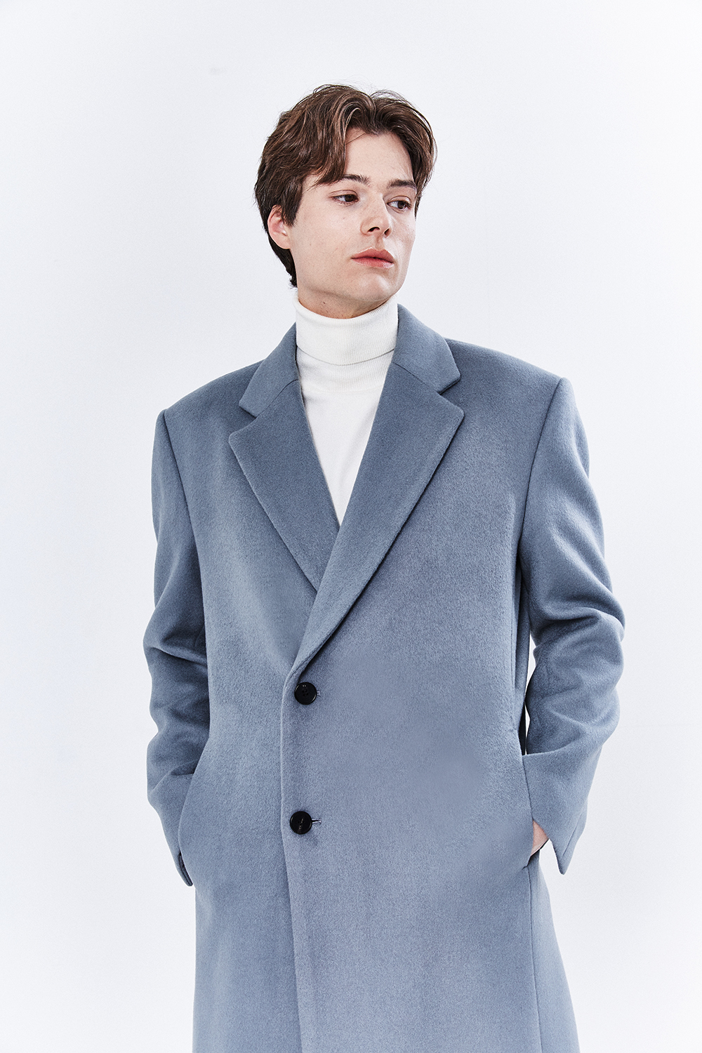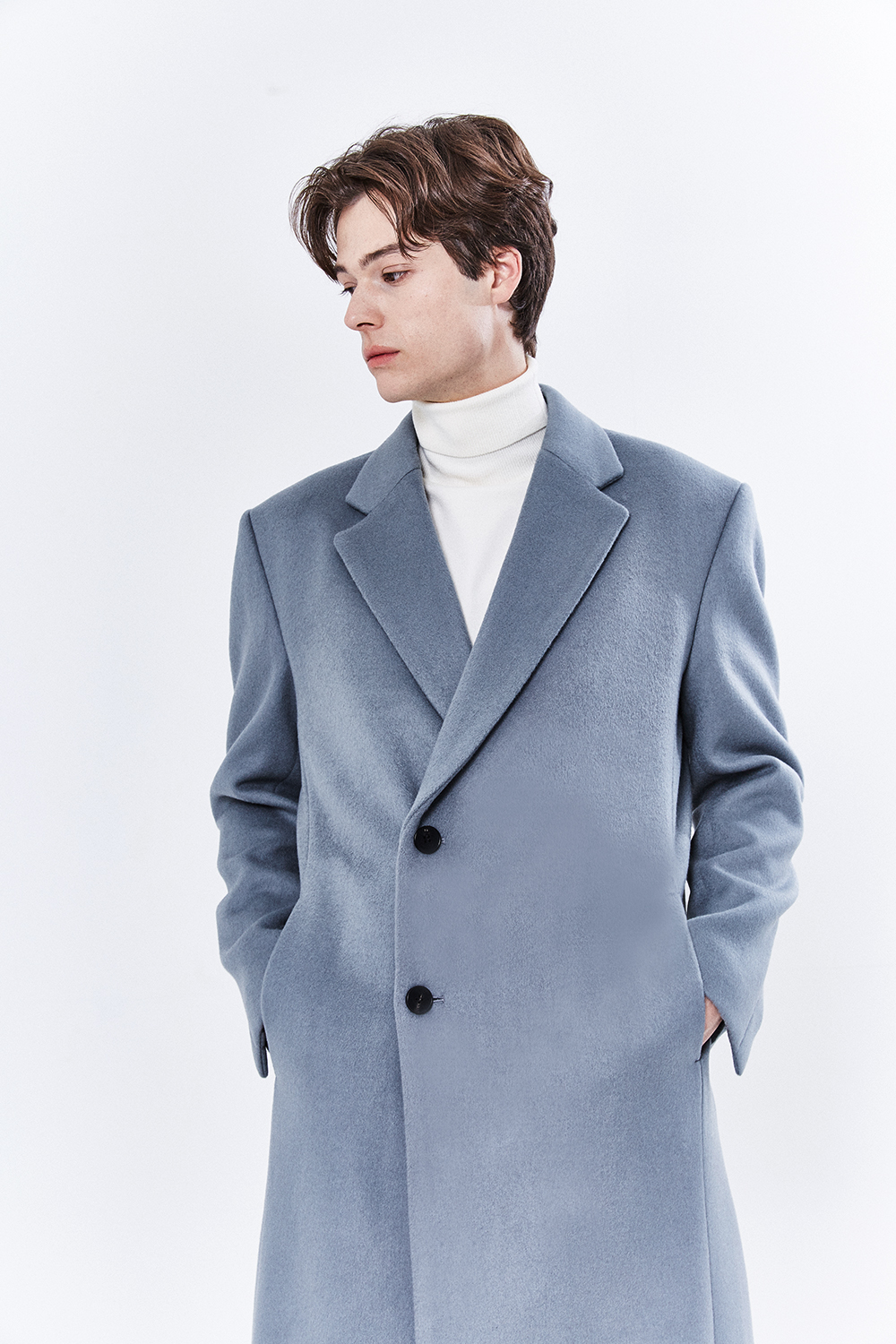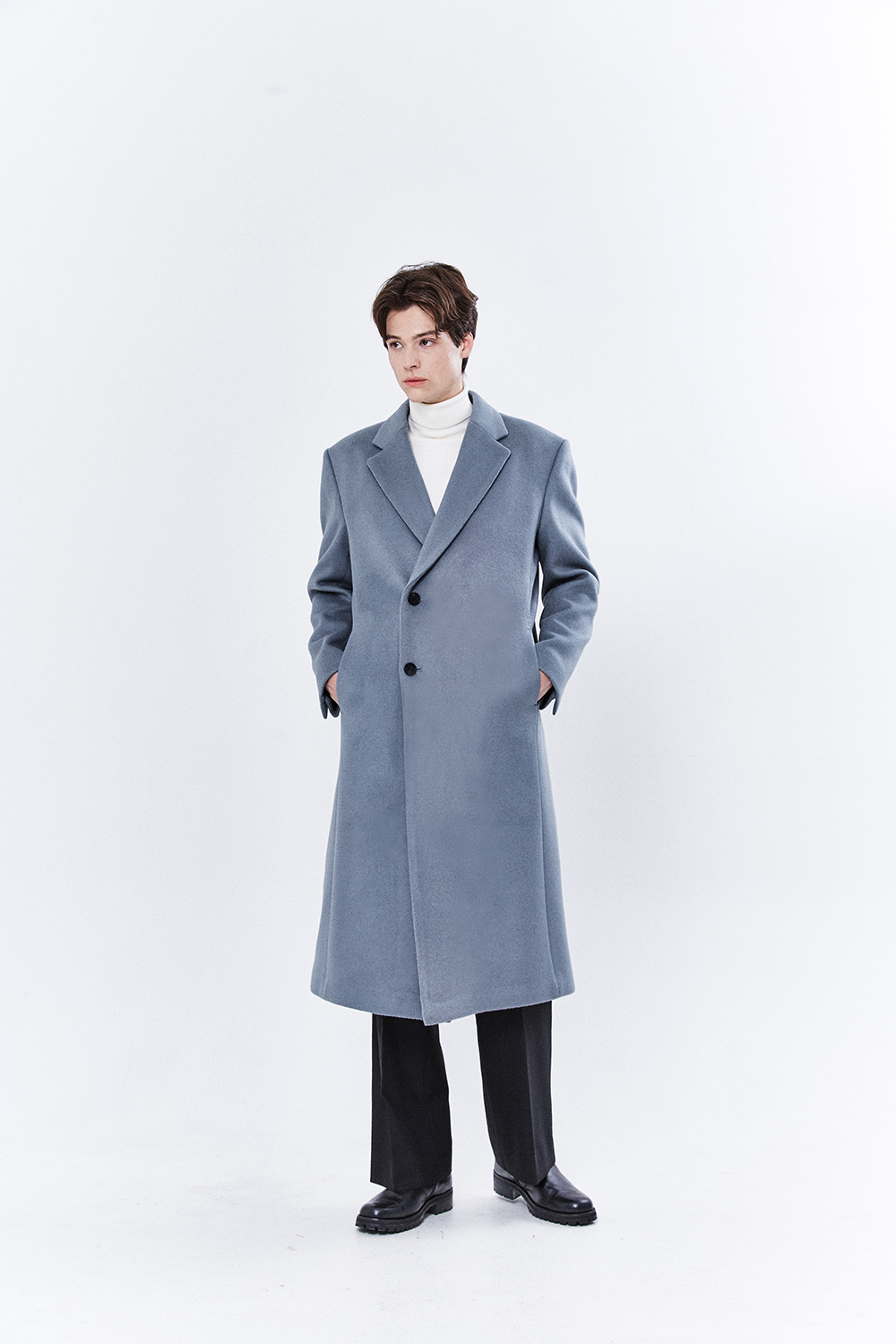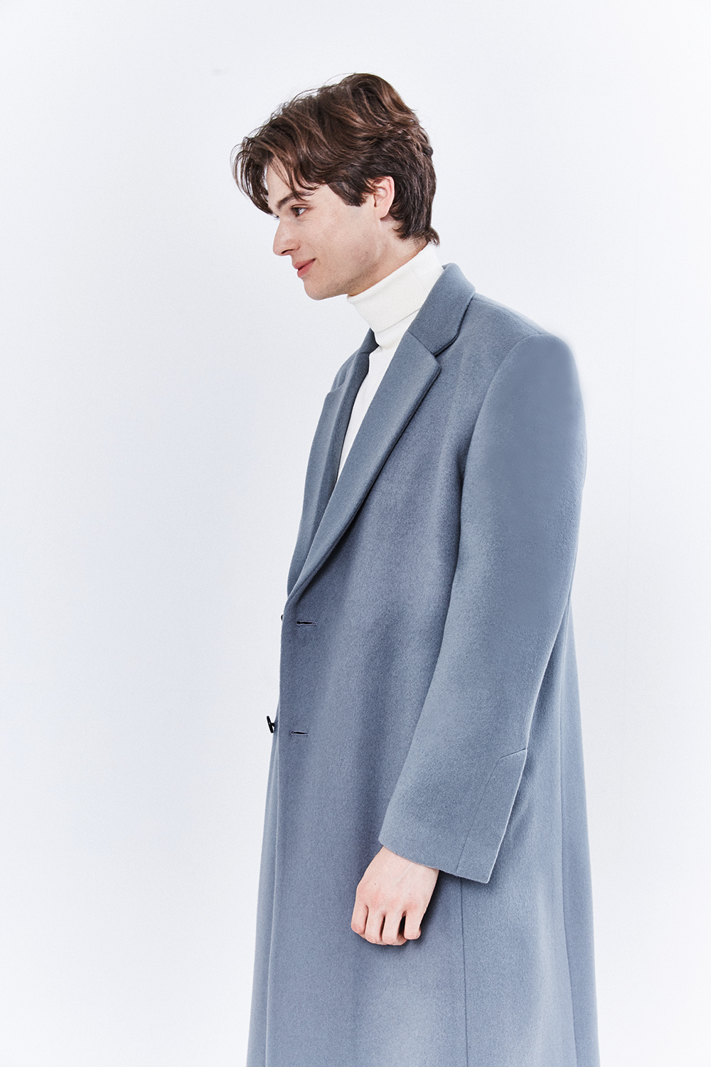 최고급 캐시미어 20% + 울 80% / 색상 SKY-GRAY 스카이-그레이 / 소뿔단추 100%