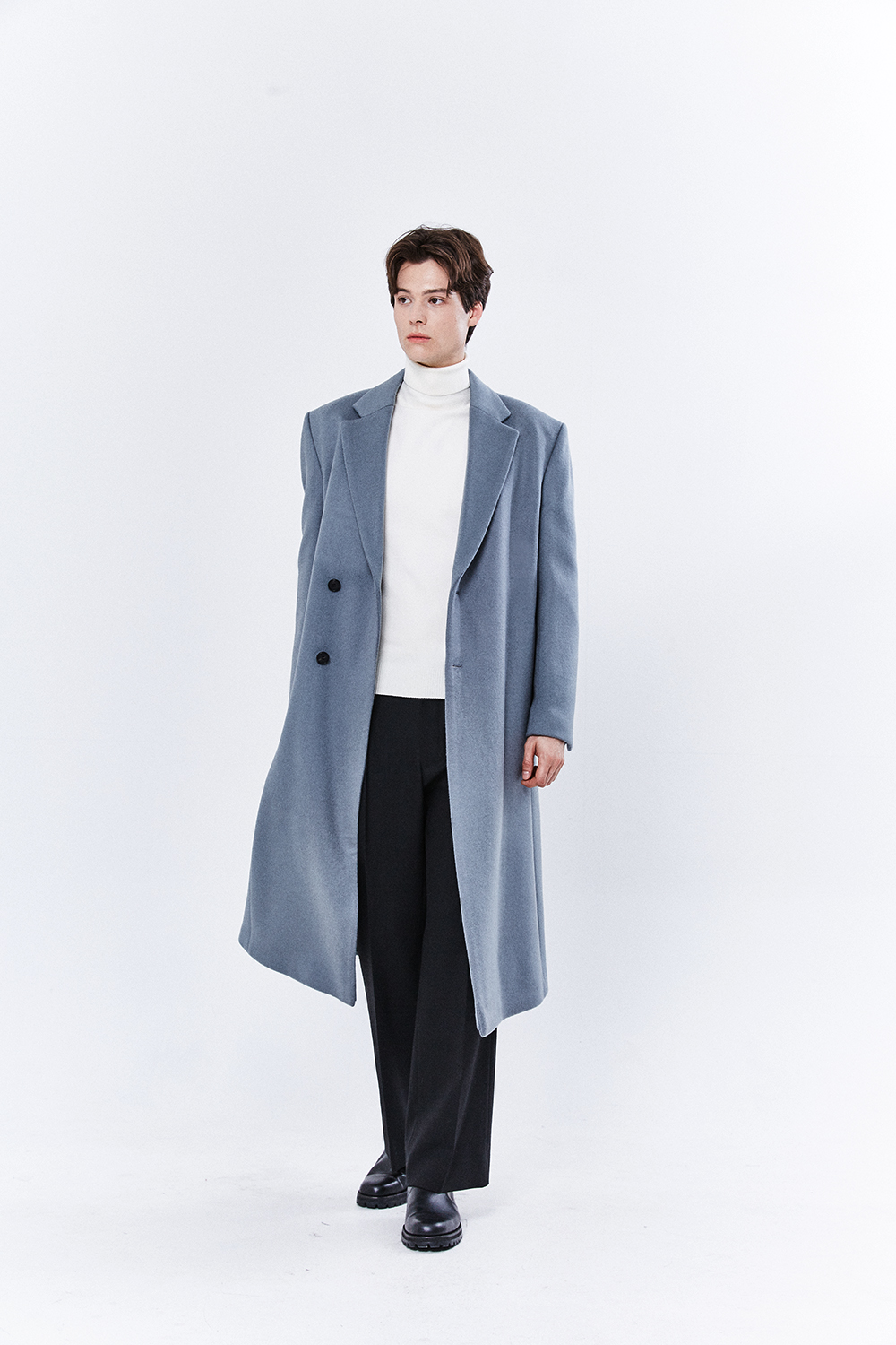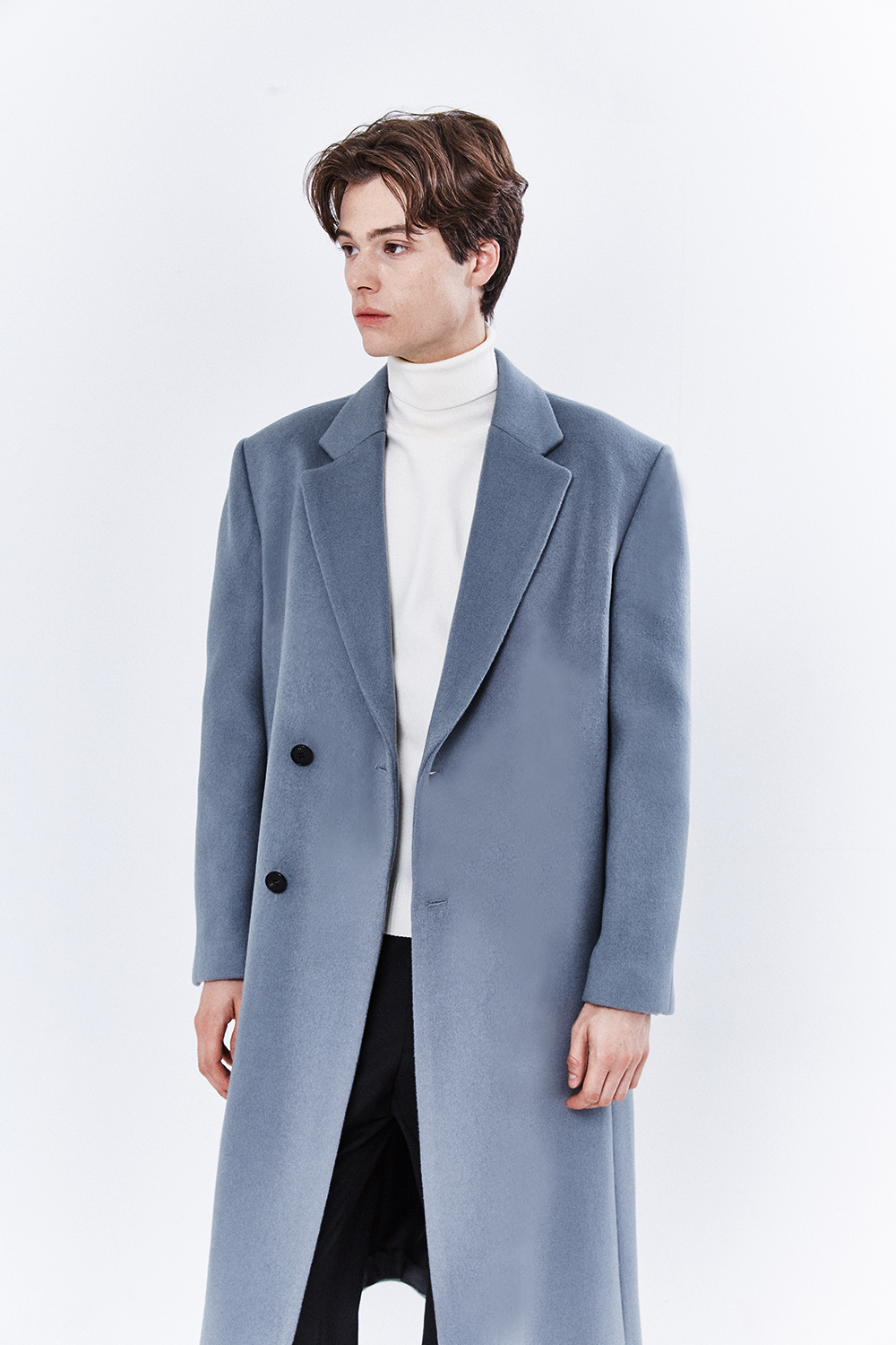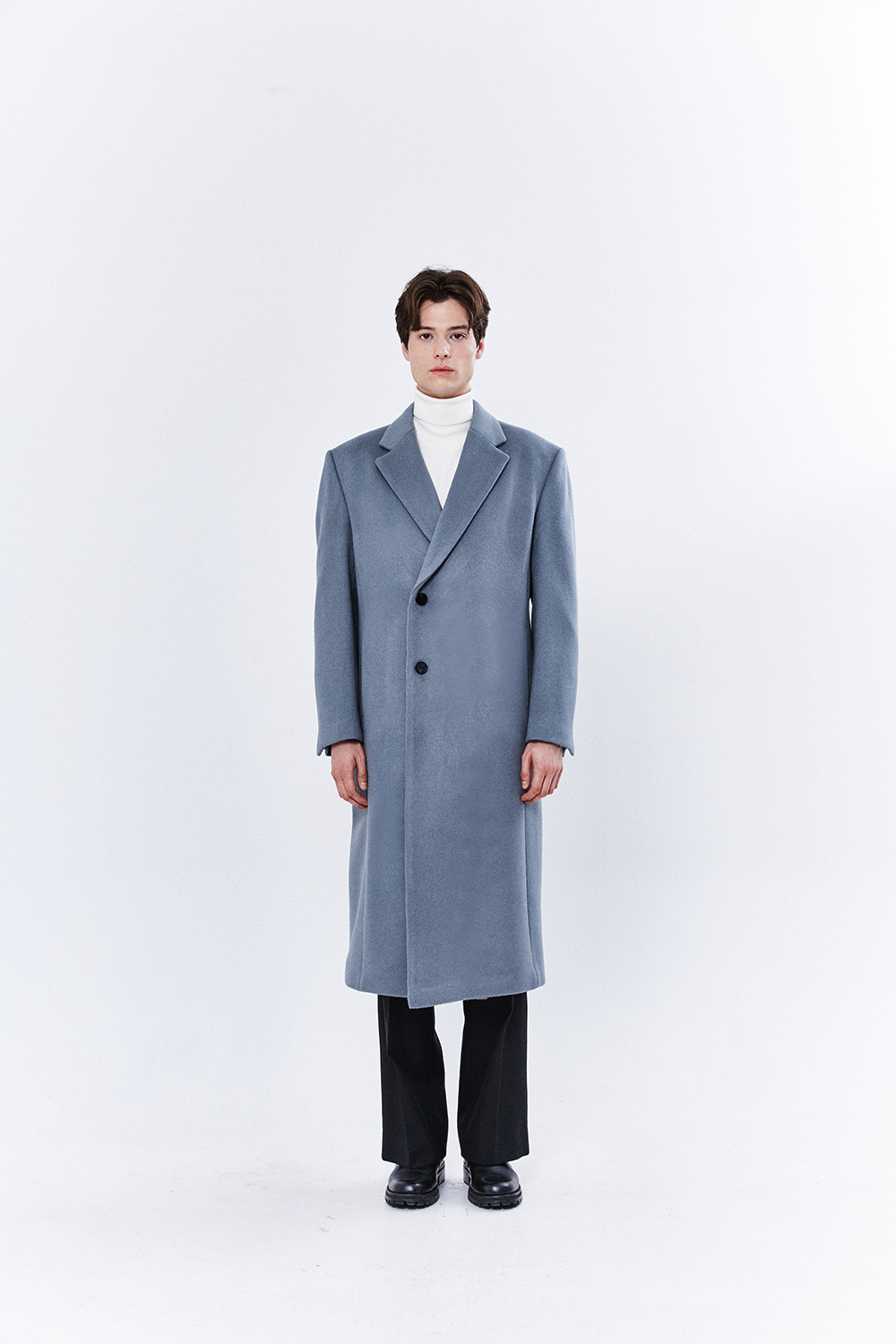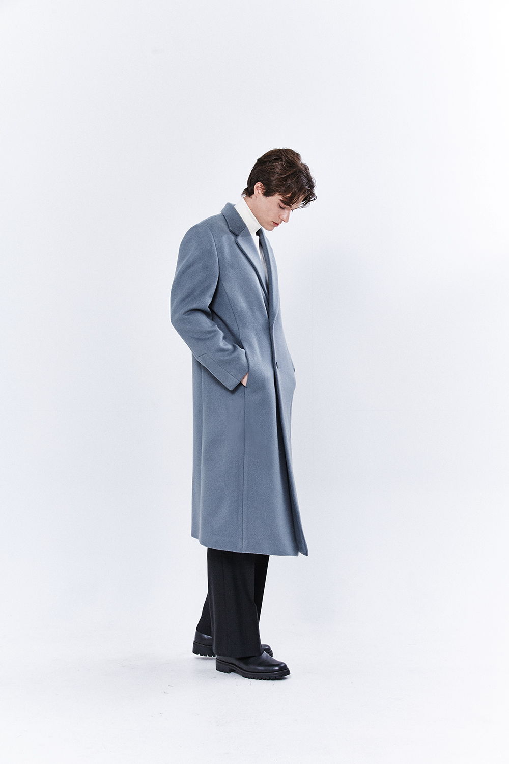 최고급 캐시미어 20% + 울 80% / 색상 SKY-GRAY 스카이-그레이 / 소뿔단추 100%