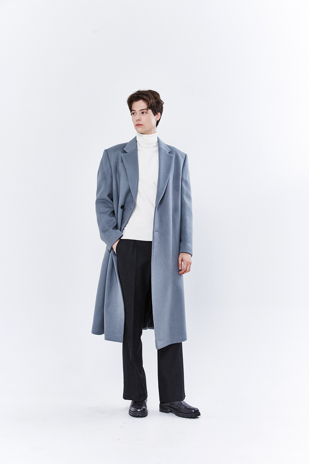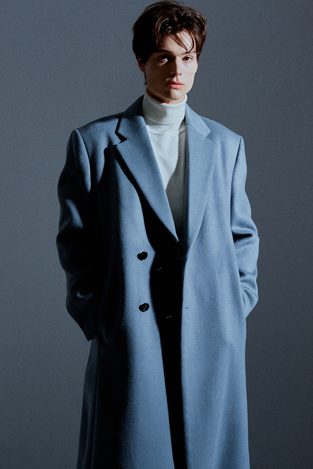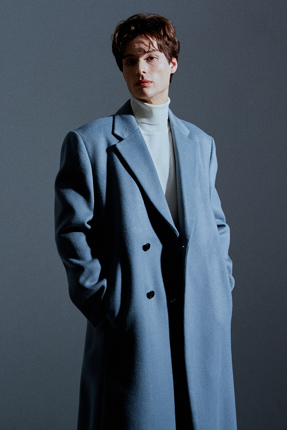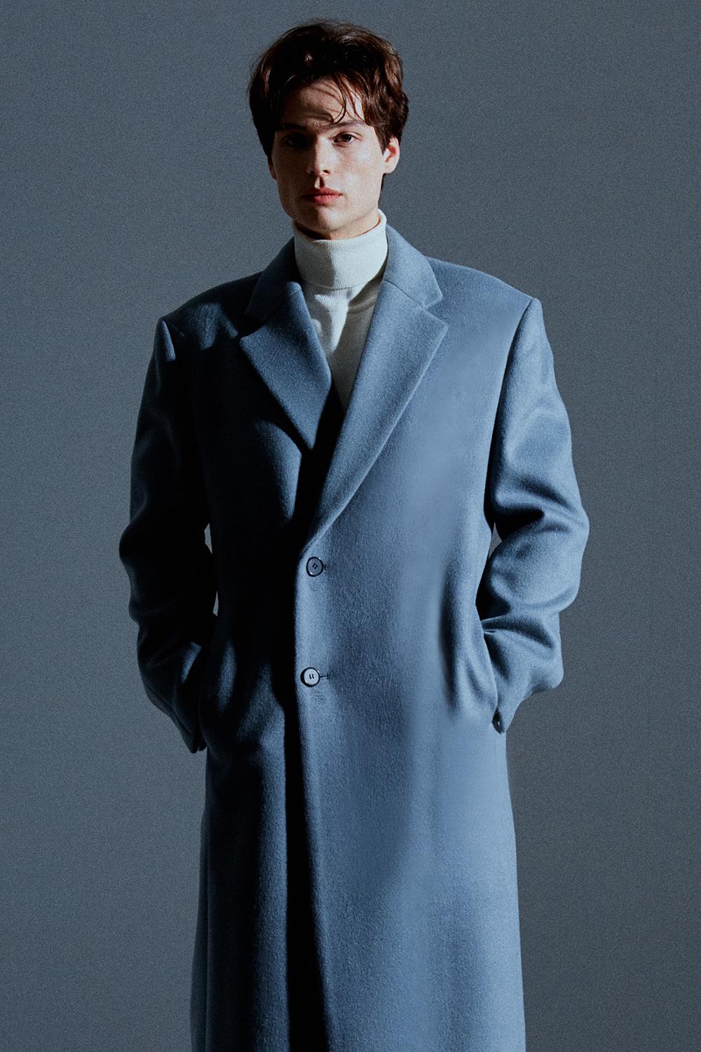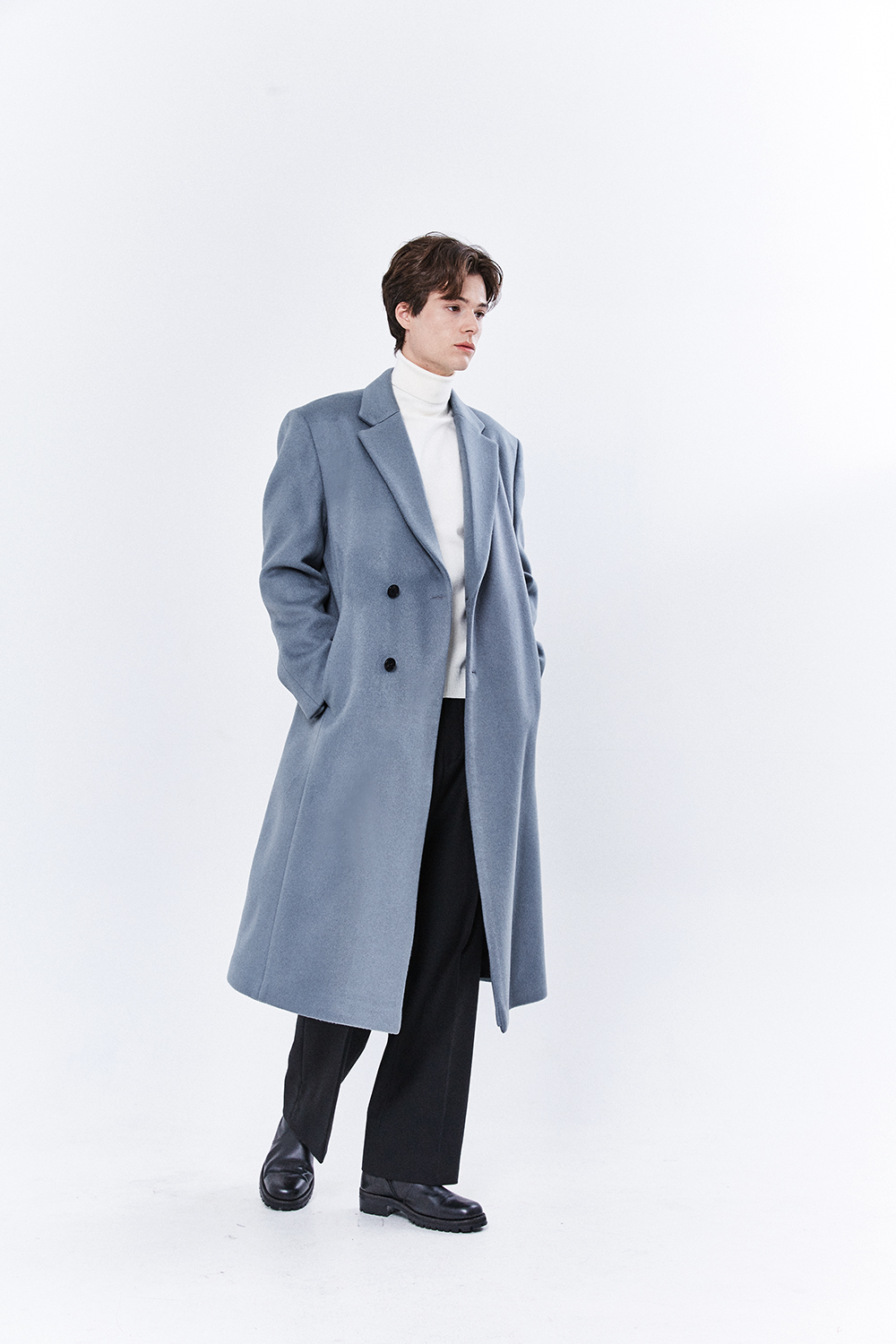 최고급 캐시미어 20% + 울 80% / 색상 SKY-GRAY 스카이-그레이 / 소뿔단추 100%
