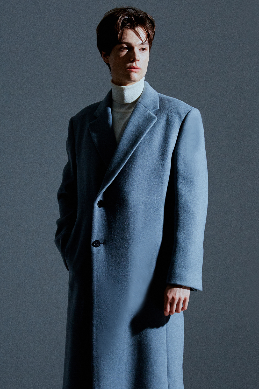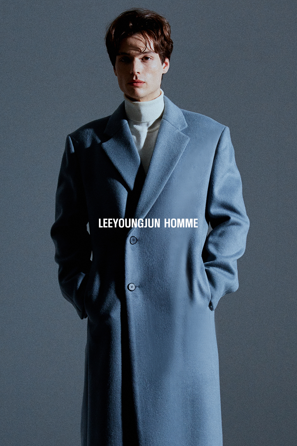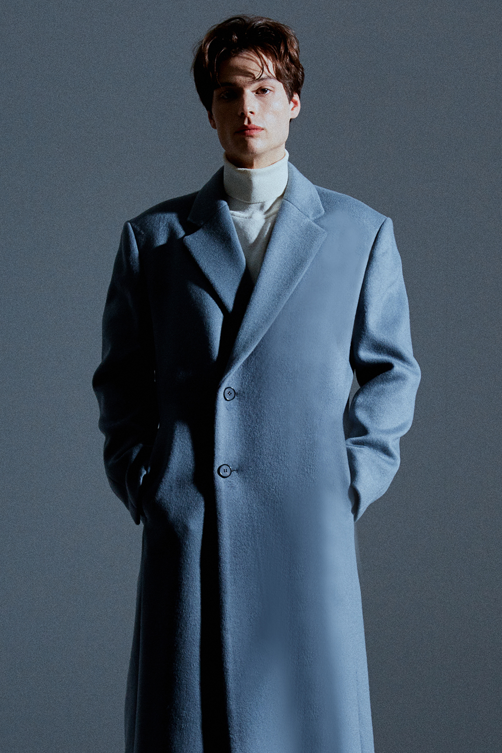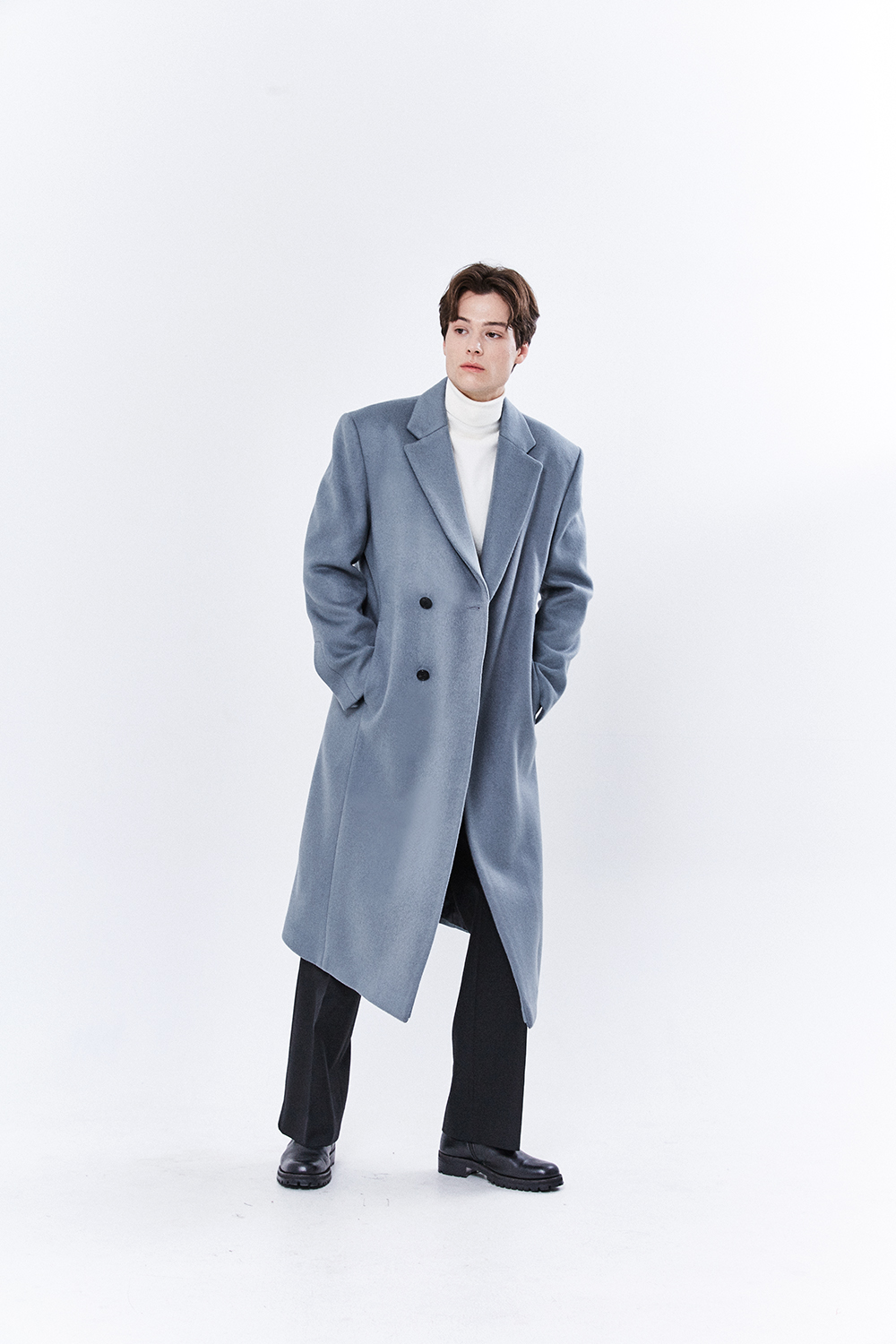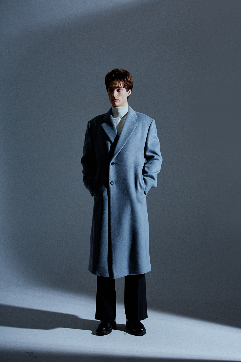 최고급 캐시미어 20% + 울 80% / 색상 SKY-GRAY 스카이-그레이 / 소뿔단추 100%
