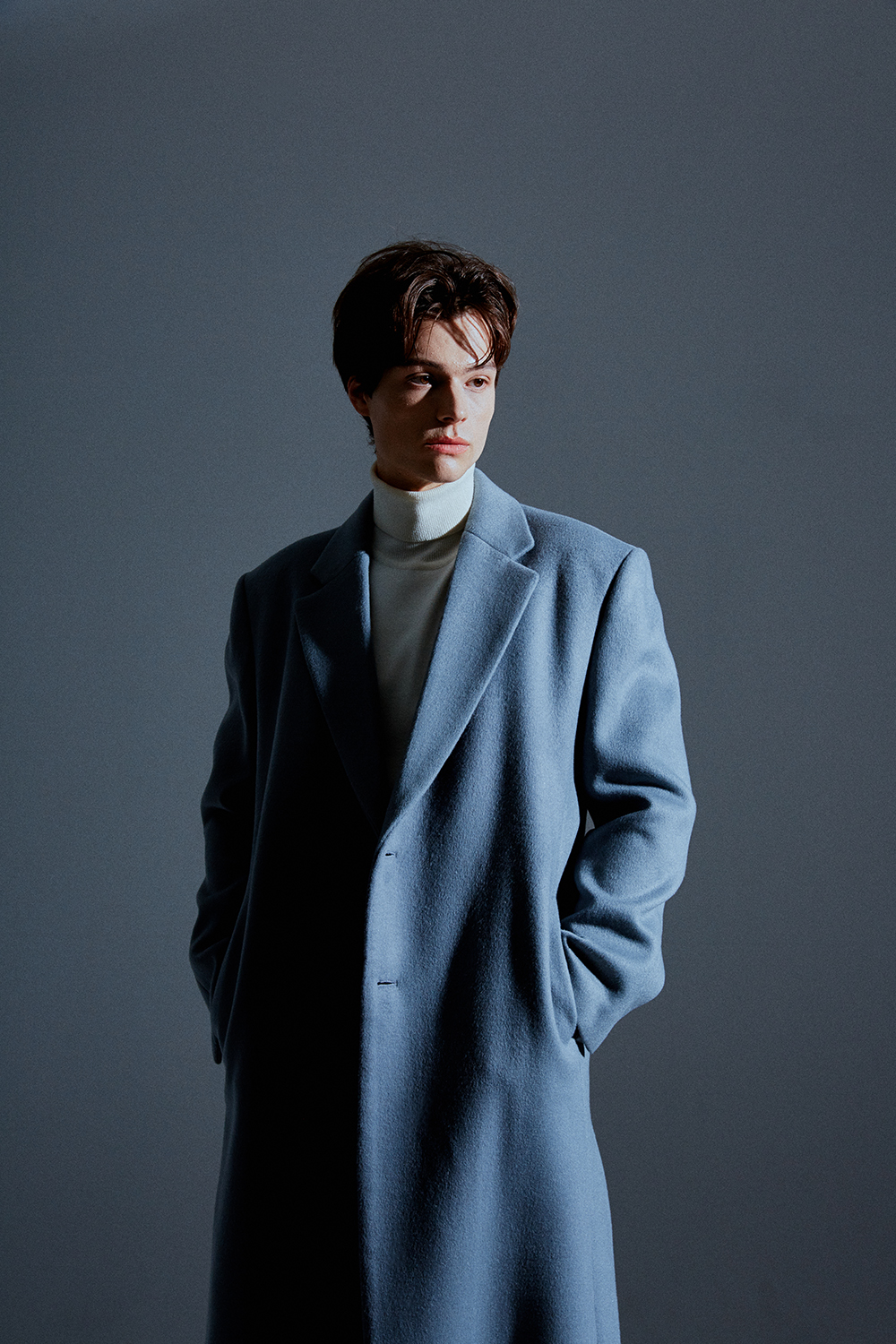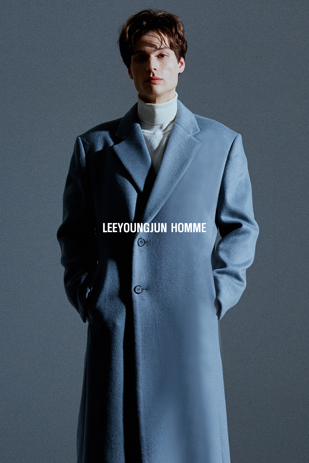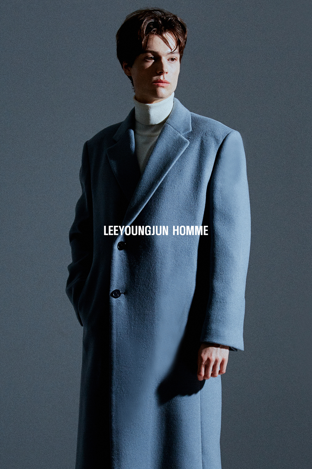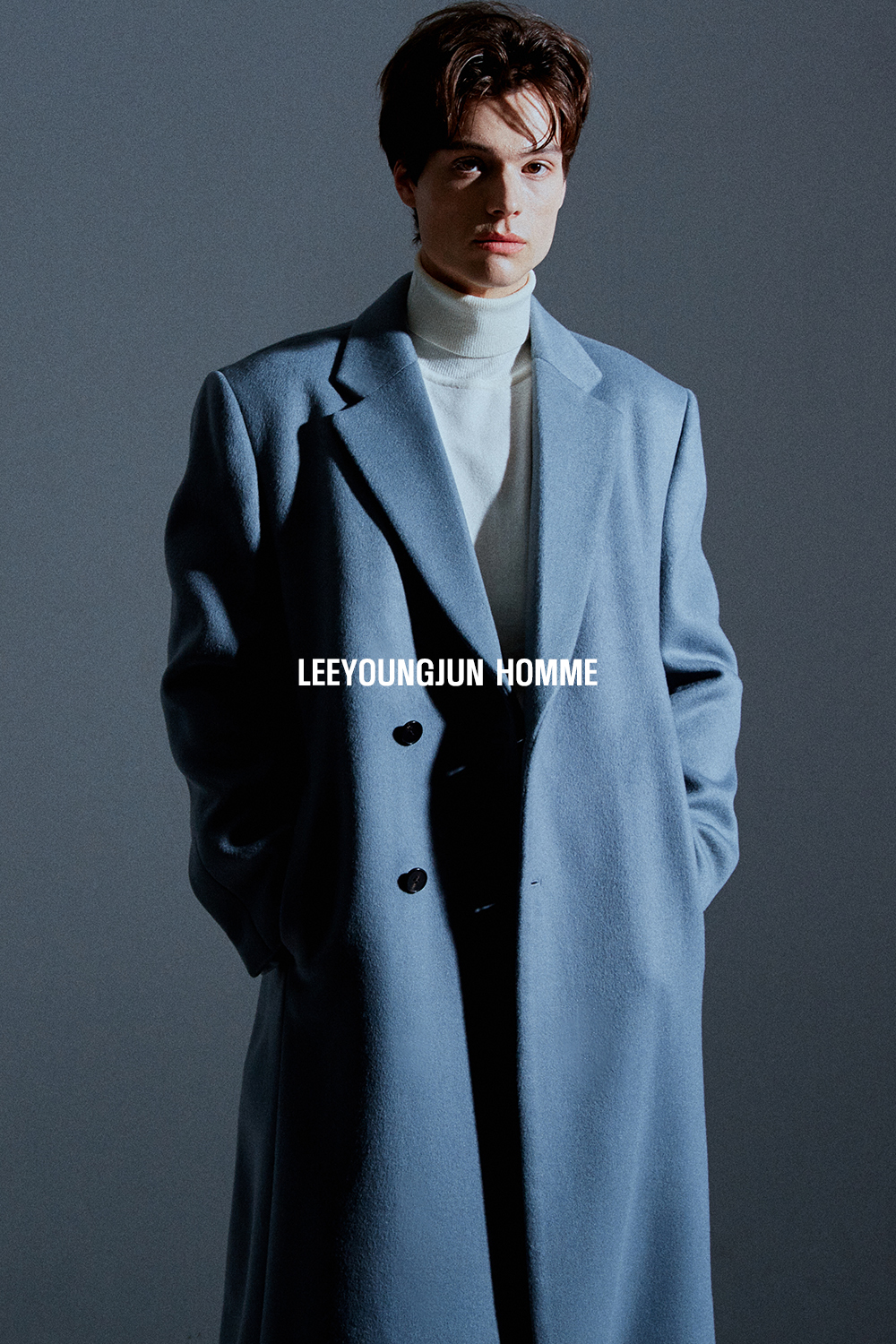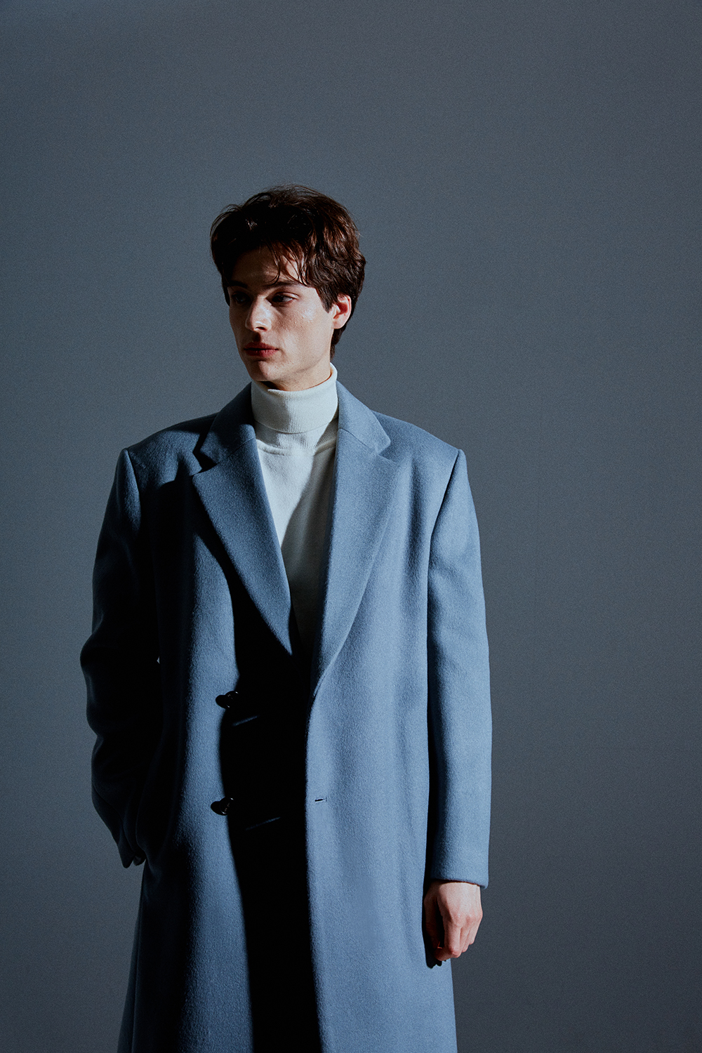 최고급 캐시미어 20% + 울 80% / 색상 SKY-GRAY 스카이-그레이 / 소뿔단추 100%