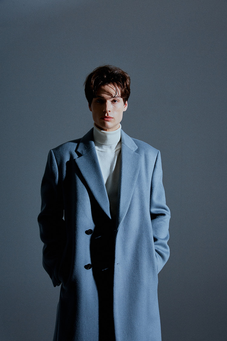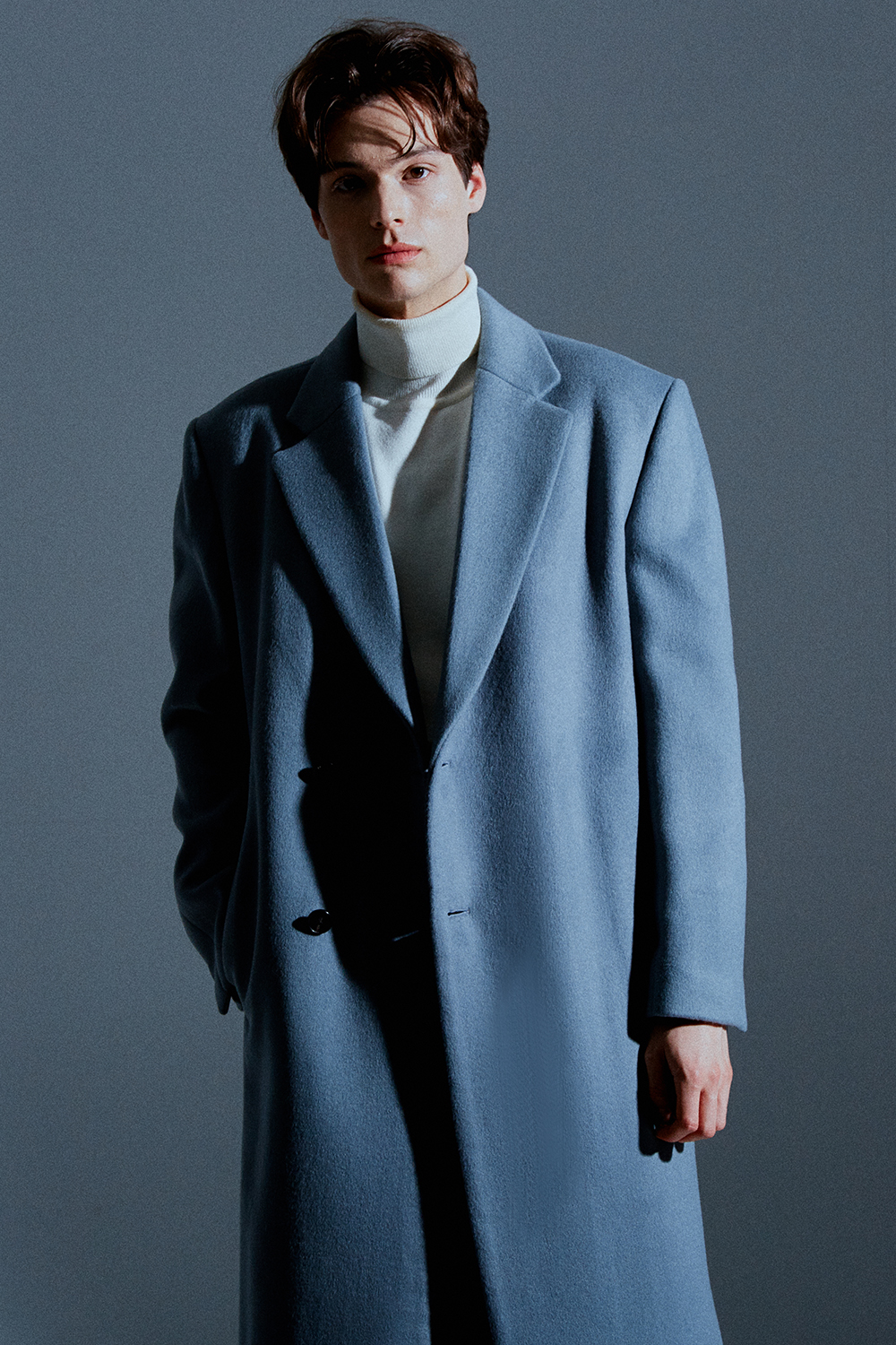 *더블 투버튼 디자인으로 한쪽으로 단추가 달린 고급스러운 패턴 라인.
