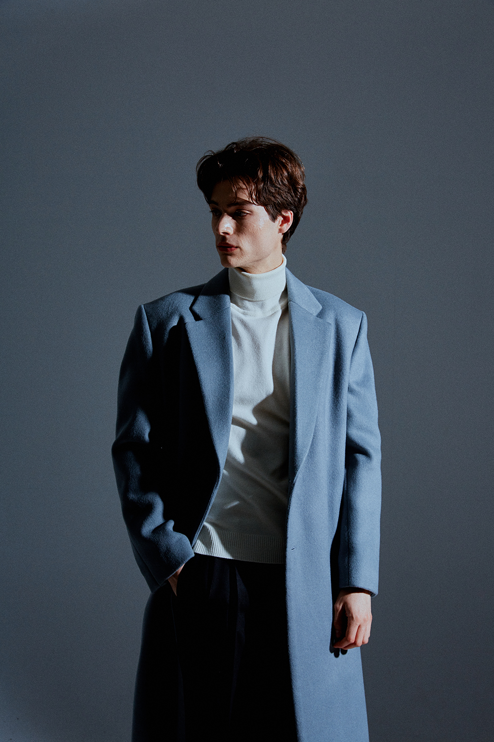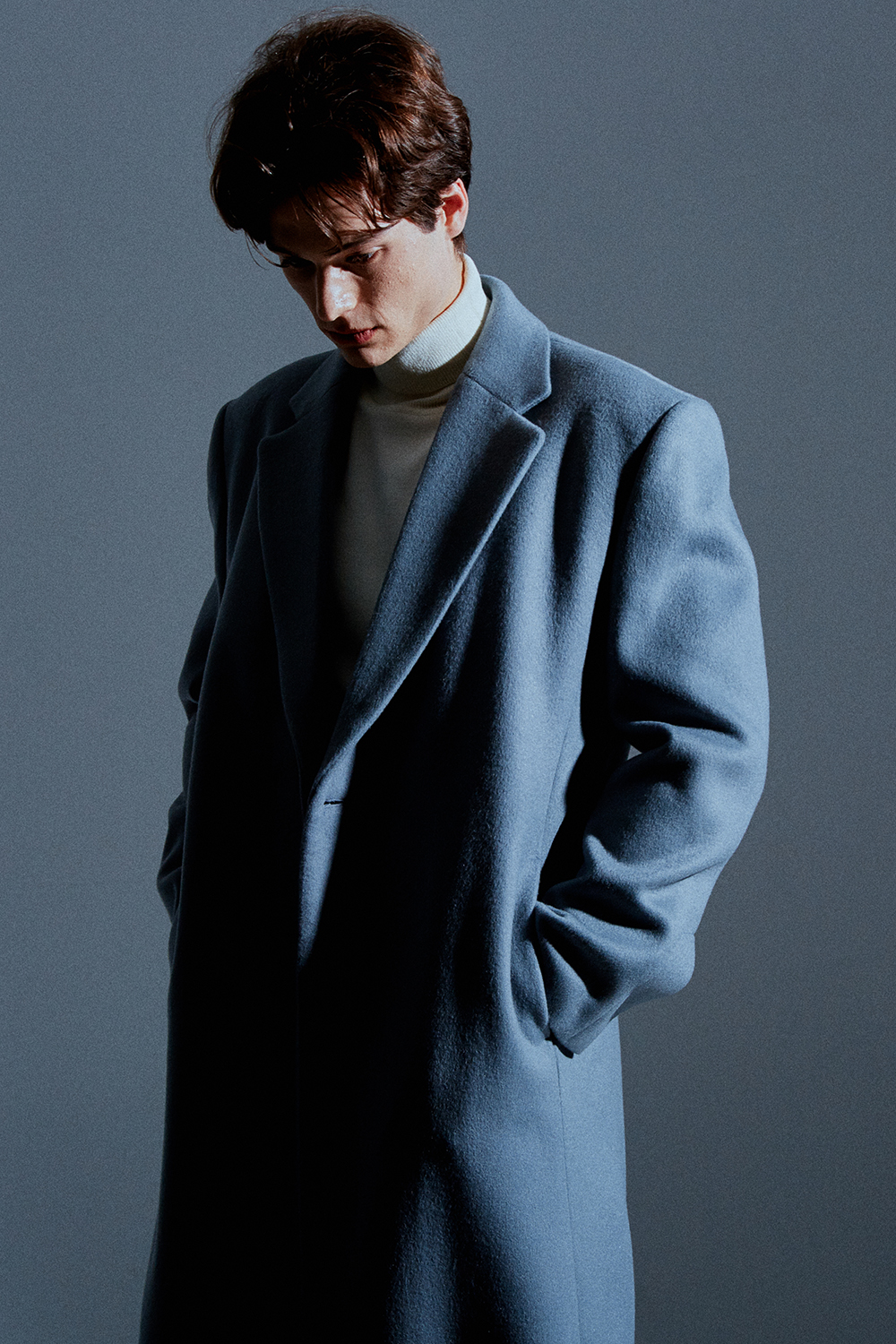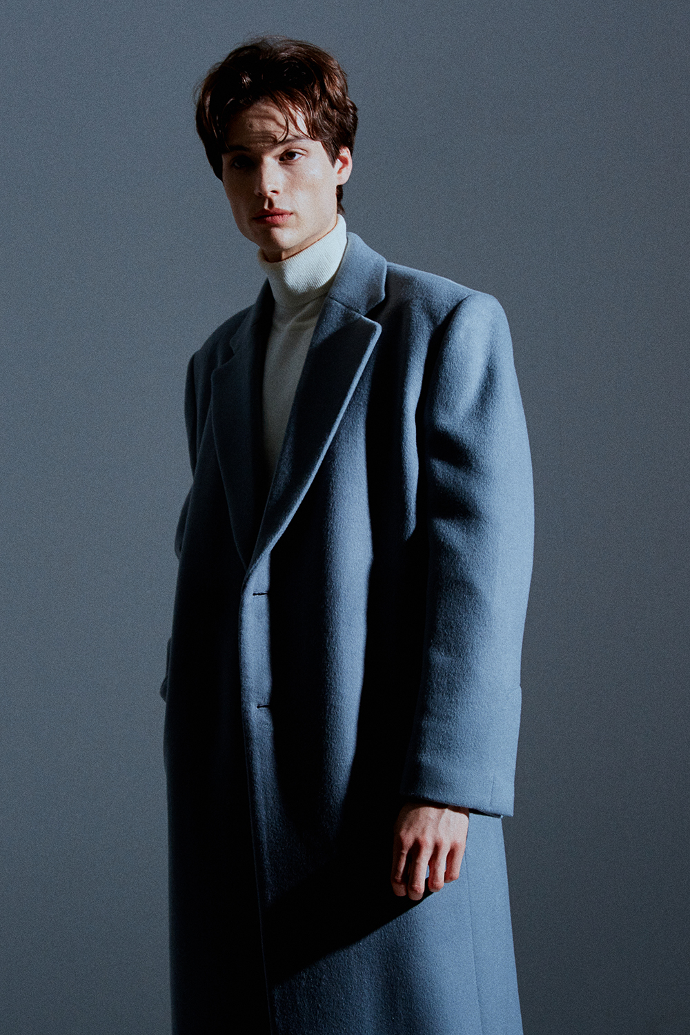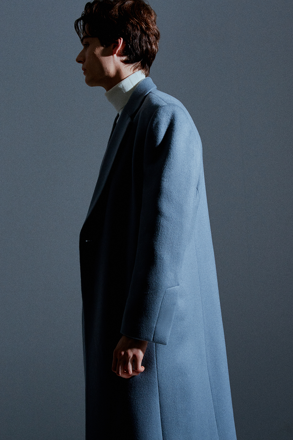 / 히든 소매 리얼 단추로 열고 잠글수 있는 디테일./ 스카이-그레이 칼라의 멋을 더합니다.