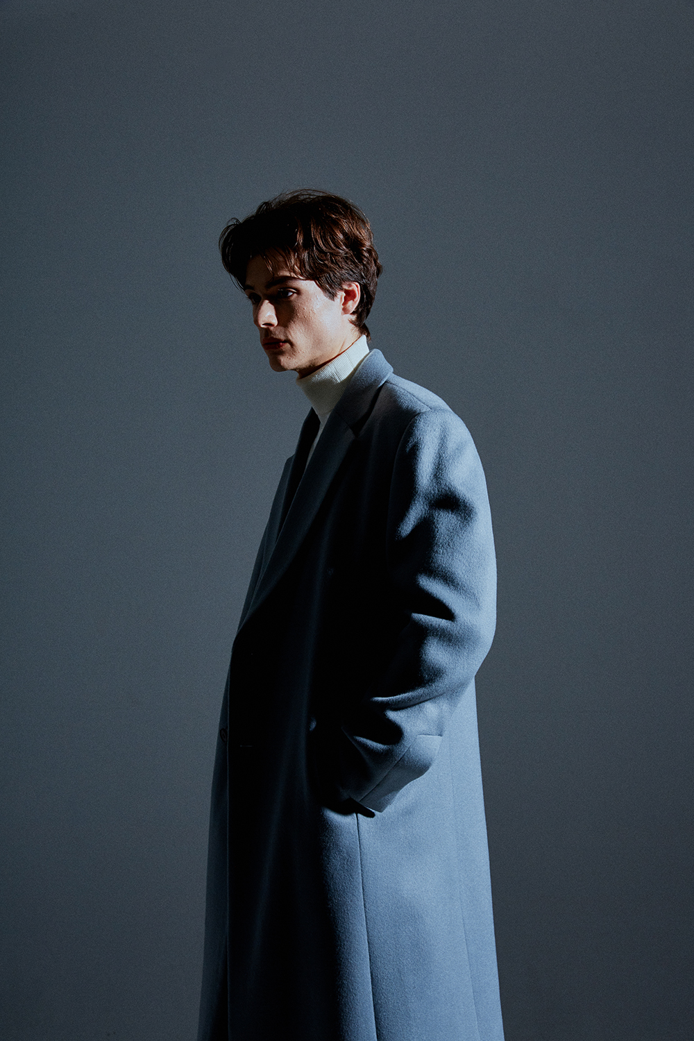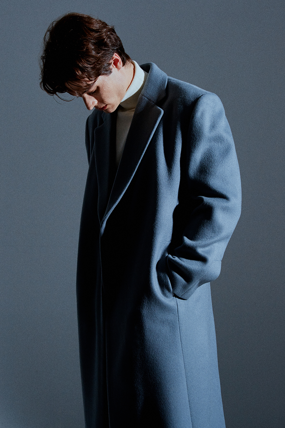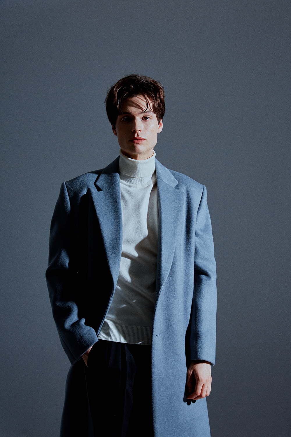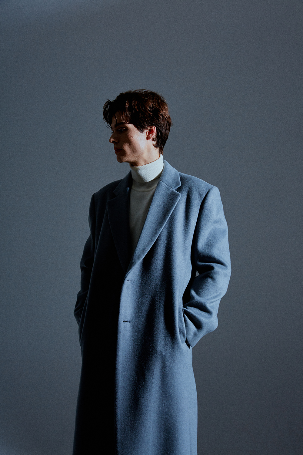 / 히든 소매 리얼 단추로 열고 잠글수 있는 디테일./ 스카이-그레이 칼라의 멋을 더합니다.