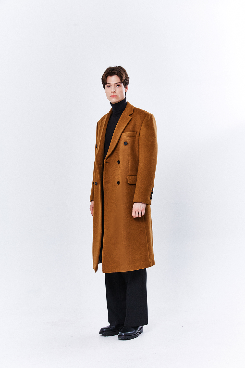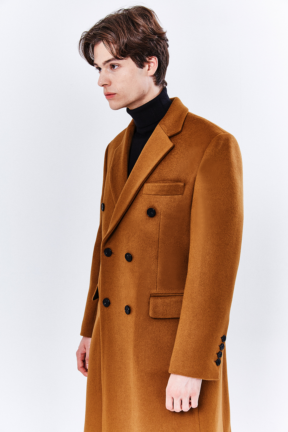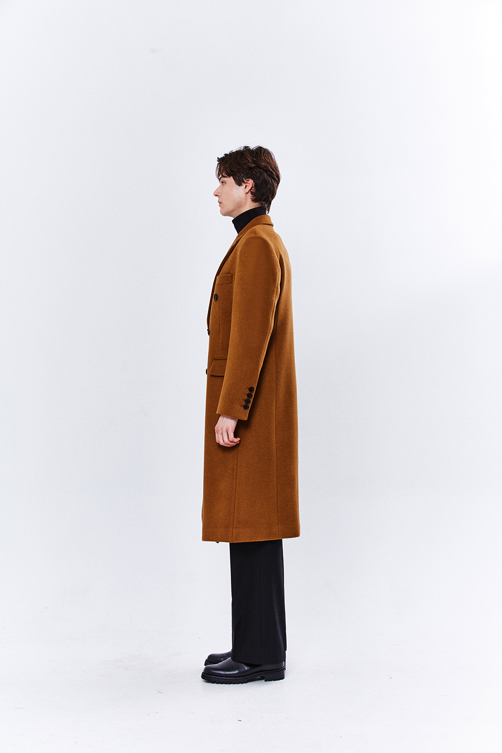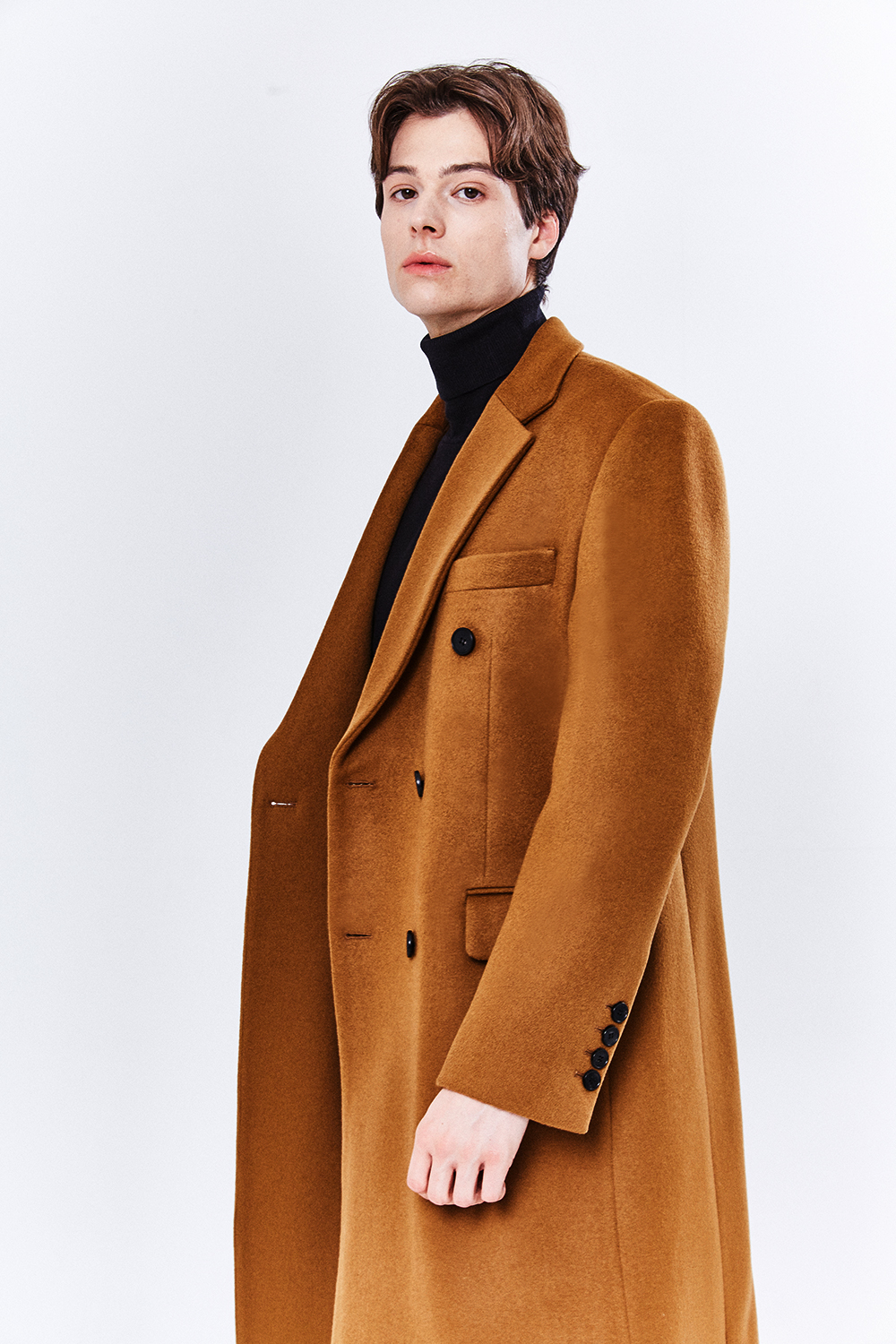 최고급 캐시미어 50% + 울 50% / 색상 COGNAC-BROWN 꼬냑-브라운 / 소뿔단추 100%