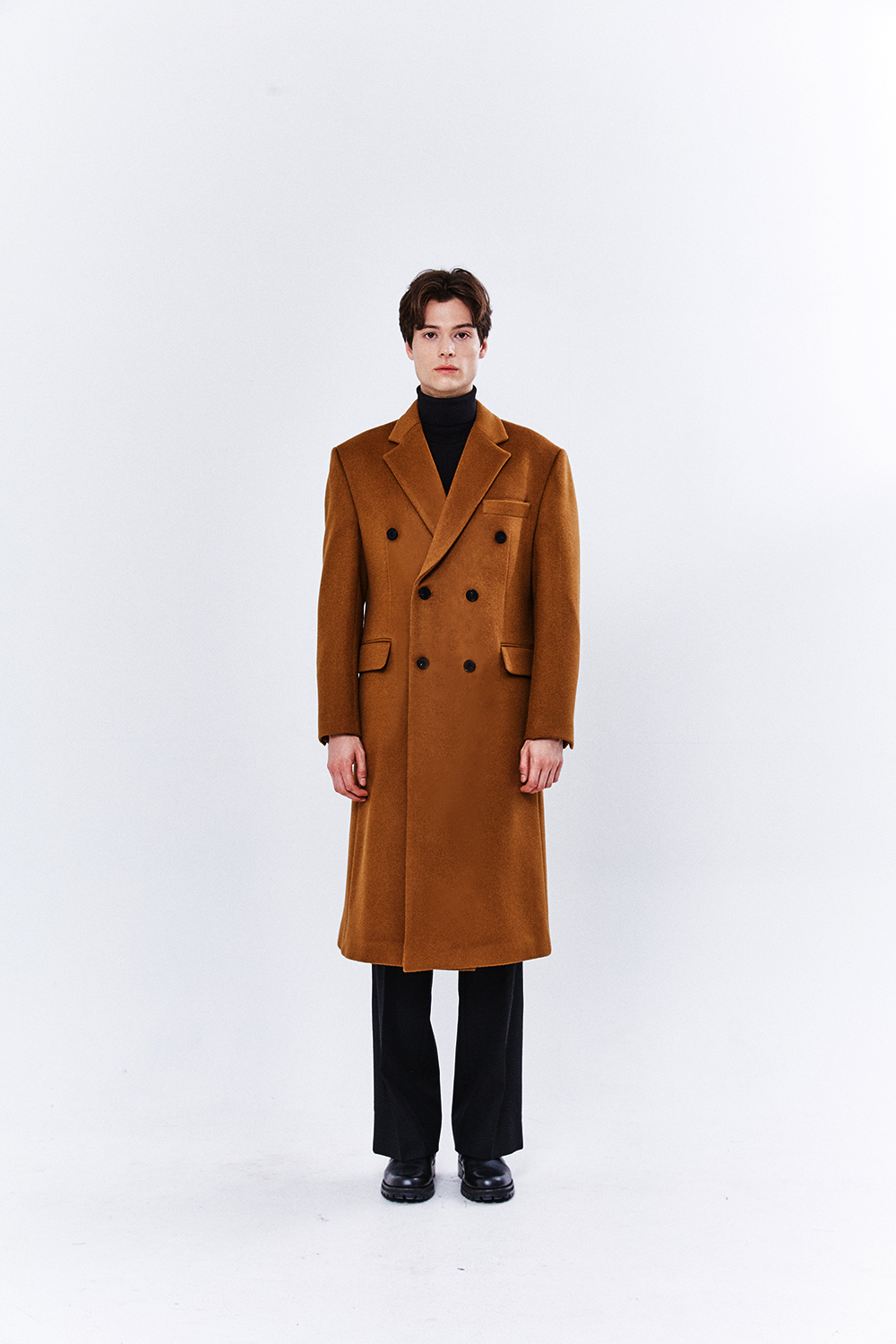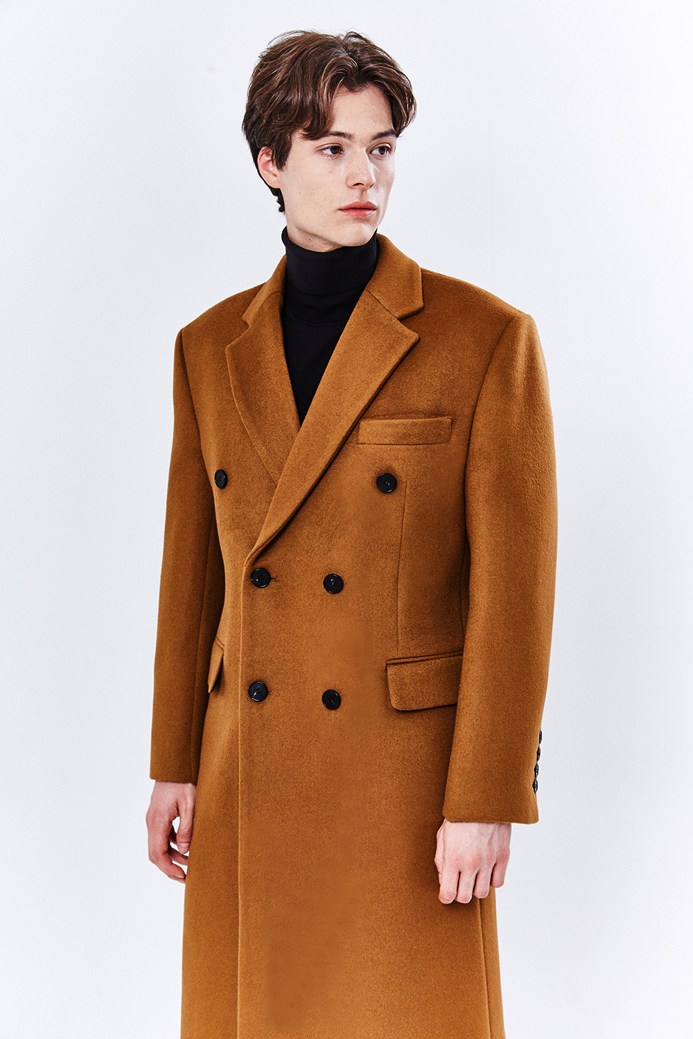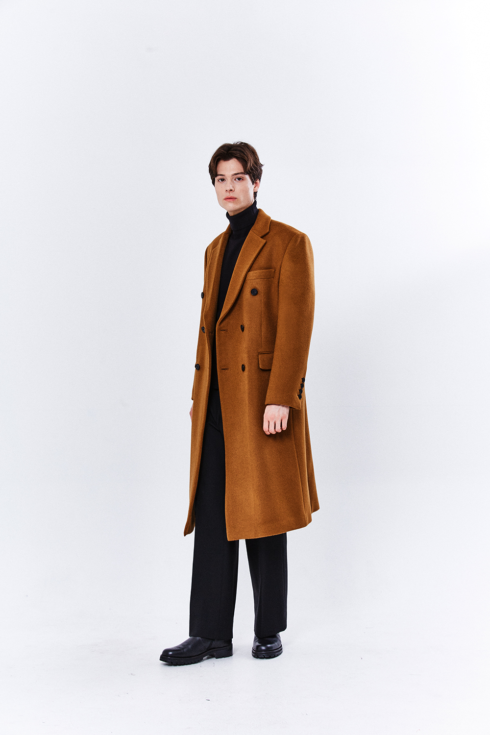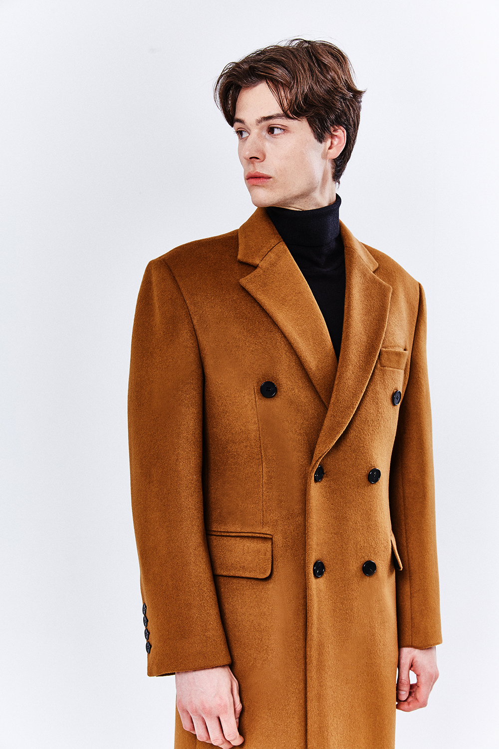 최고급 캐시미어 50% + 울 50% / 색상 COGNAC-BROWN 꼬냑-브라운 / 소뿔단추 100%