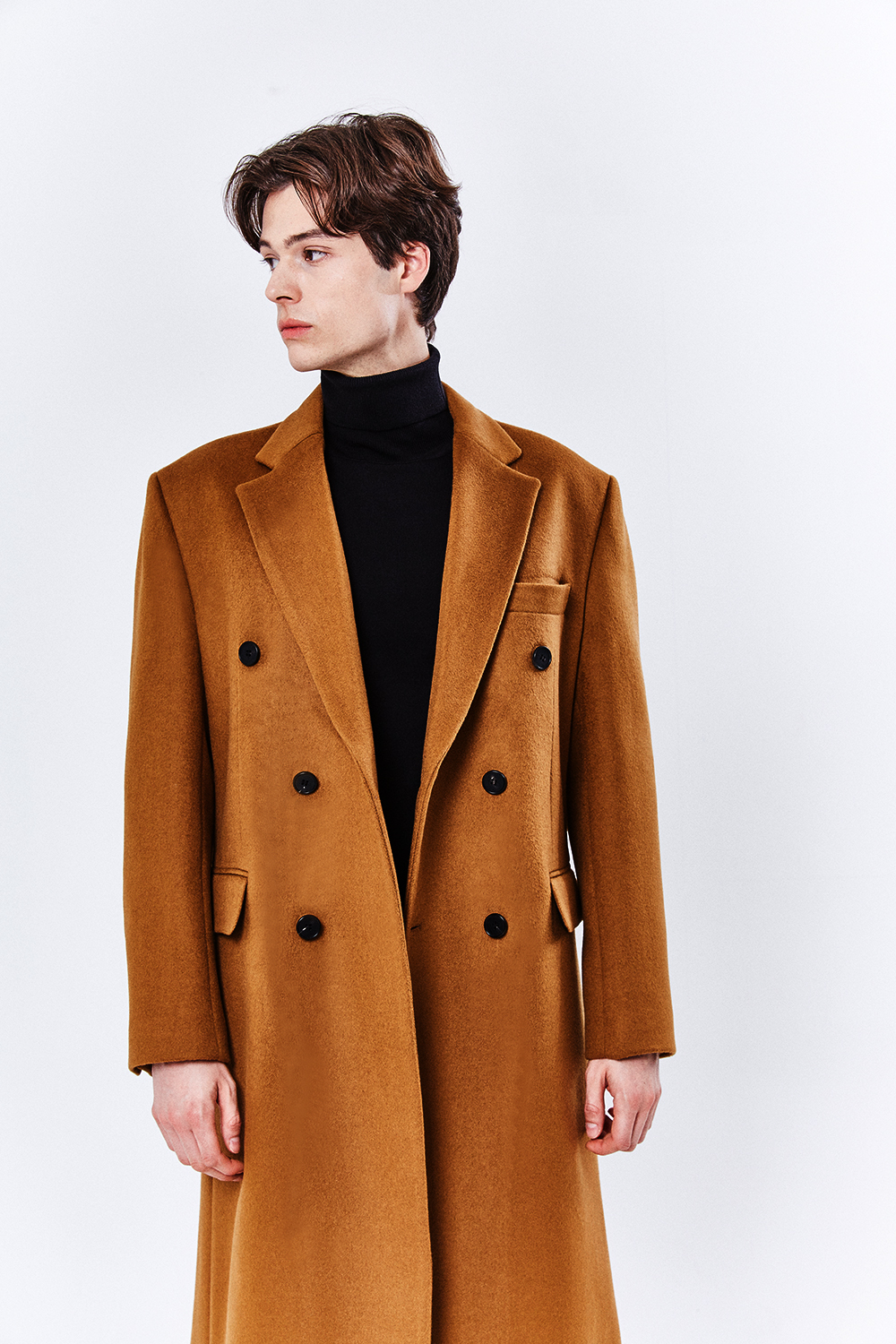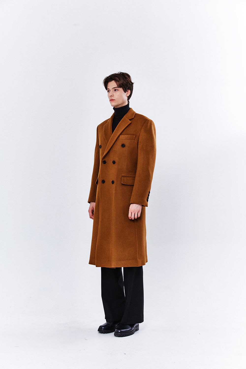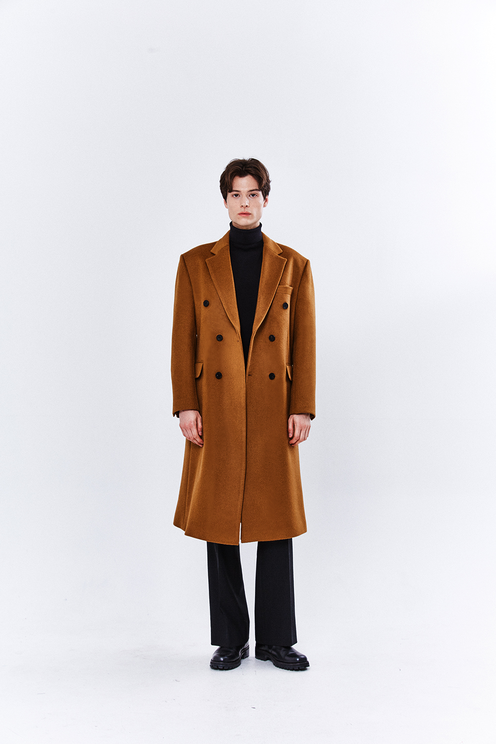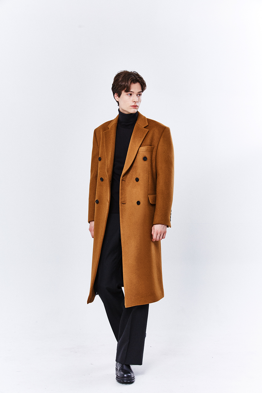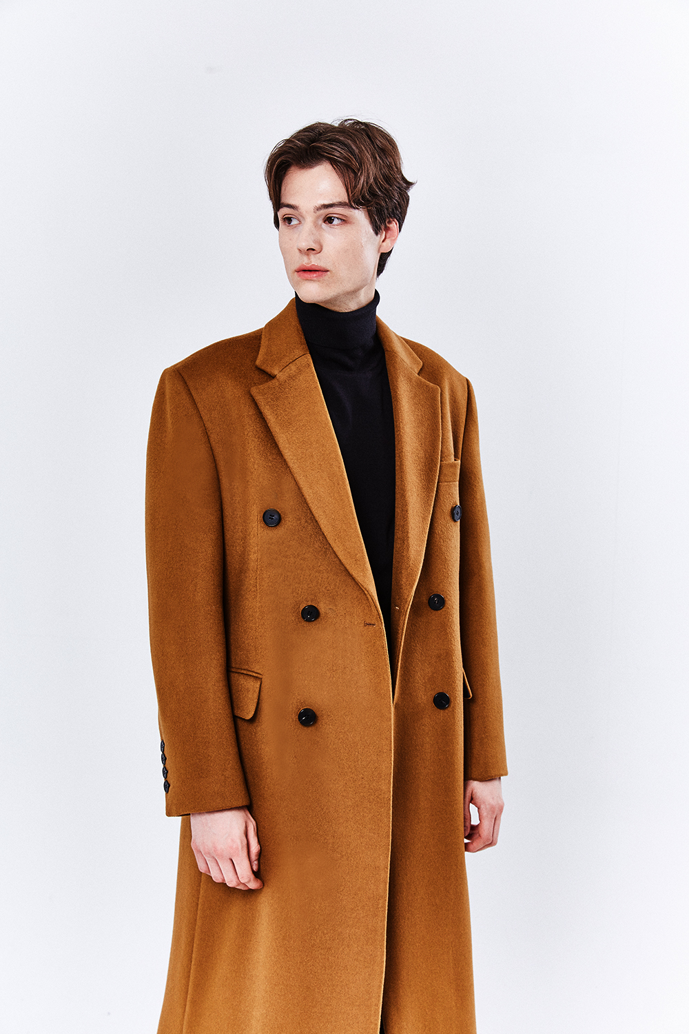 최고급 캐시미어 50% + 울 50% / 색상 COGNAC-BROWN 꼬냑-브라운 / 소뿔단추 100%