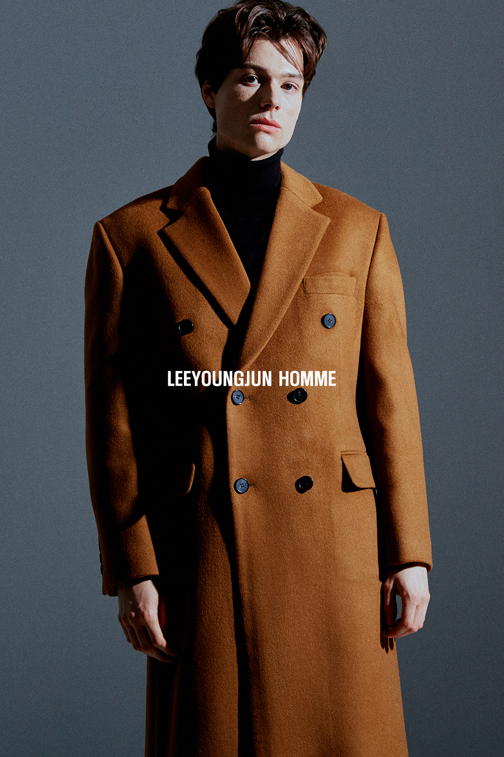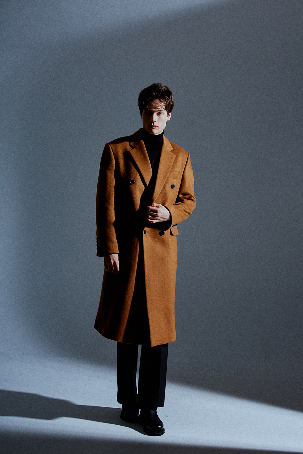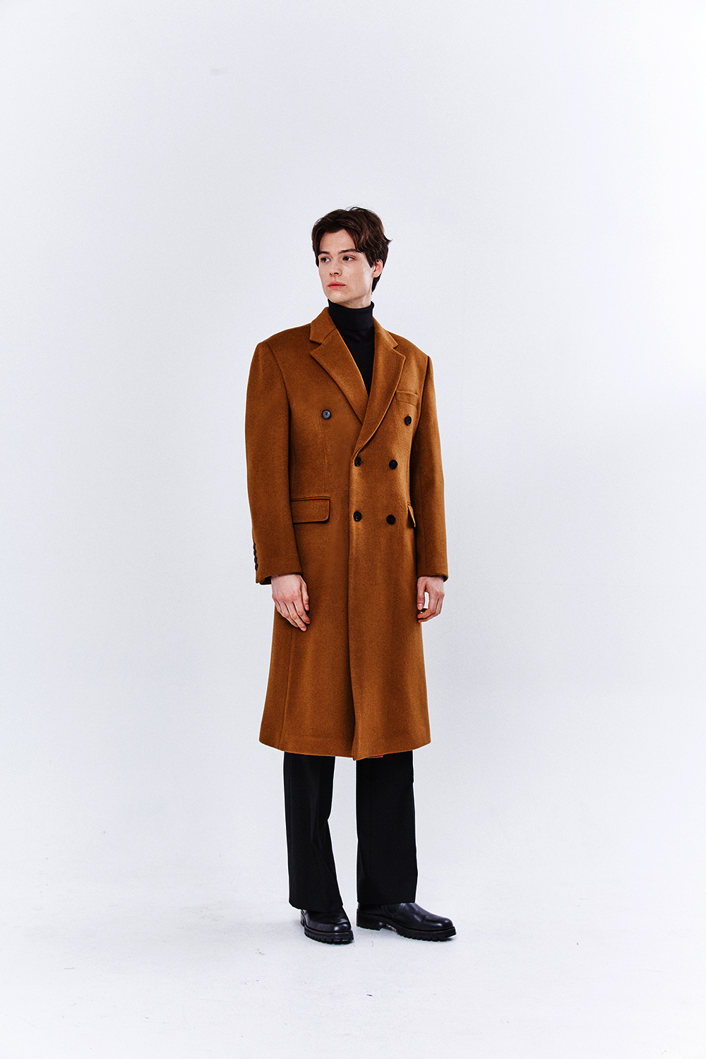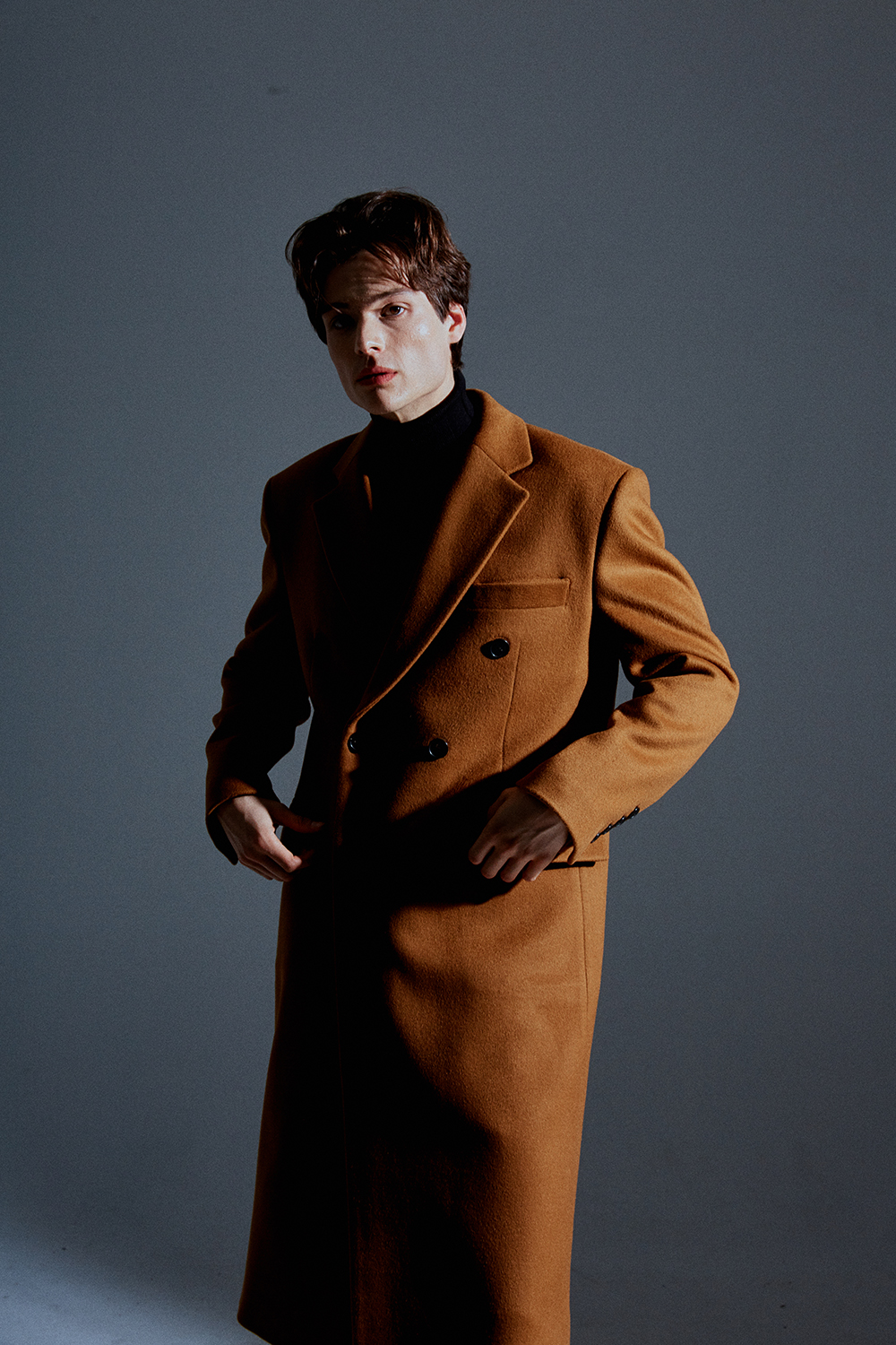 최고급 캐시미어 50% + 울 50% / 색상 COGNAC-BROWN 꼬냑-브라운 / 소뿔단추 100%