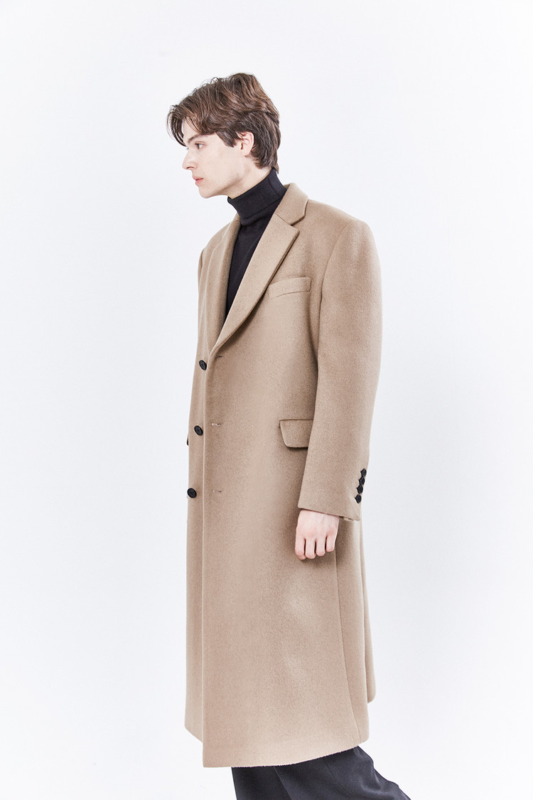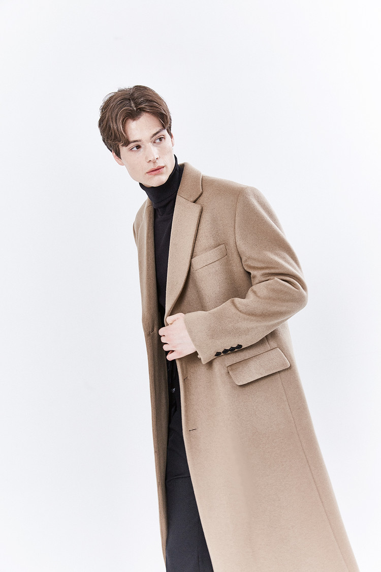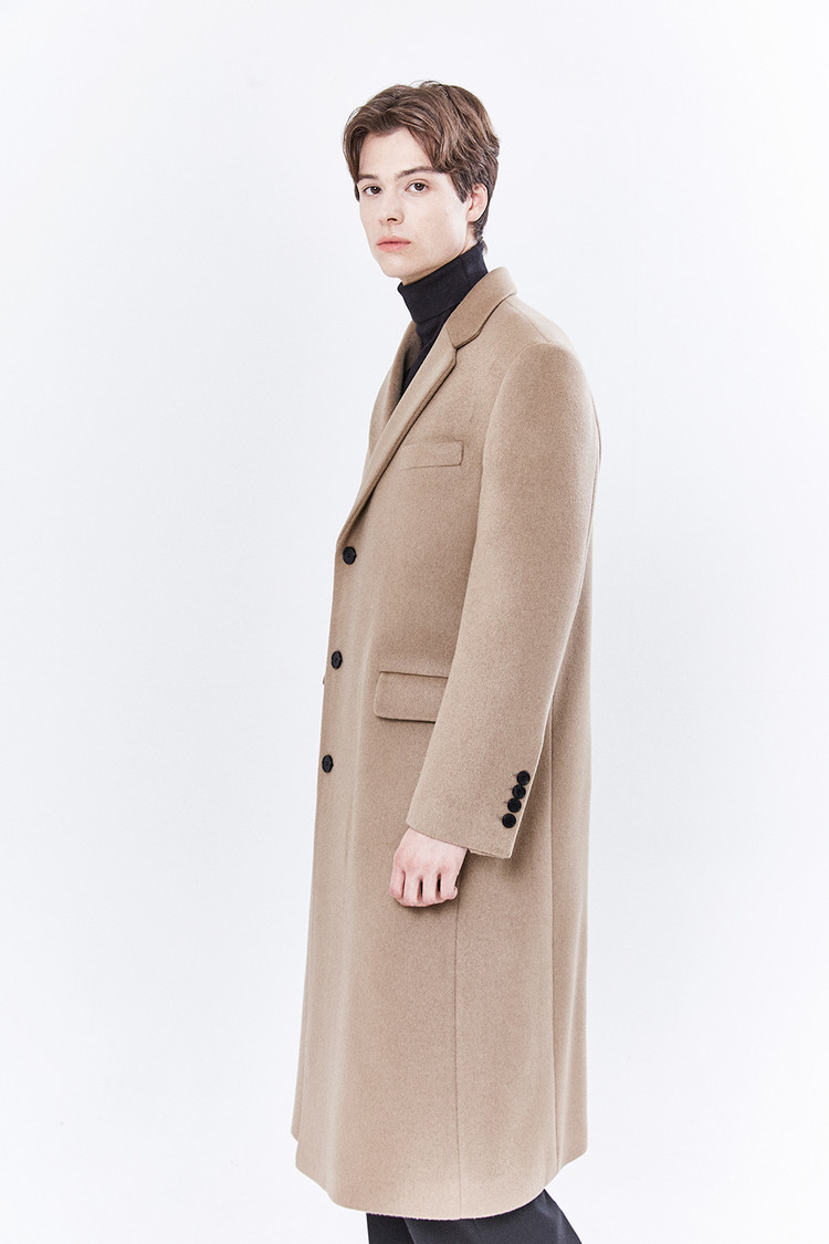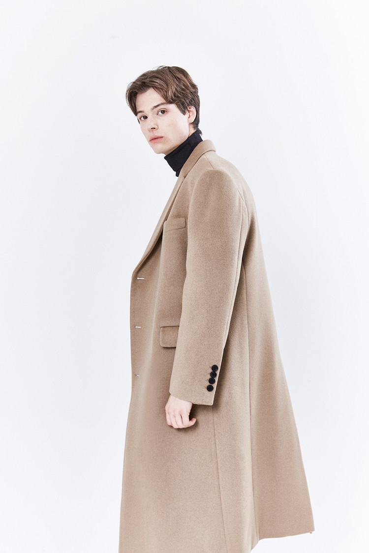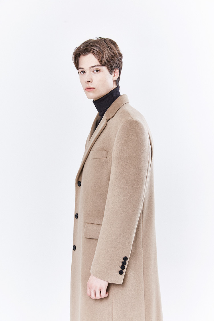 최고급 캐시미어 50% + 울 50% / 색상 COW HAIR-BEIGE 소털-베이지 / 소뿔단추 100%