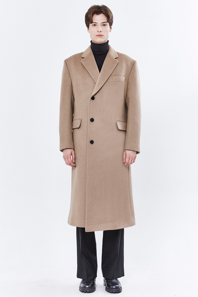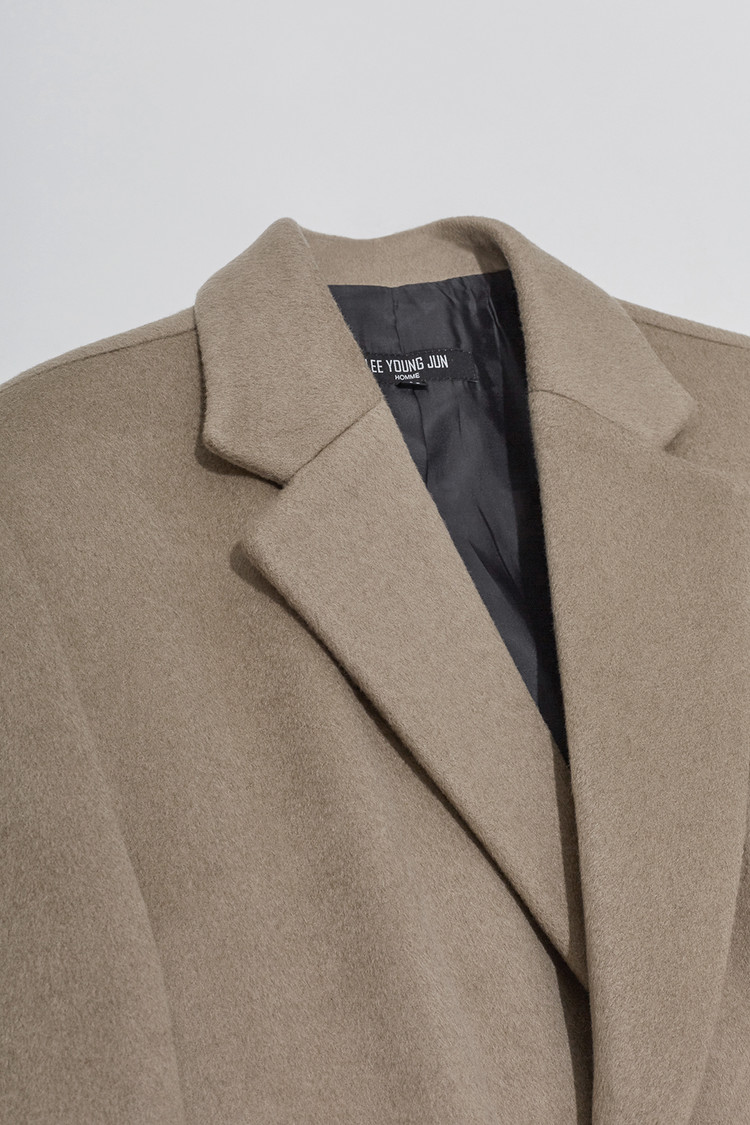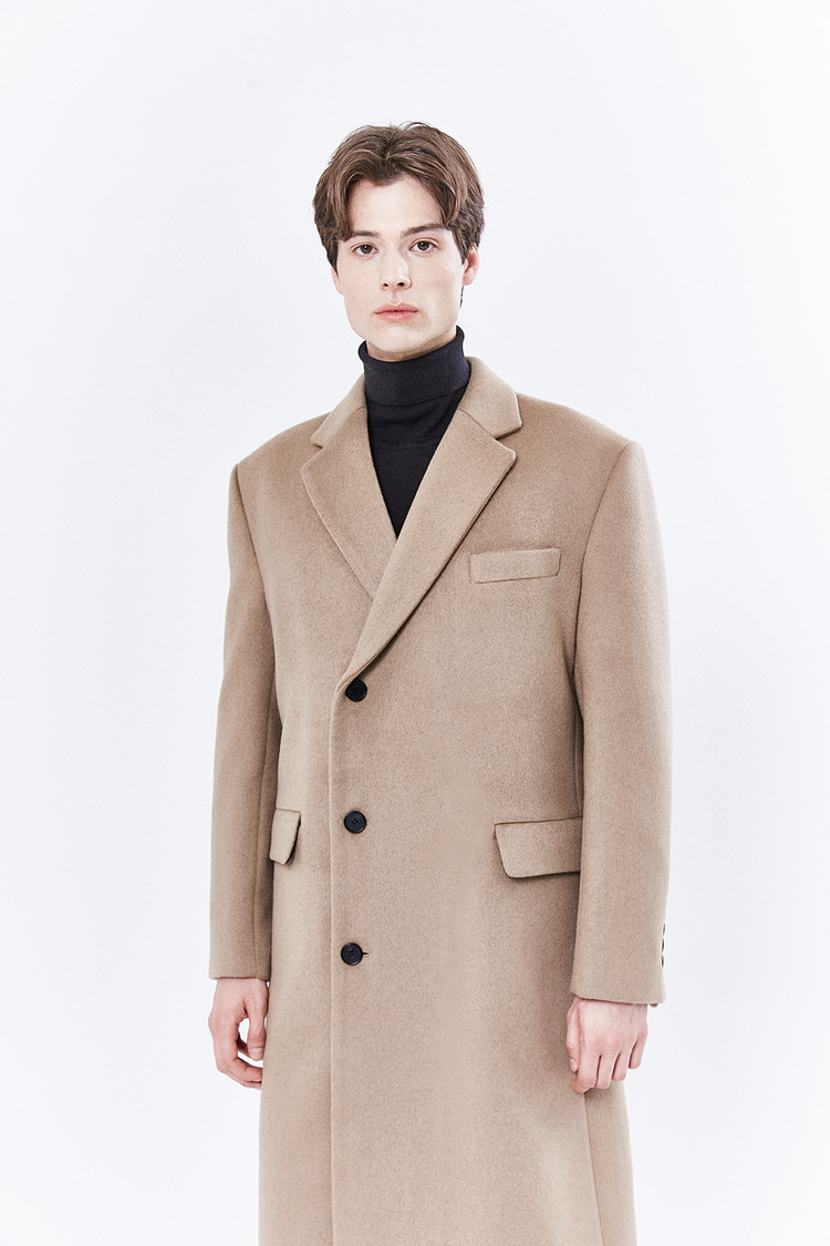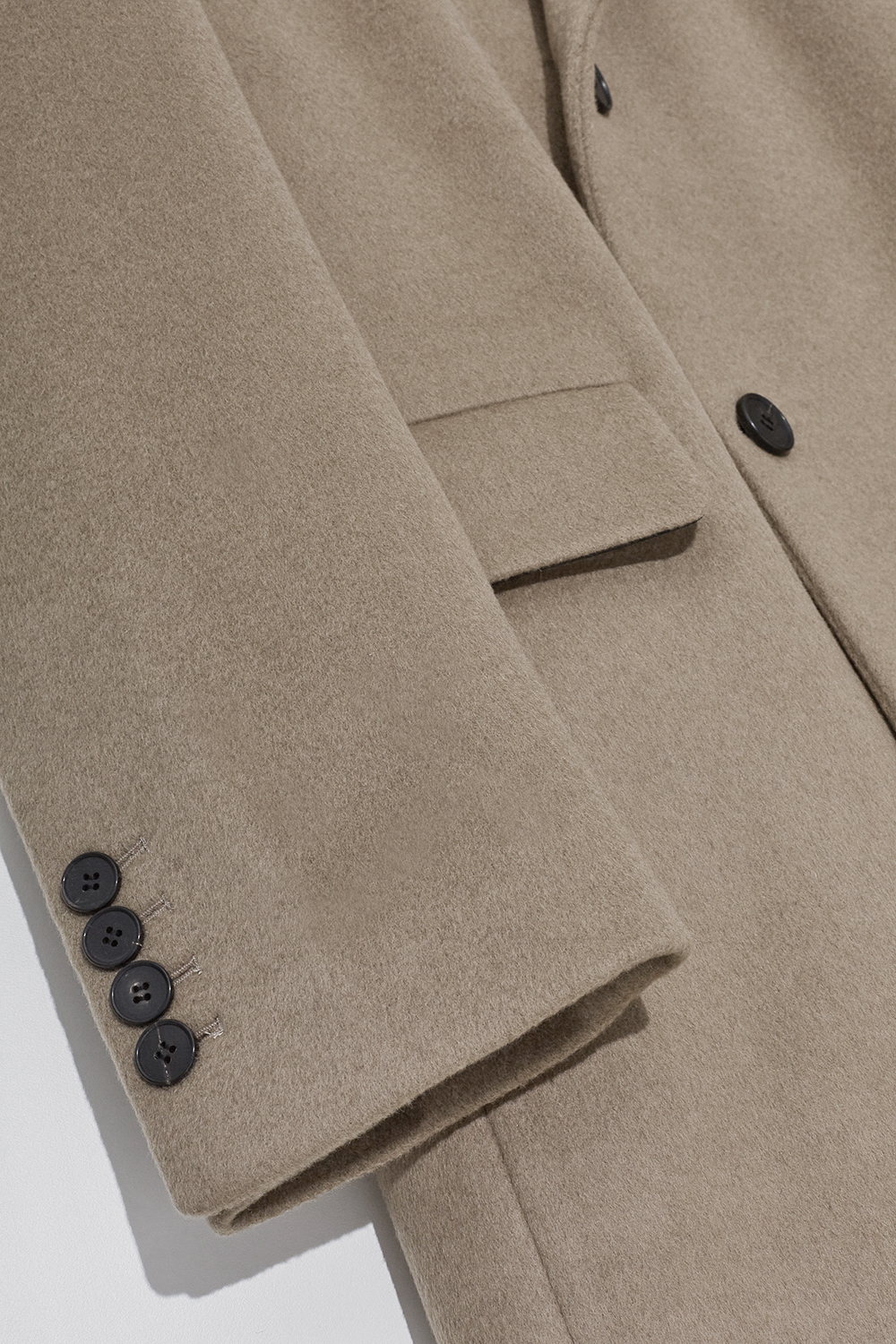 최고급 캐시미어 50% + 울 50% / 색상 COW HAIR-BEIGE 소털-베이지 / 소뿔단추 100%