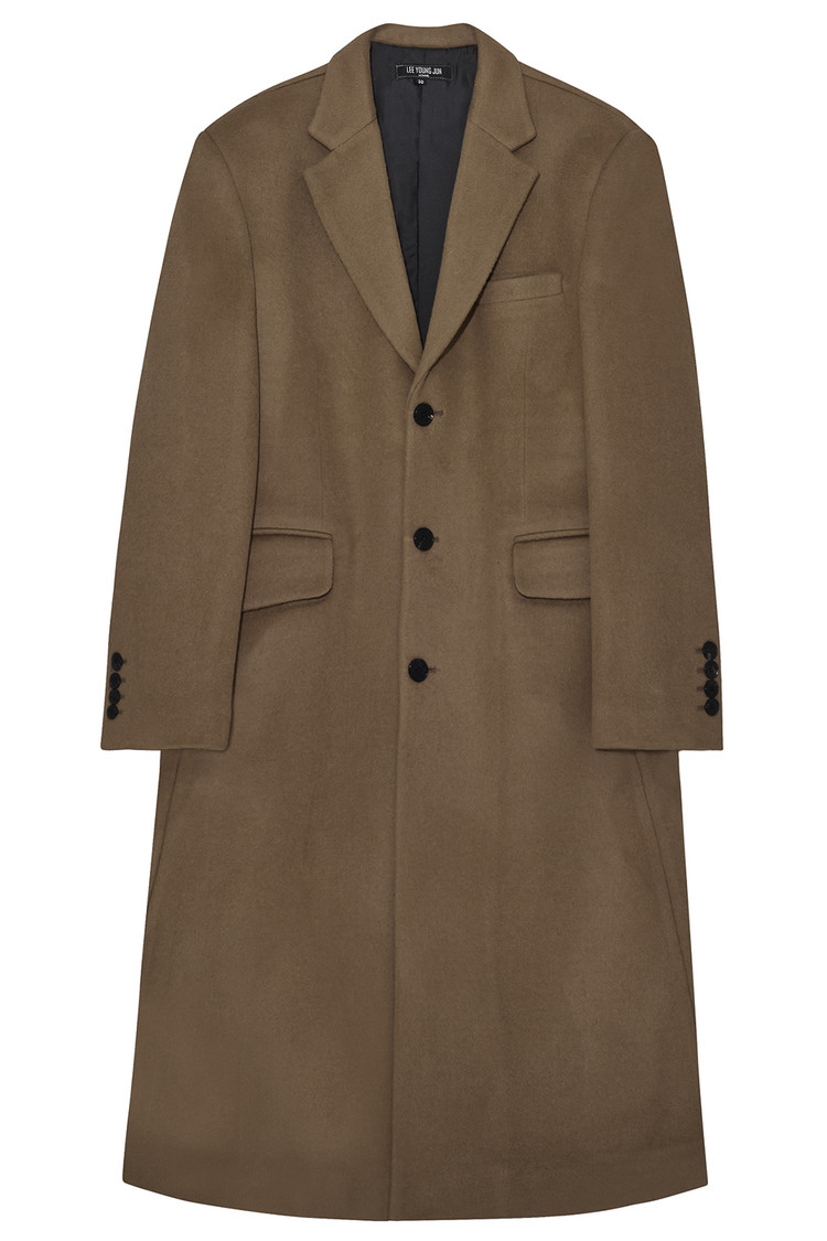*클래식한 노치드 라펠의 3버튼 디자인 / 올리브-카키의 고급스러운 원단