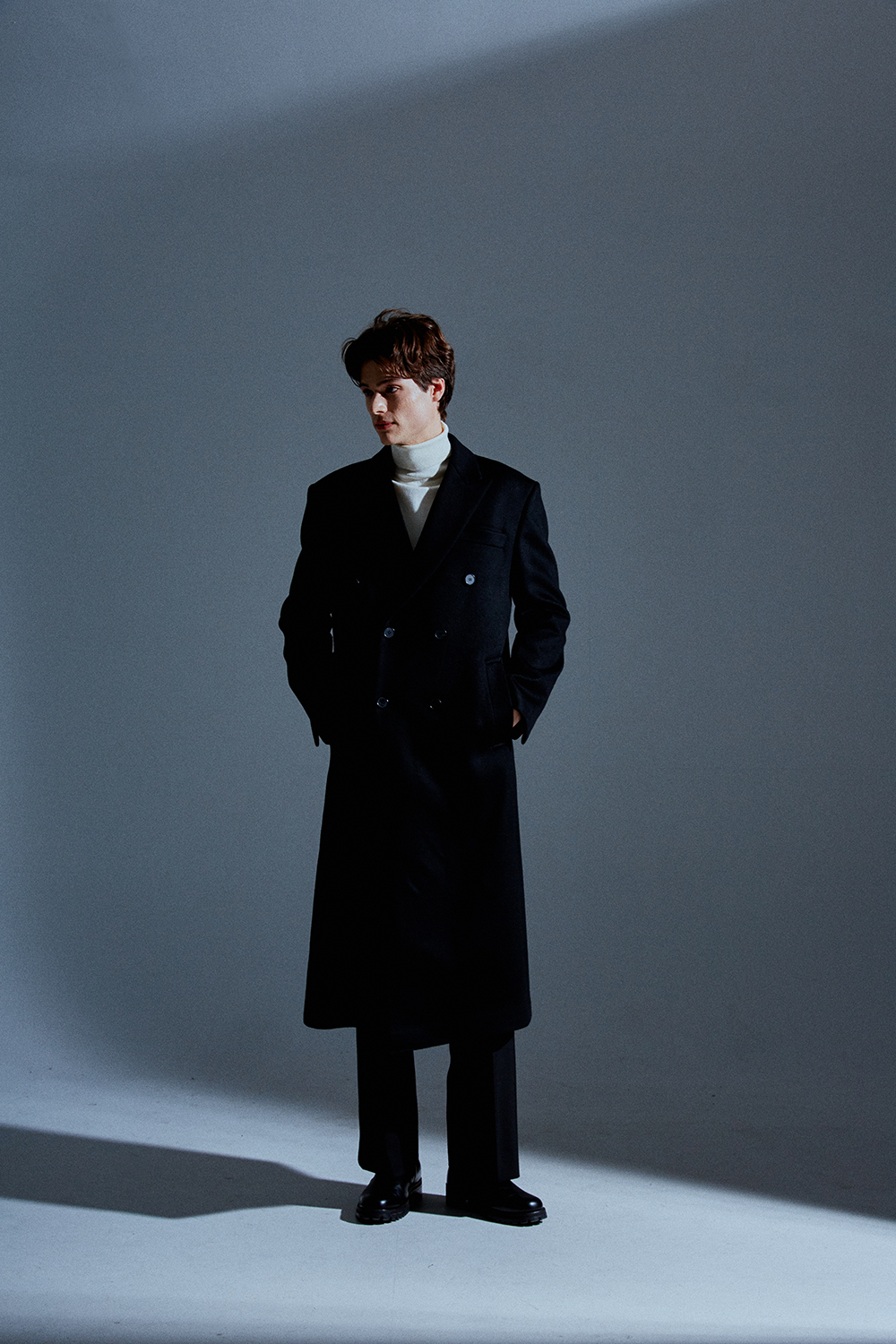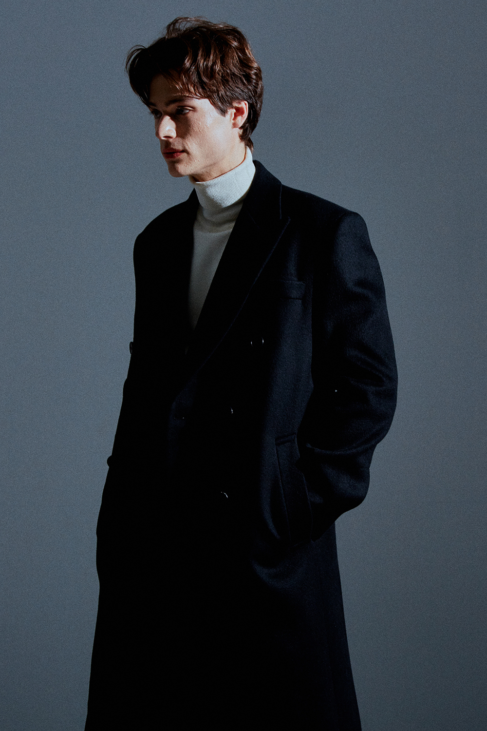 *울 소재의 고급스러운 윤기와 남성복 코트에 잘 어울리는