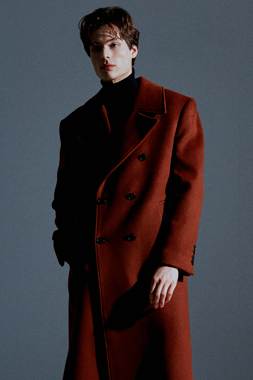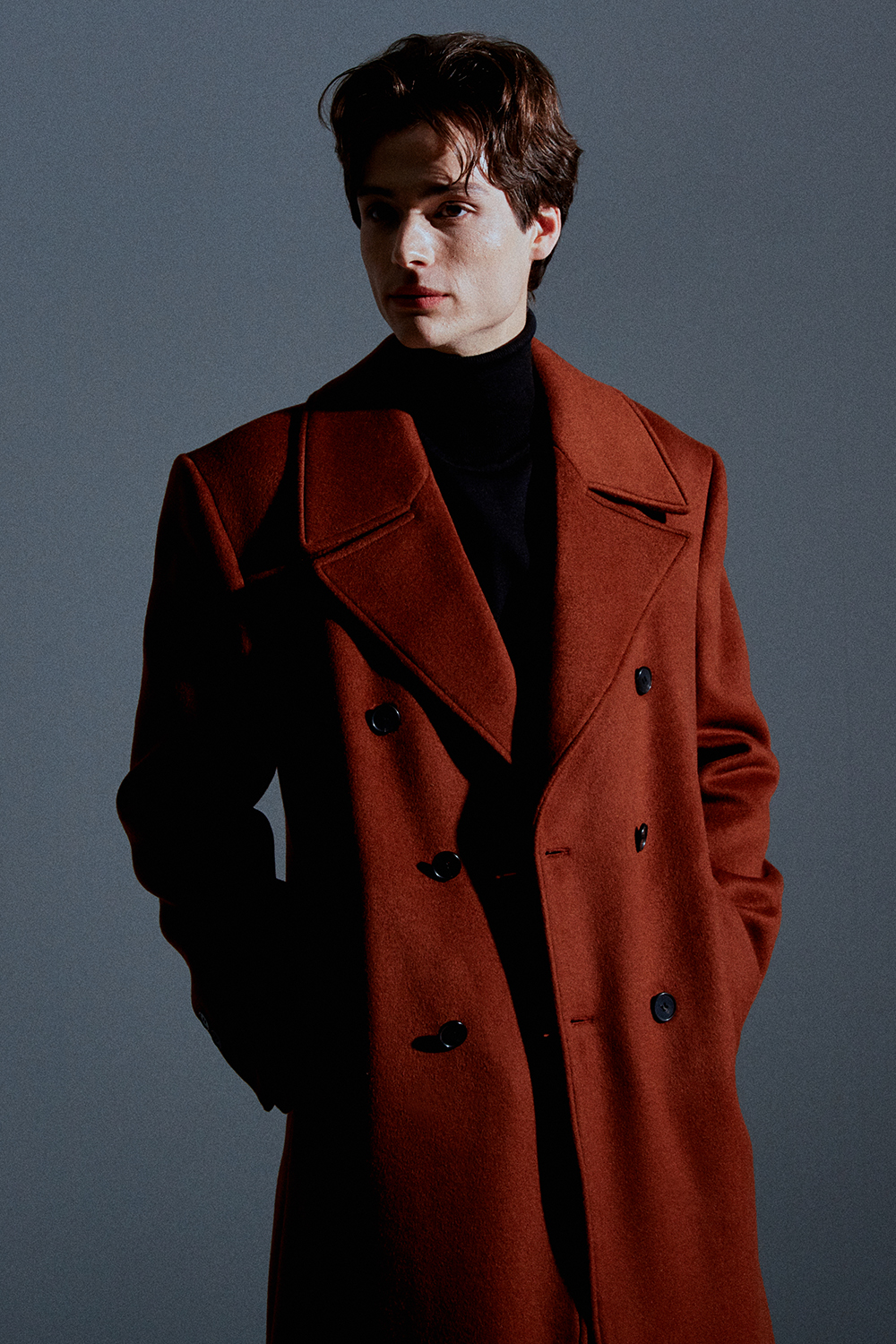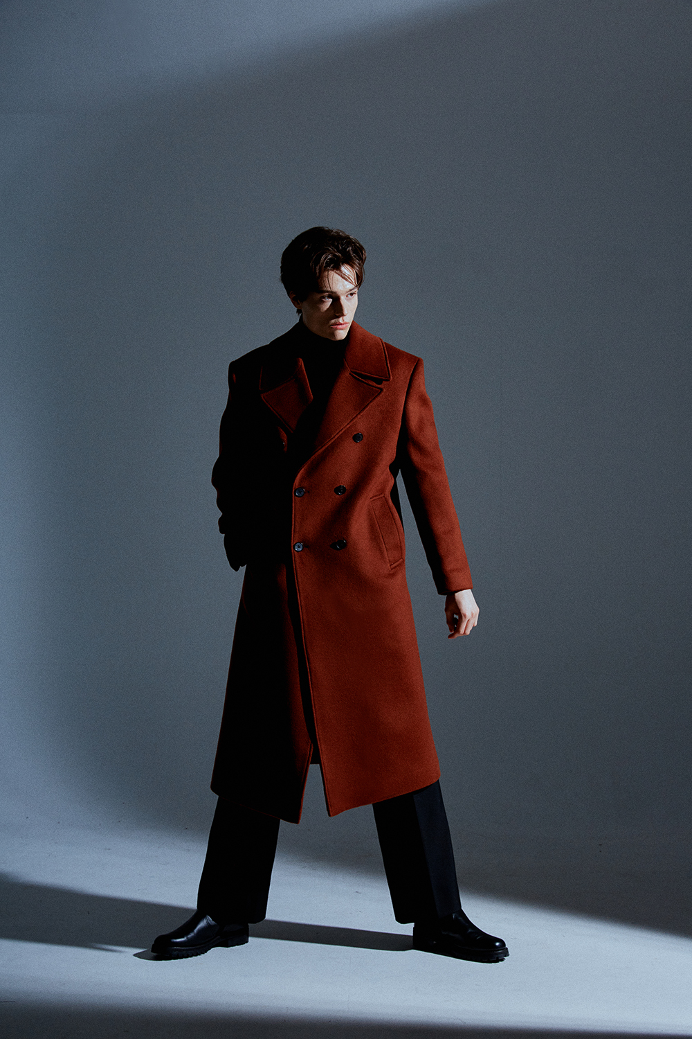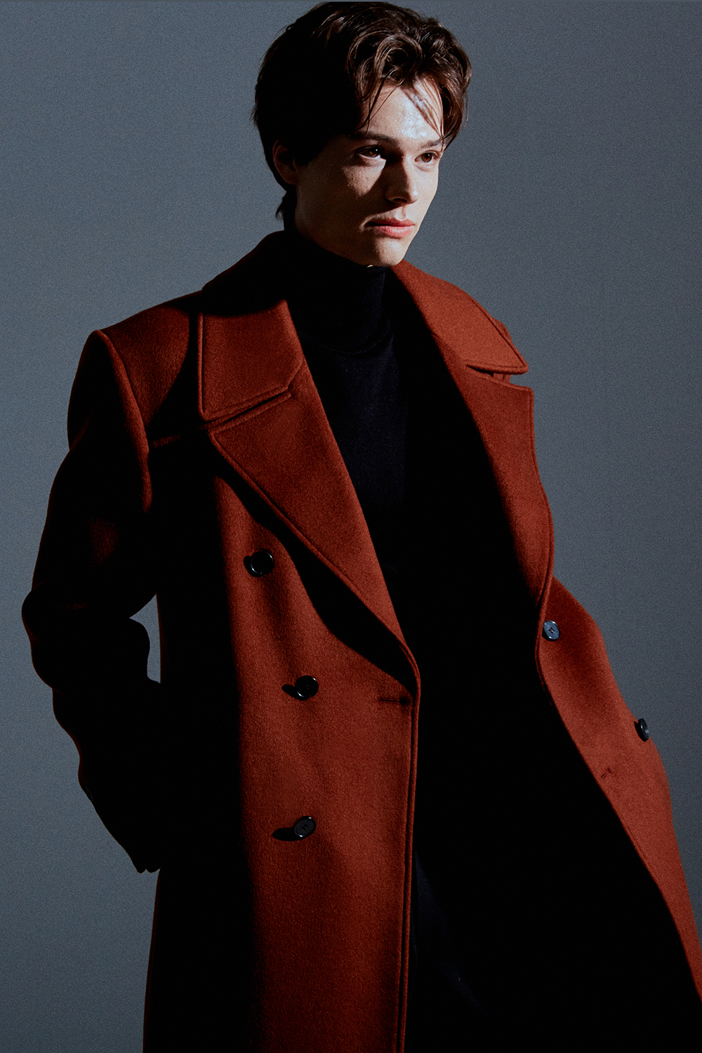 *울 소재의 고급스러운 윤기와 남성복 코트에 잘 어울리는