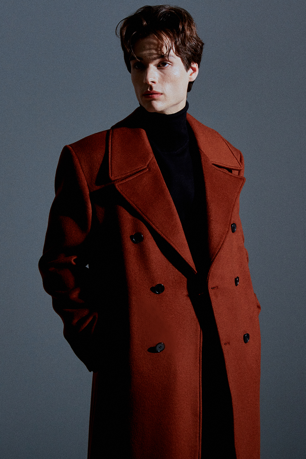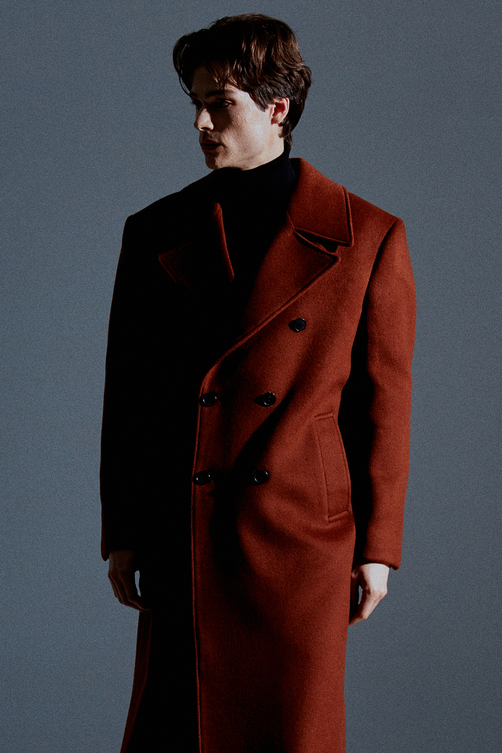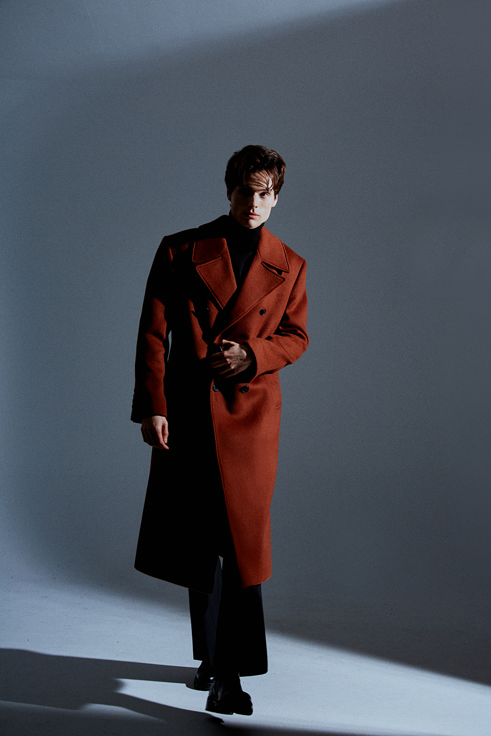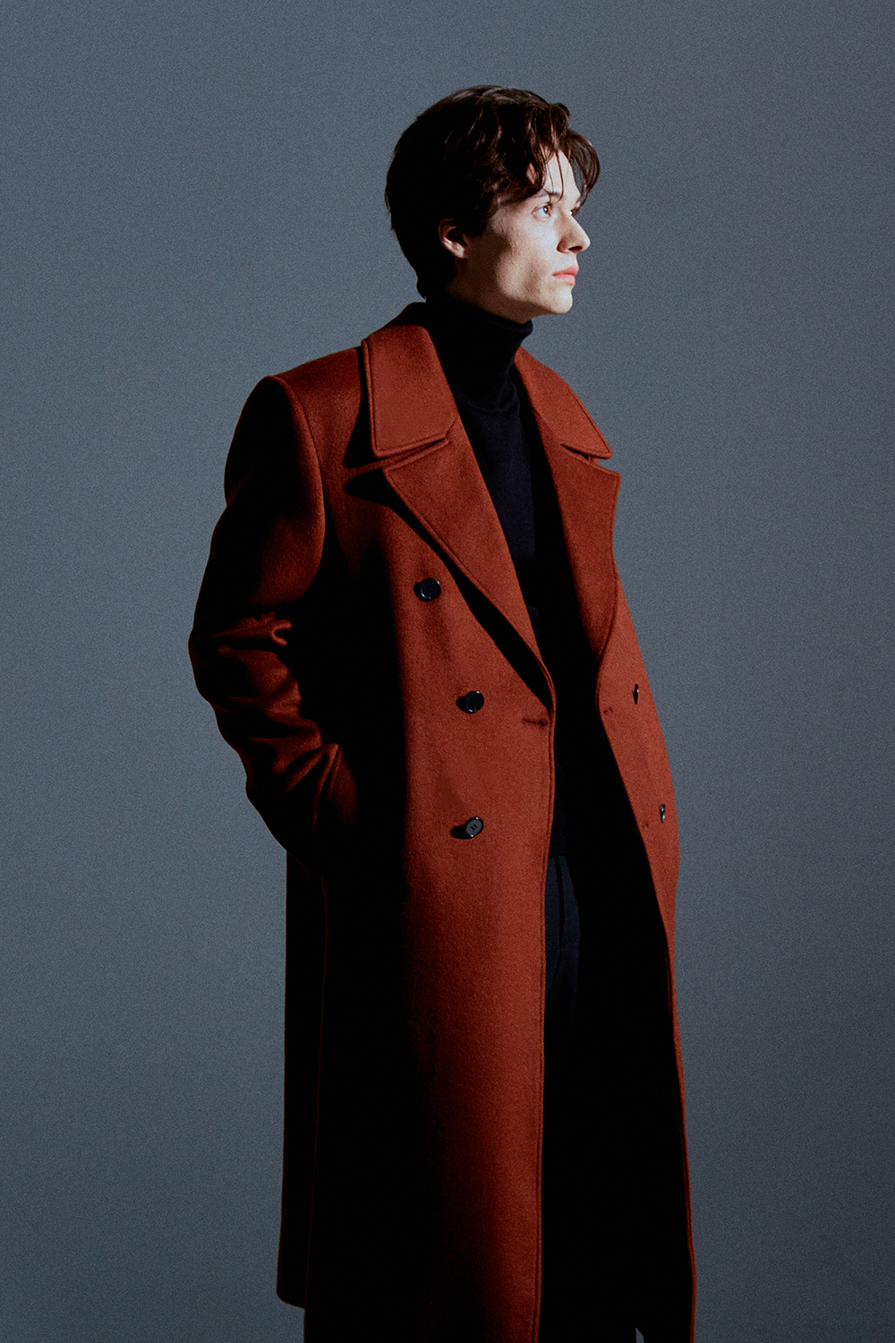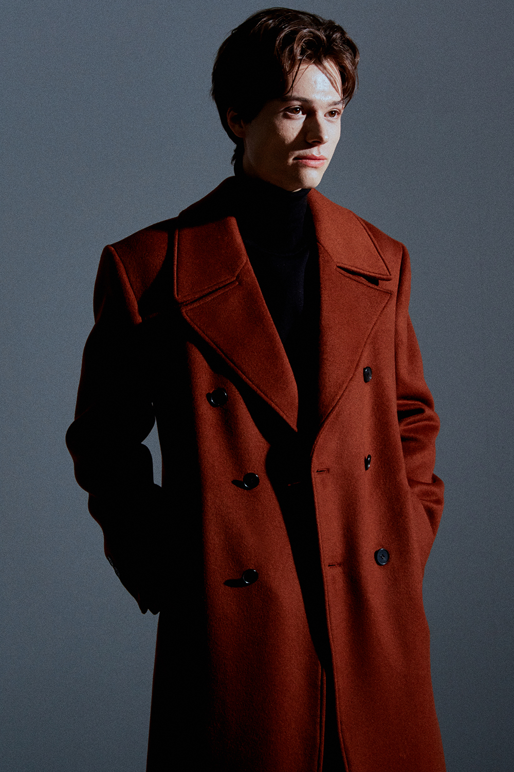 *울 소재의 고급스러운 윤기와 남성복 코트에 잘 어울리는