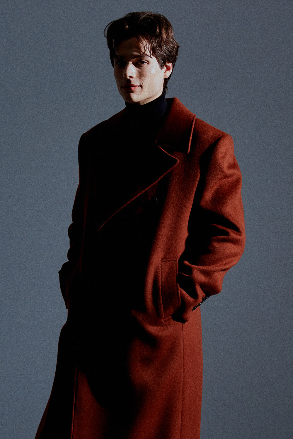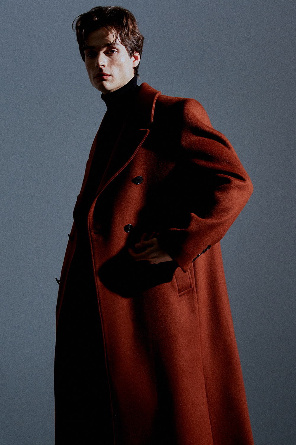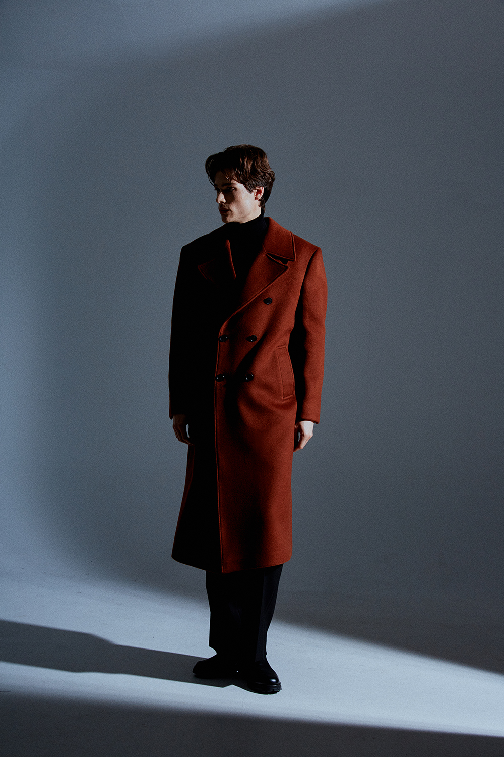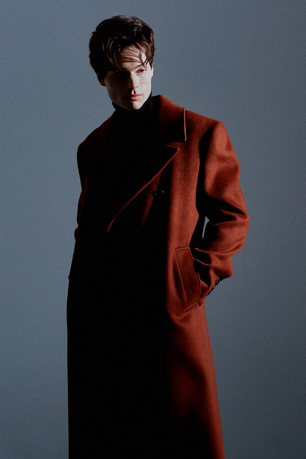 *울 소재의 고급스러운 윤기와 남성복 코트에 잘 어울리는