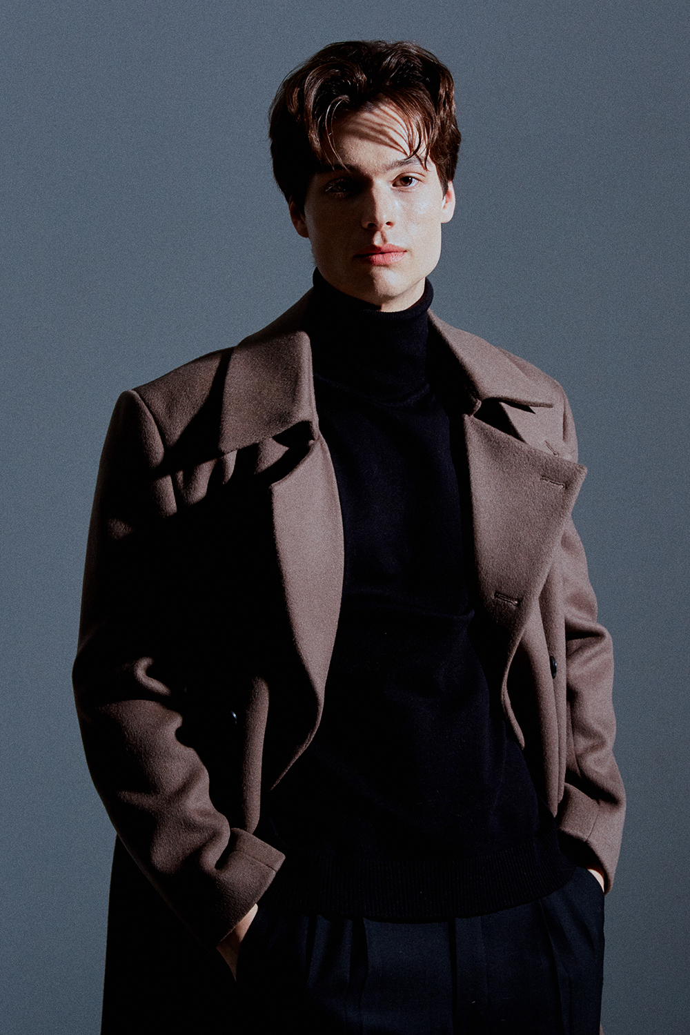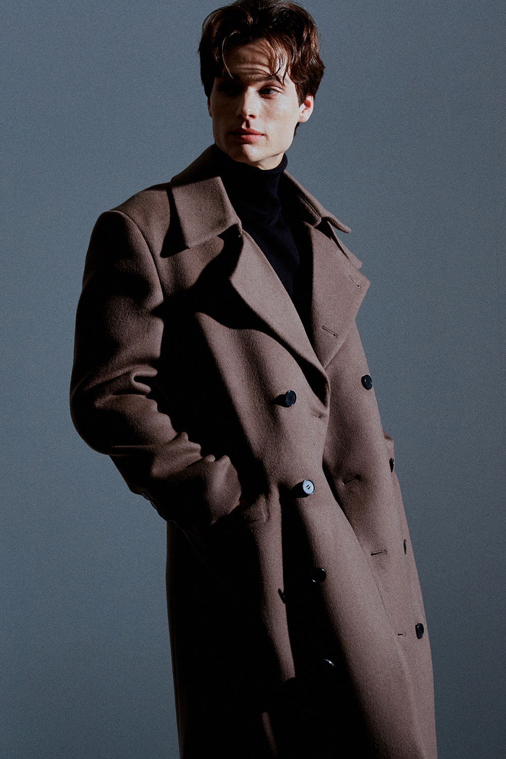 *울 소재의 고급스러운 윤기와 남성복 코트에 잘 어울리는