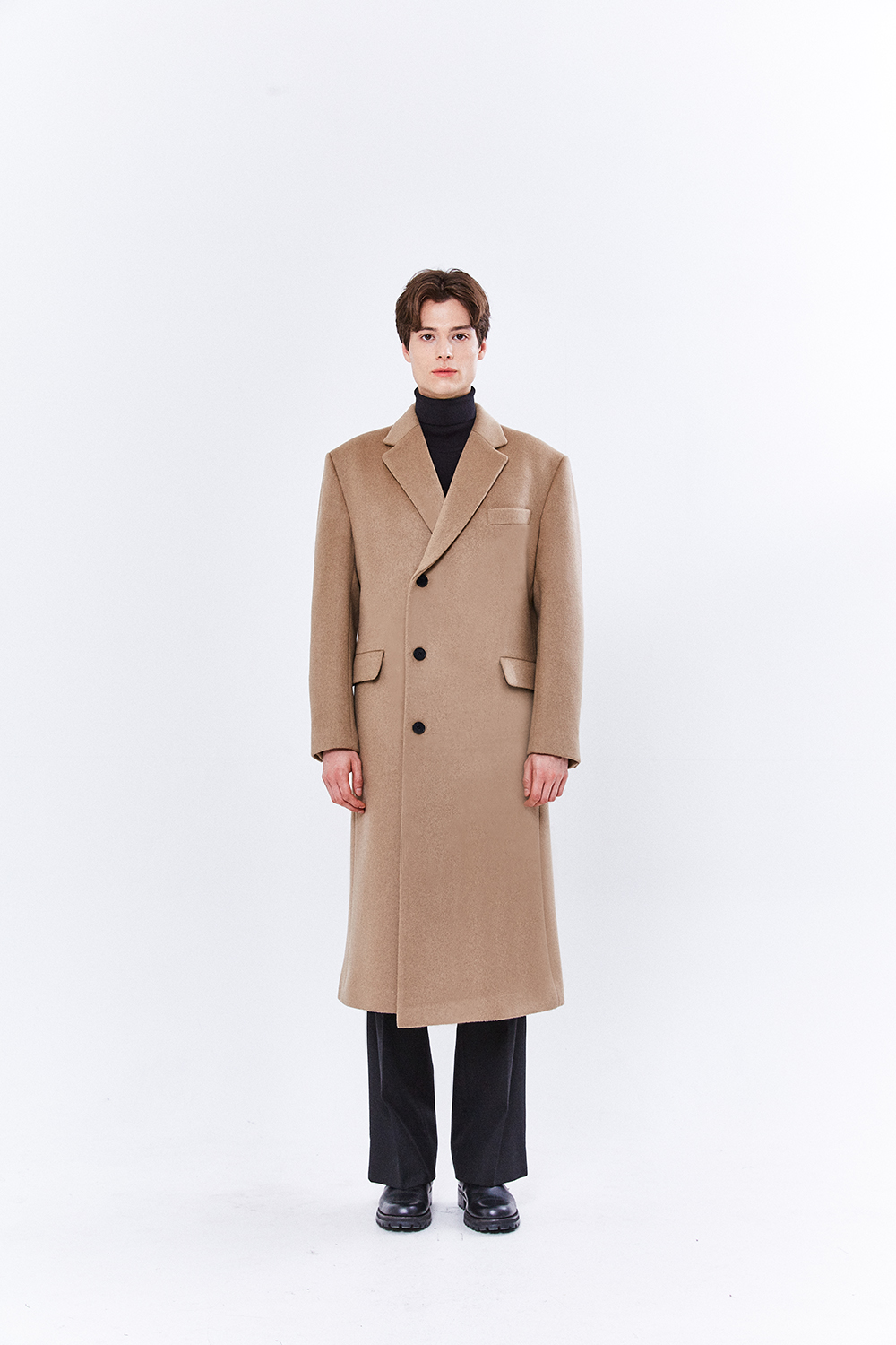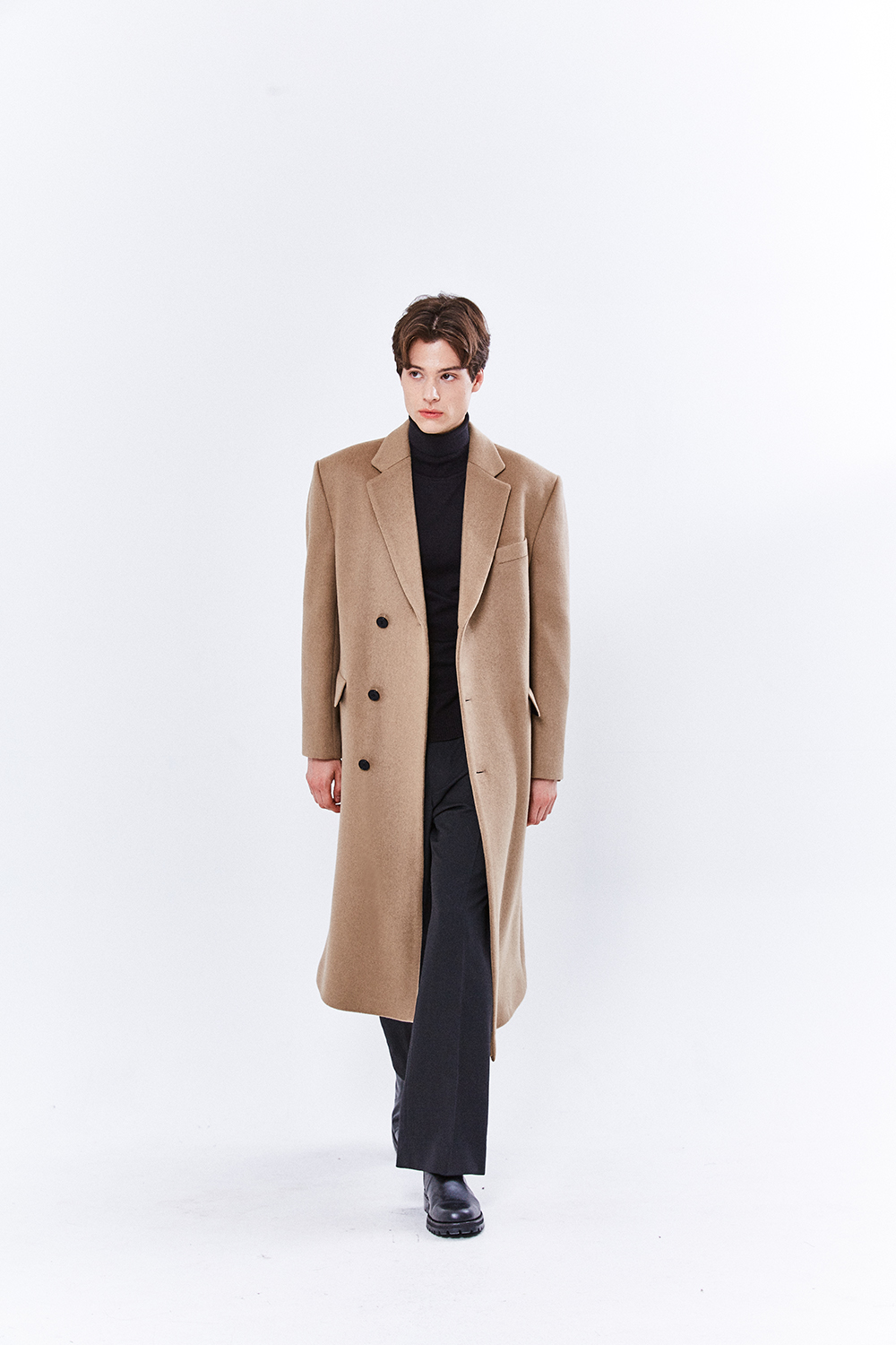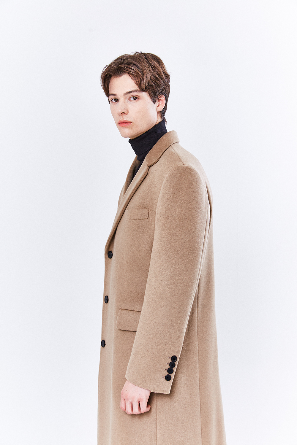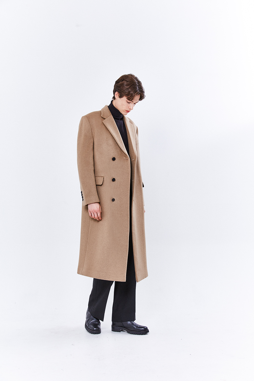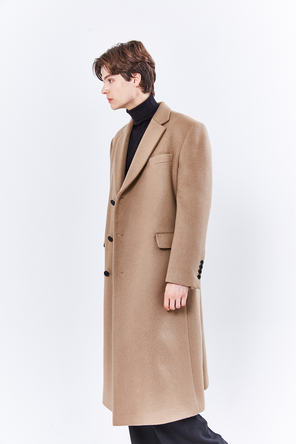 최고급 캐시미어 50% + 울 50% / 색상 BLACK 블랙 / 소뿔단추 100%
