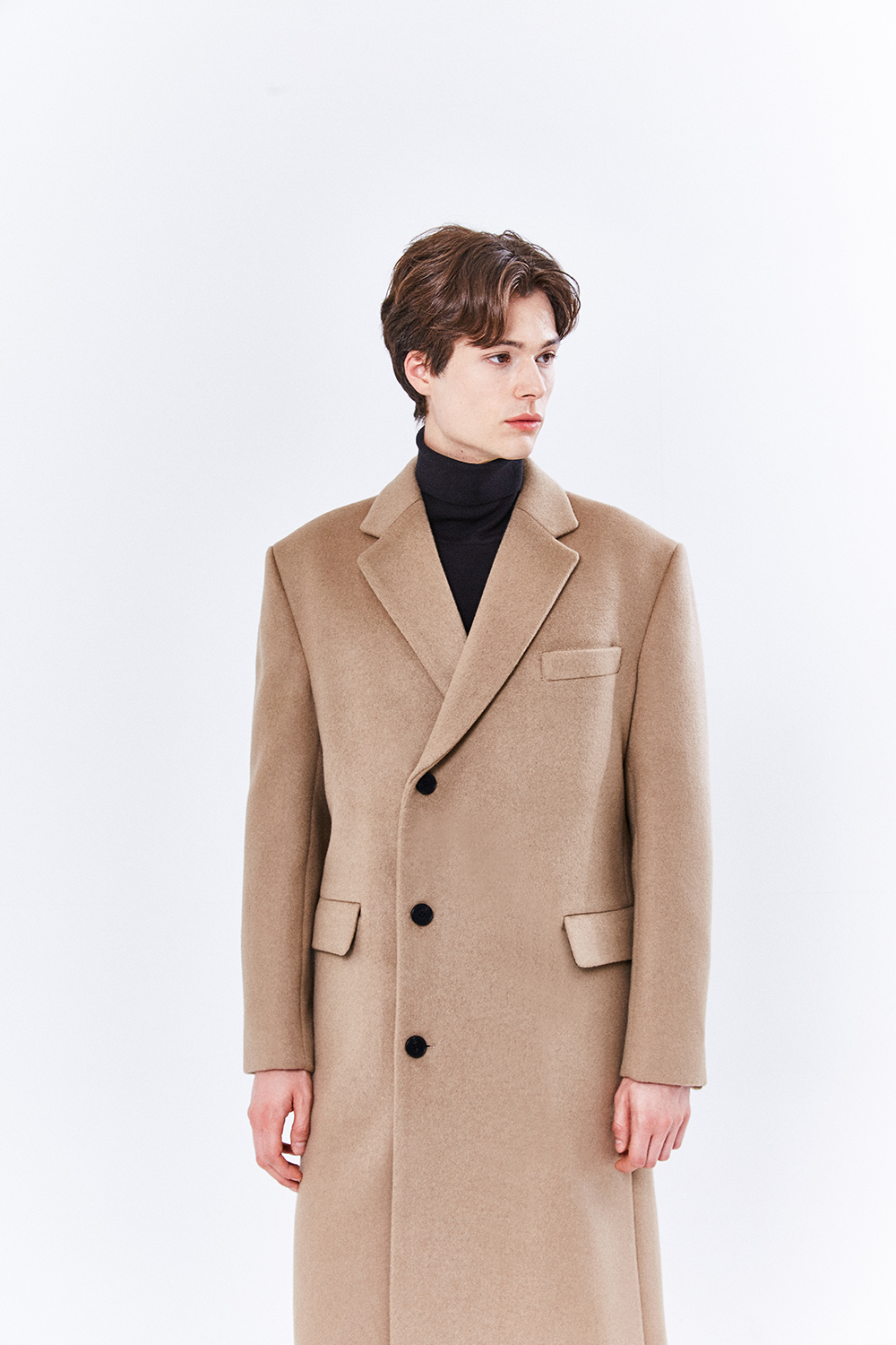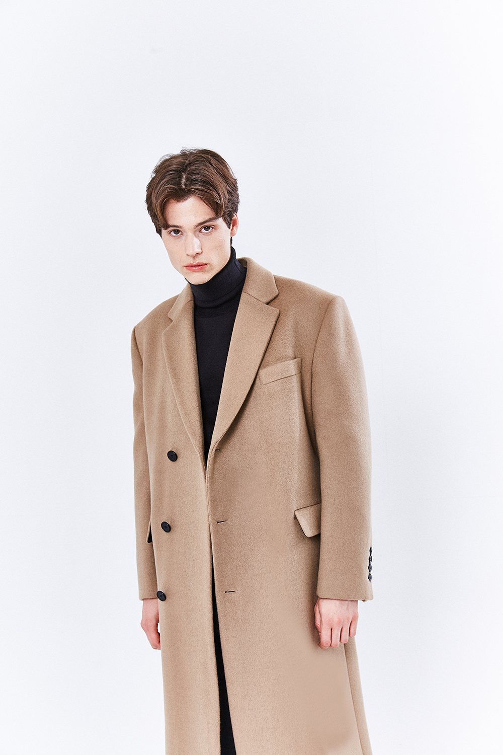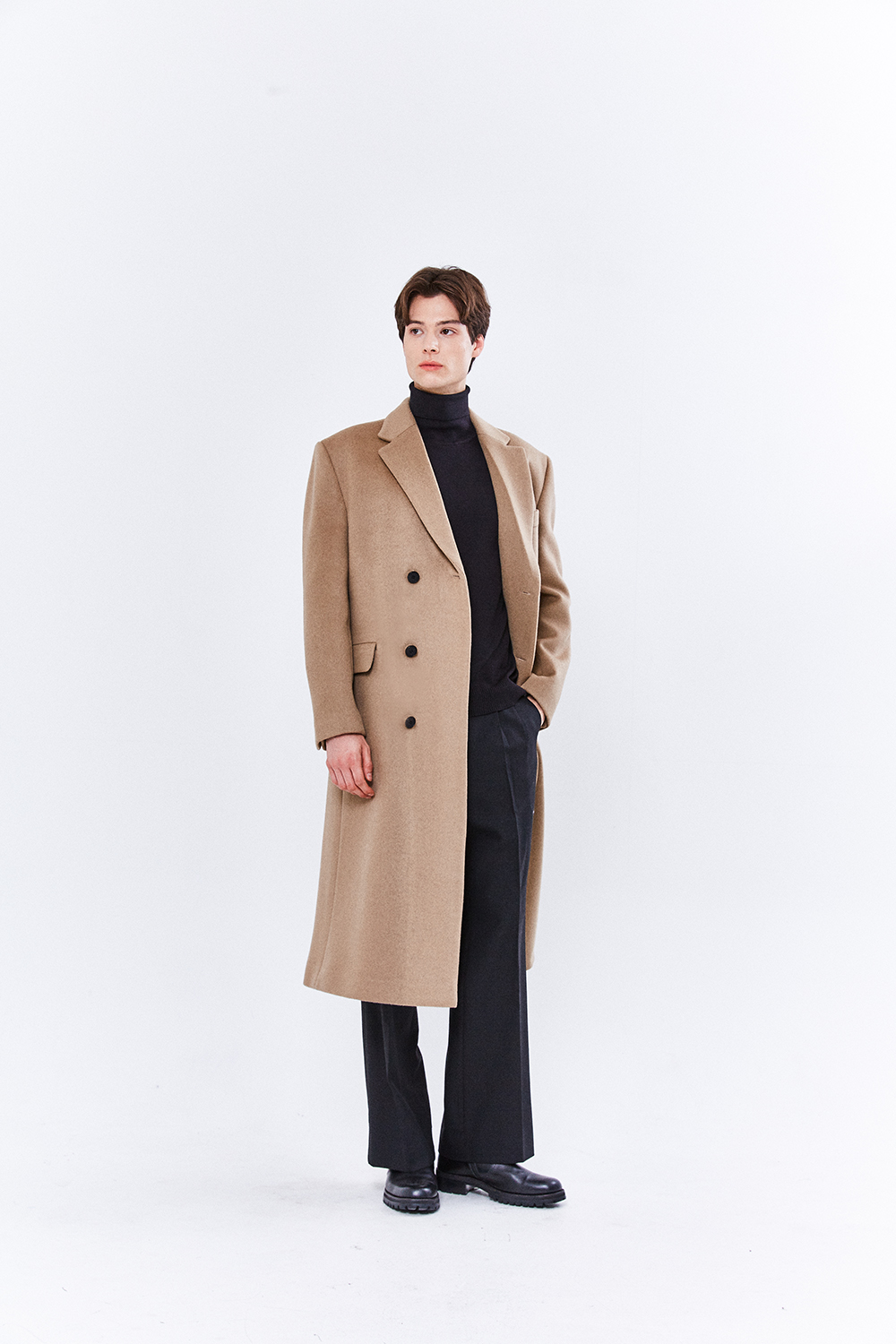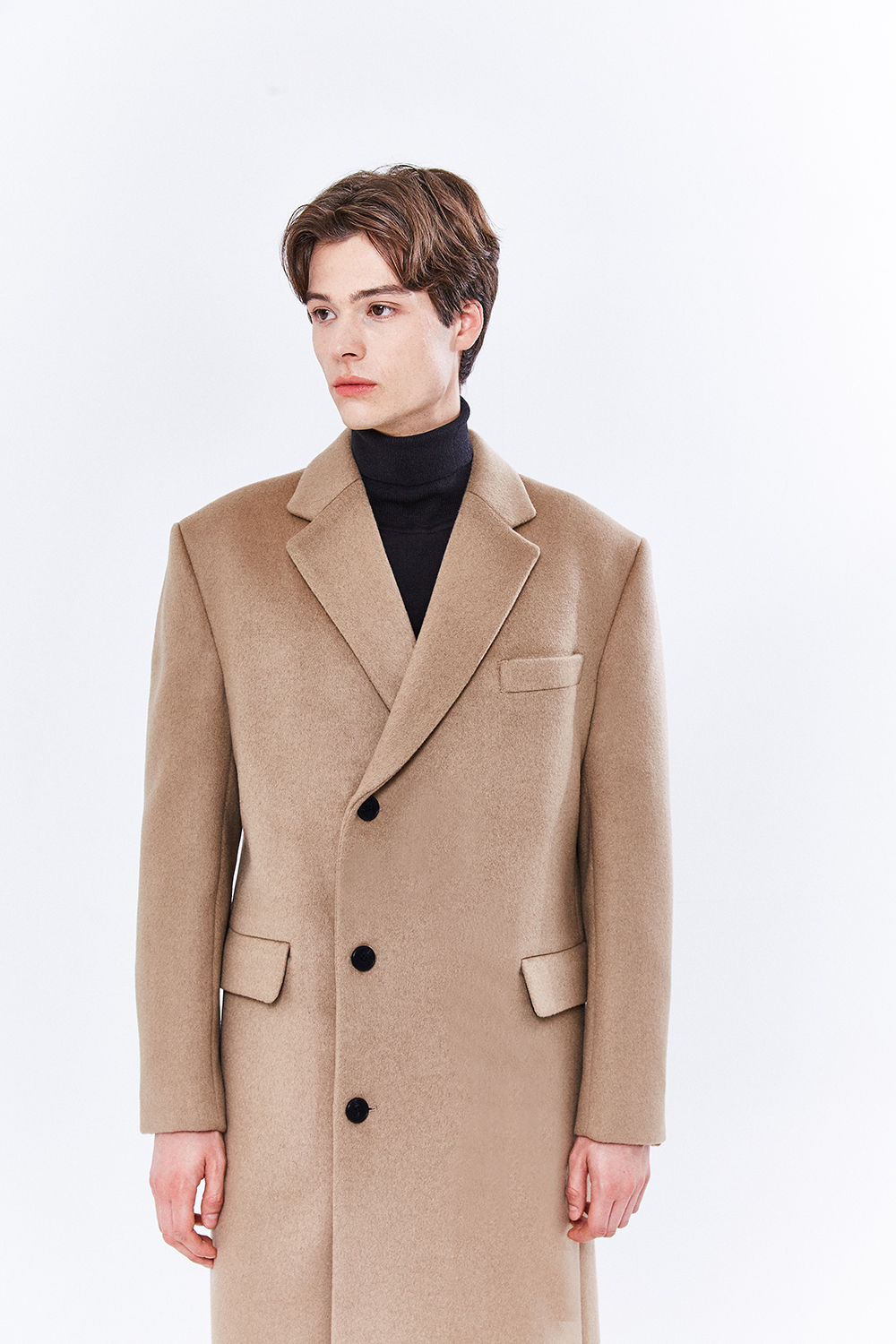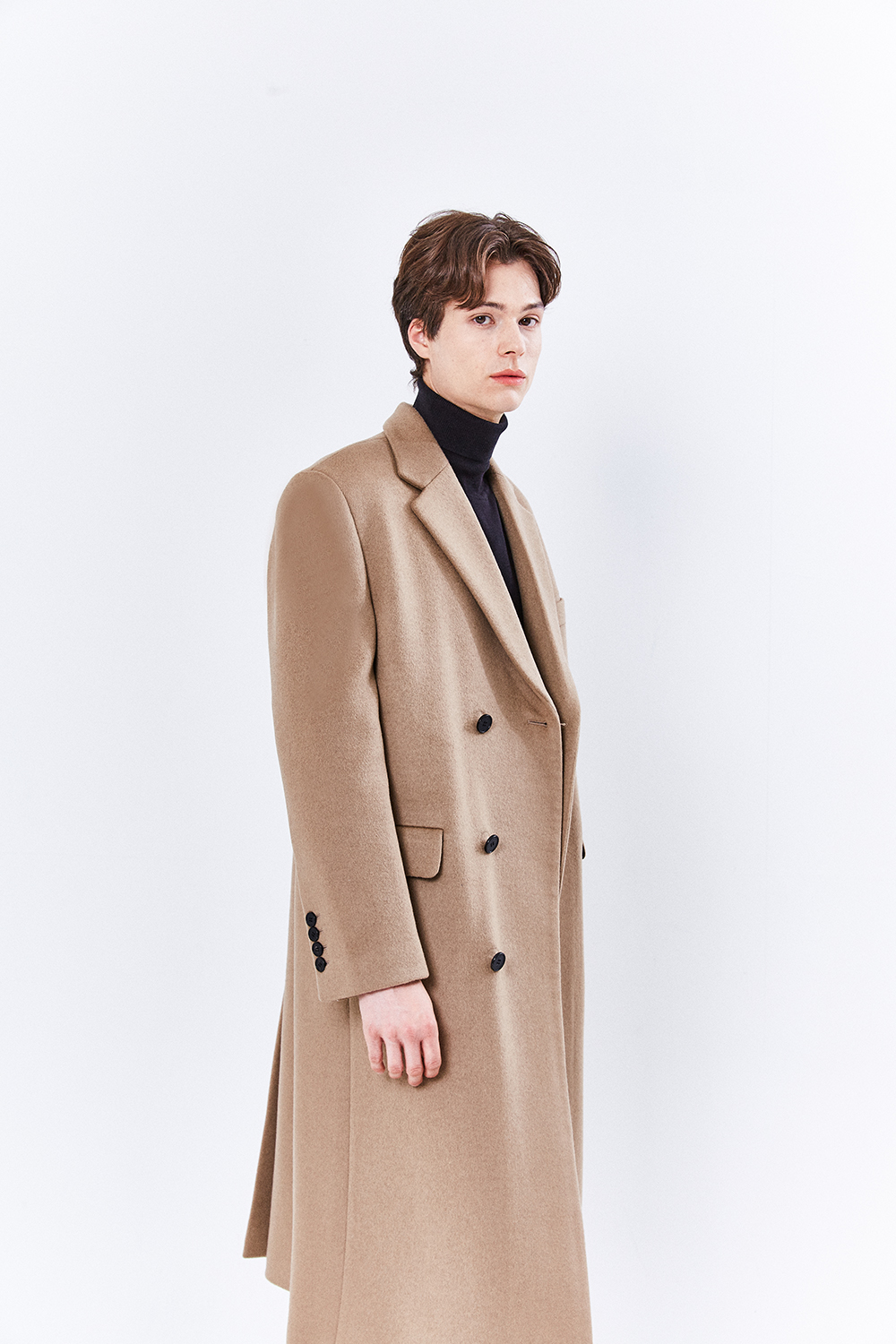 최고급 캐시미어 50% + 울 50% / 색상 BLACK 블랙 / 소뿔단추 100%