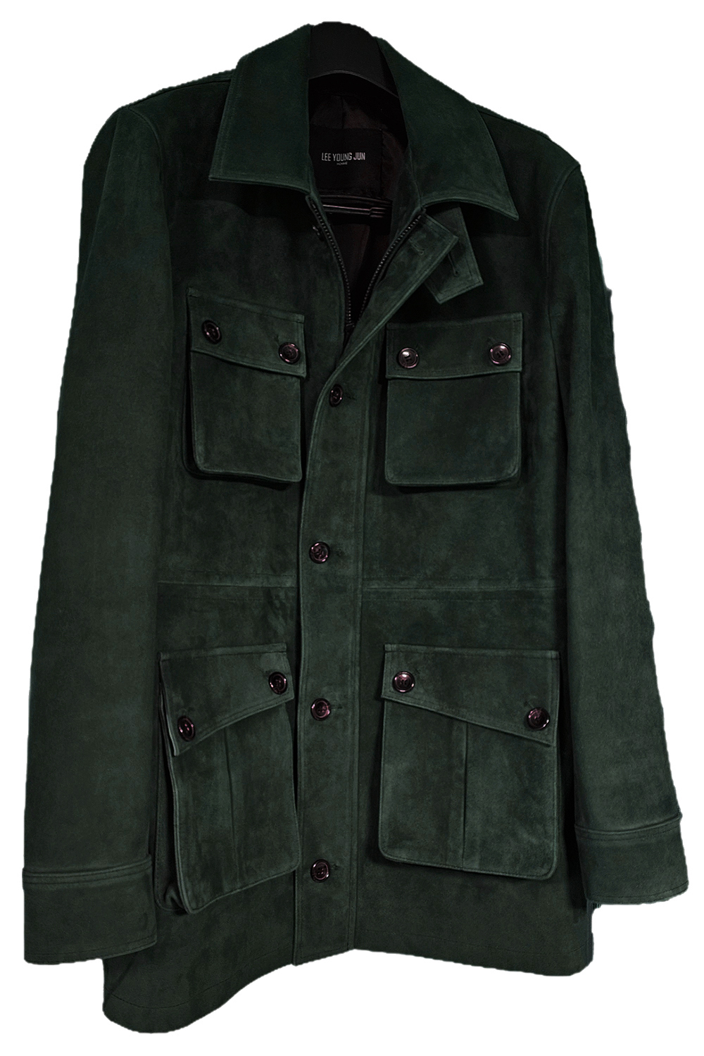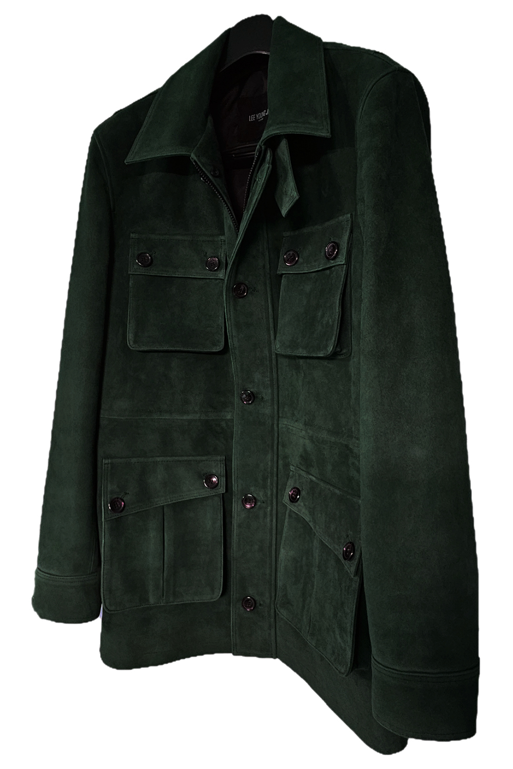 스웨이드 SUEDE 100% / 색상 DEEP-GREEN 딥-그린 / 소뿔단추 100% / JAPAN YKK TWO-WAY ZIPPER 블랙무광 투웨이지퍼 100%