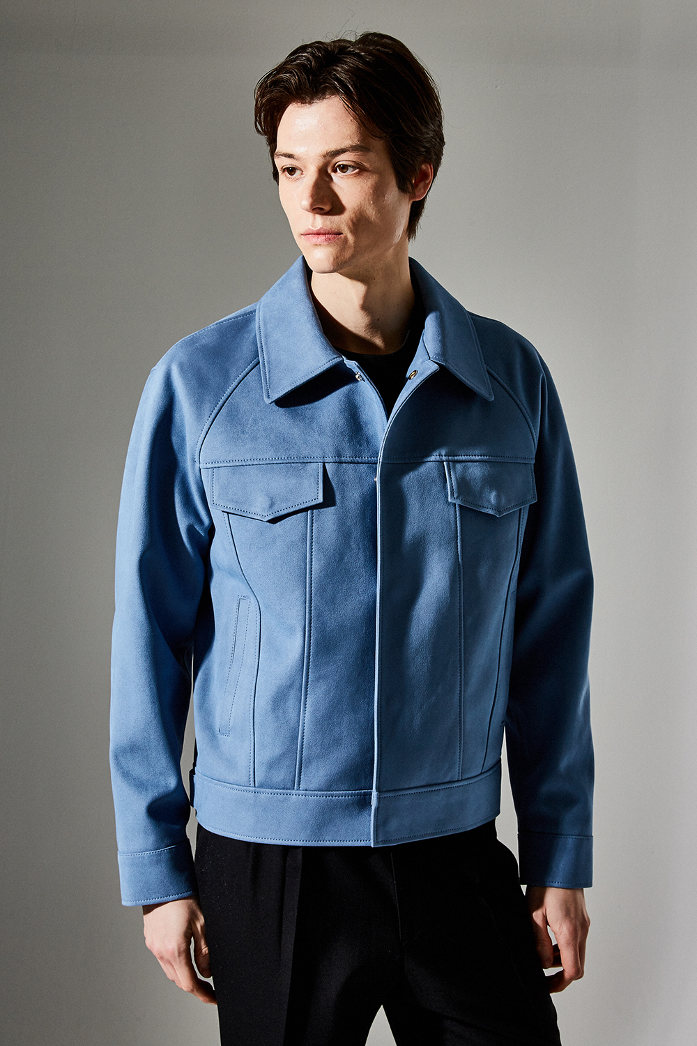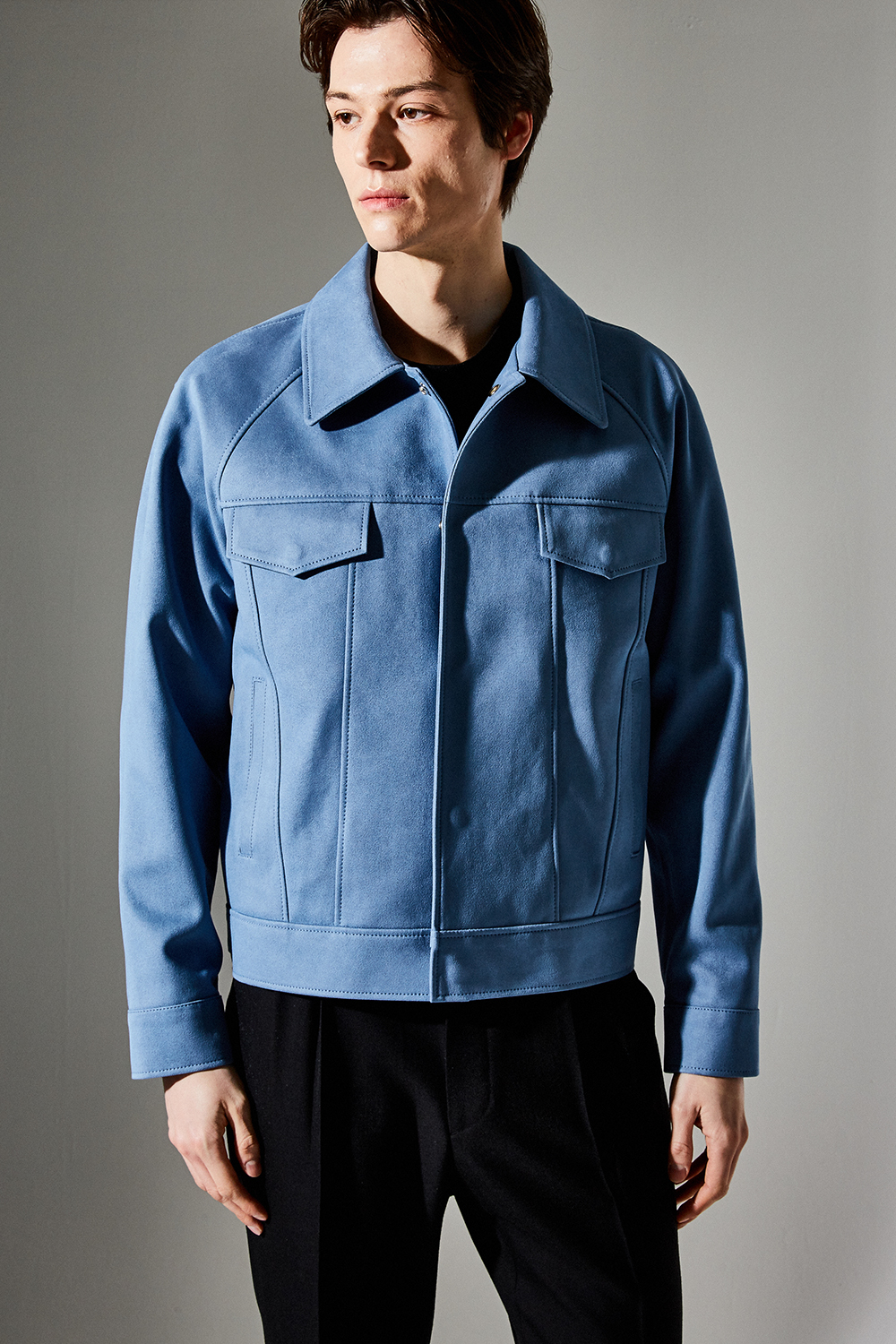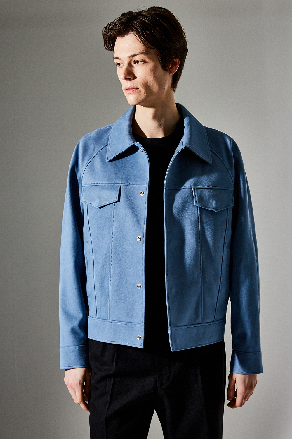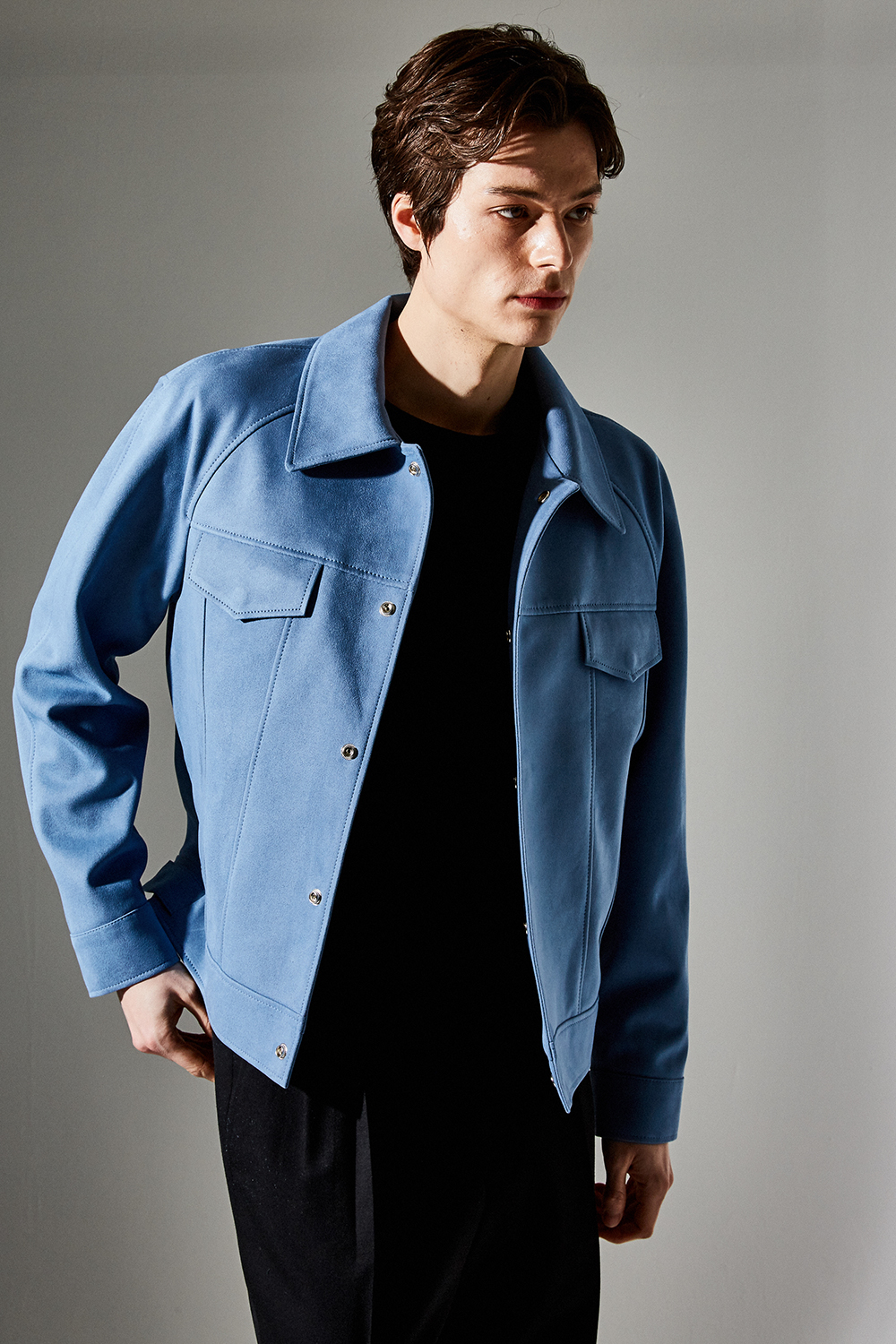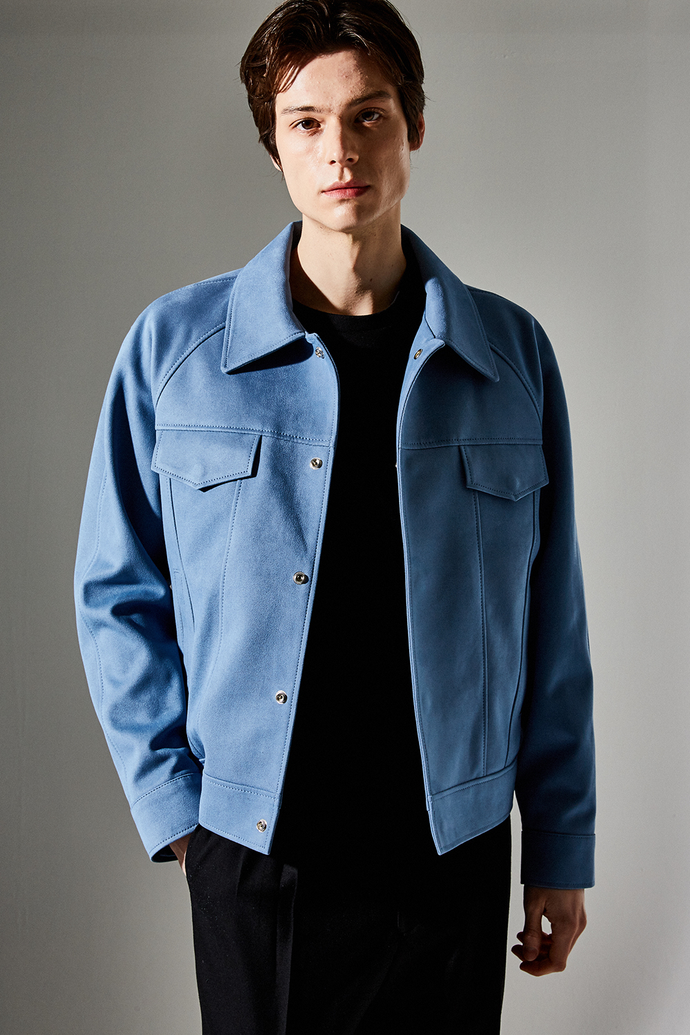 스웨이드 SUEDE / 색상 SKY-BLUE 하늘색 / 스냅 BLACK MATTE SNAP BUTTON