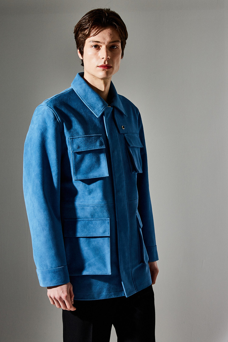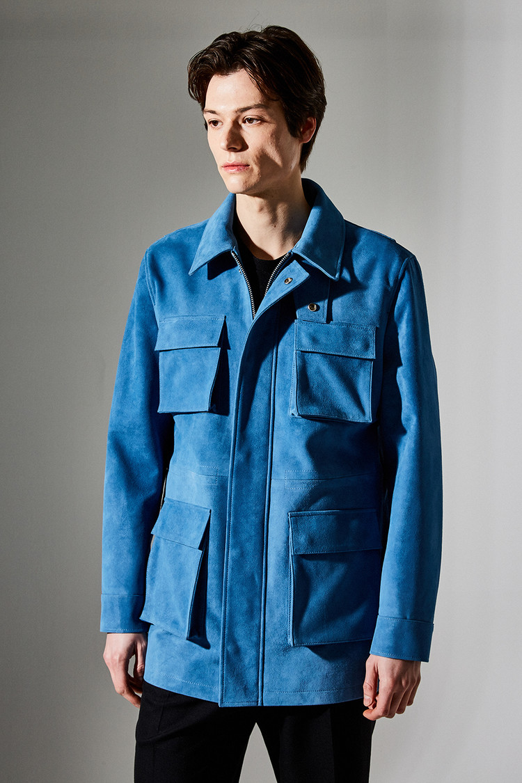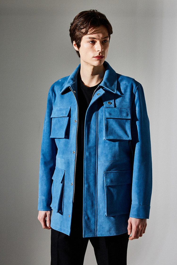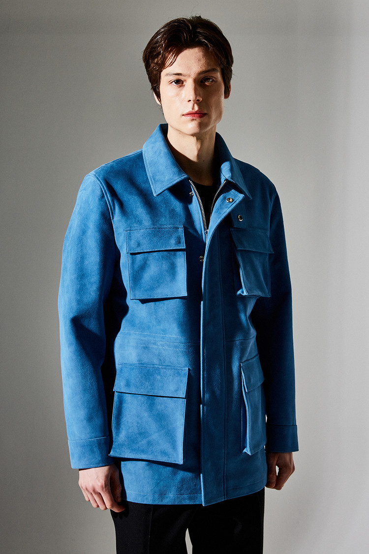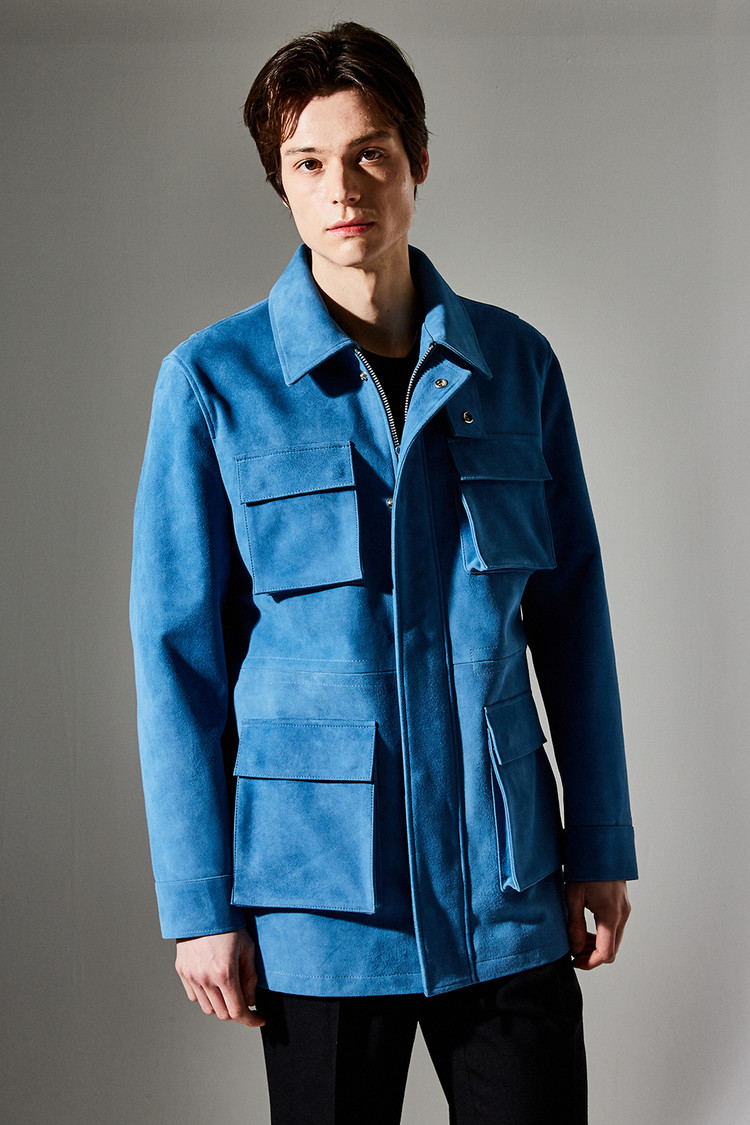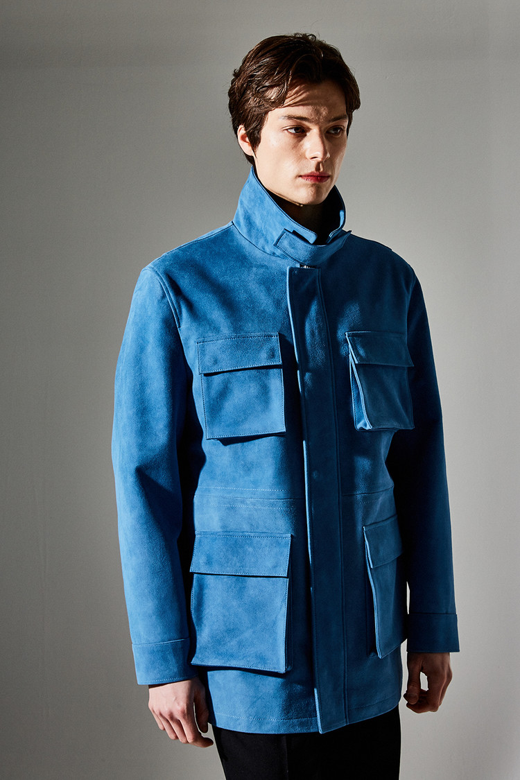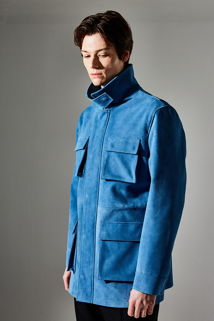 스웨이드 SUEDE 100% / 색상 DEEP-SKYBLUE 딥-하늘색 / 소뿔단추 100% / JAPAN YKK TWO-WAY ZIPPER 실버 투웨이지퍼 100%