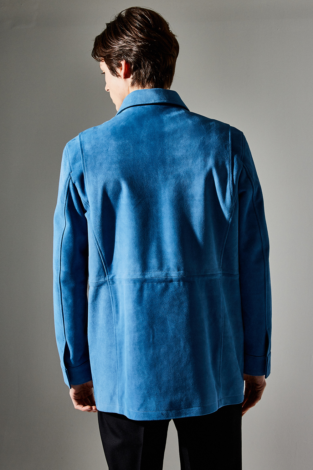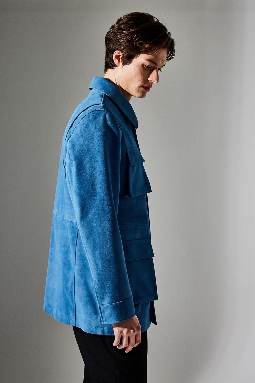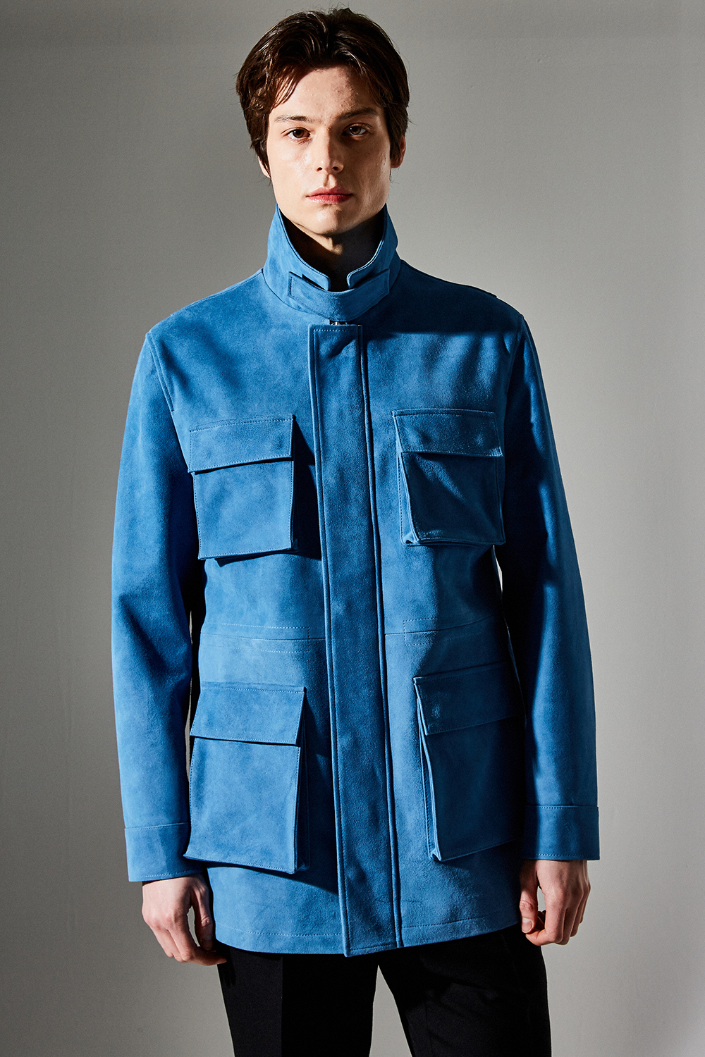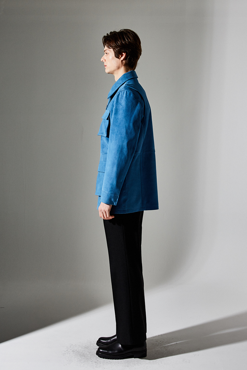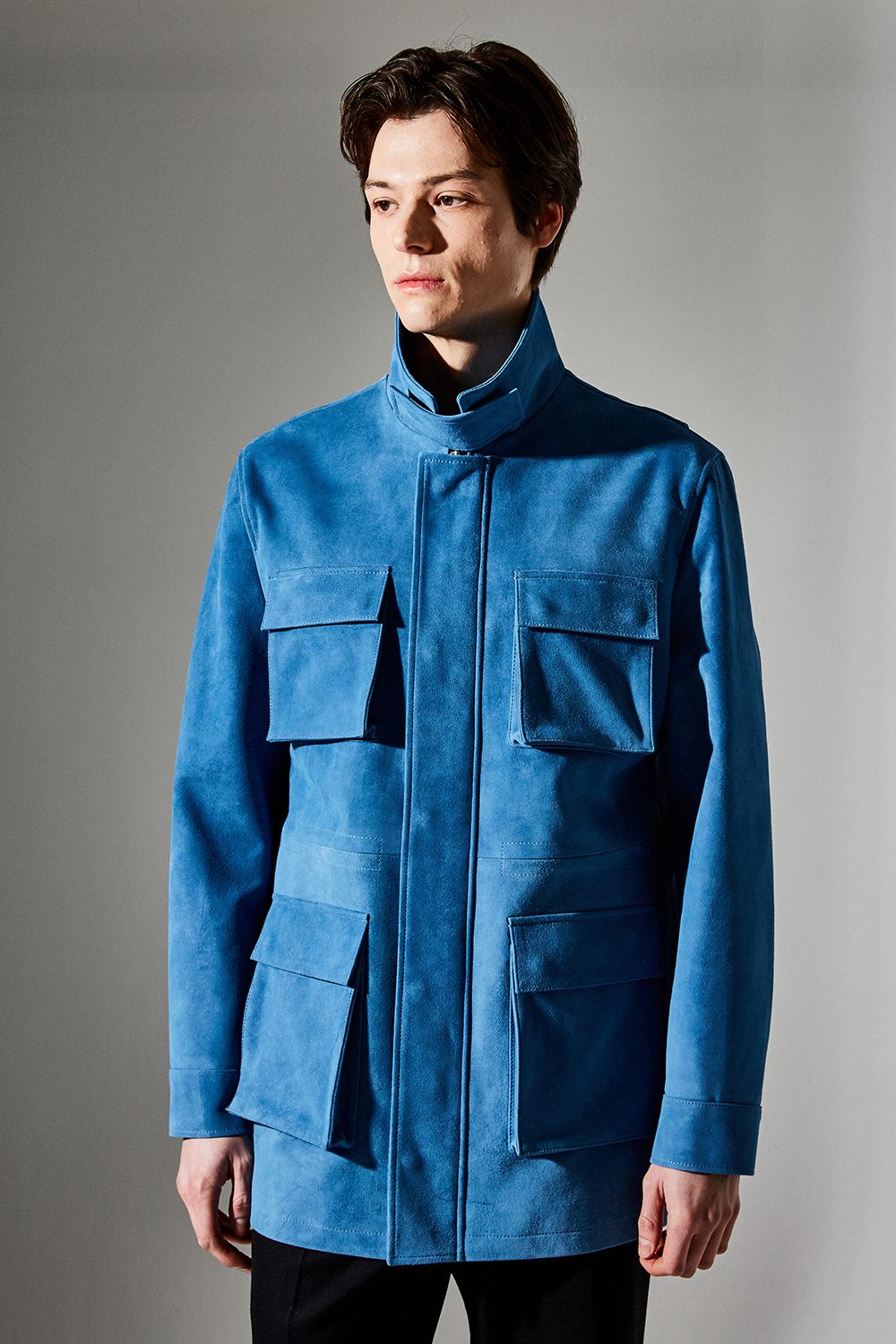 스웨이드 SUEDE 100% / 색상 DEEP-SKYBLUE 딥-하늘색 / 소뿔단추 100% / JAPAN YKK TWO-WAY ZIPPER 실버 투웨이지퍼 100%