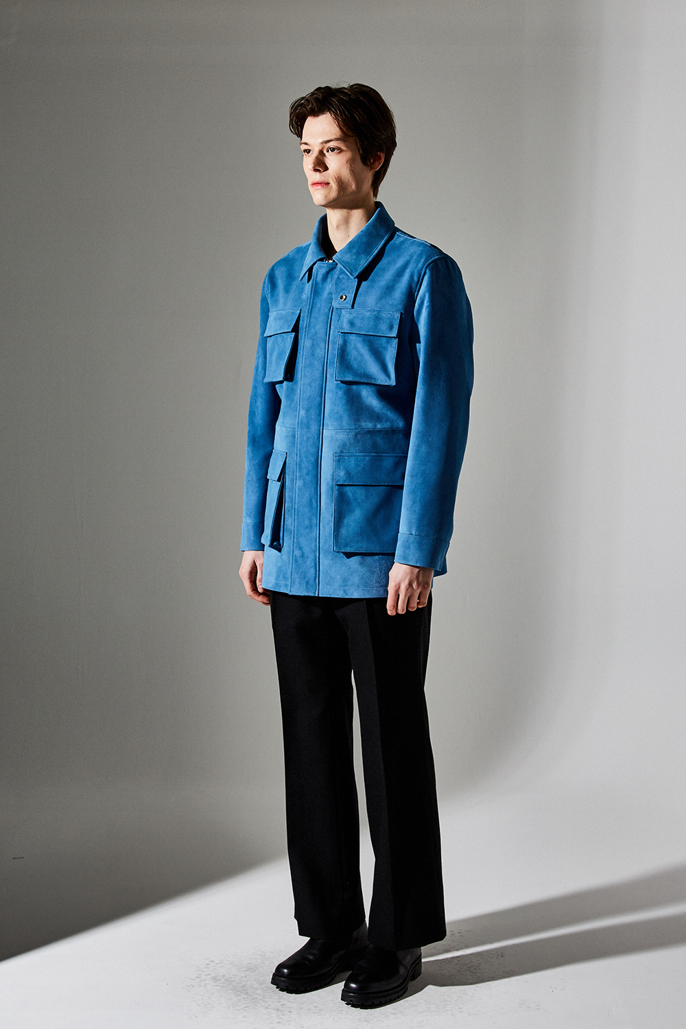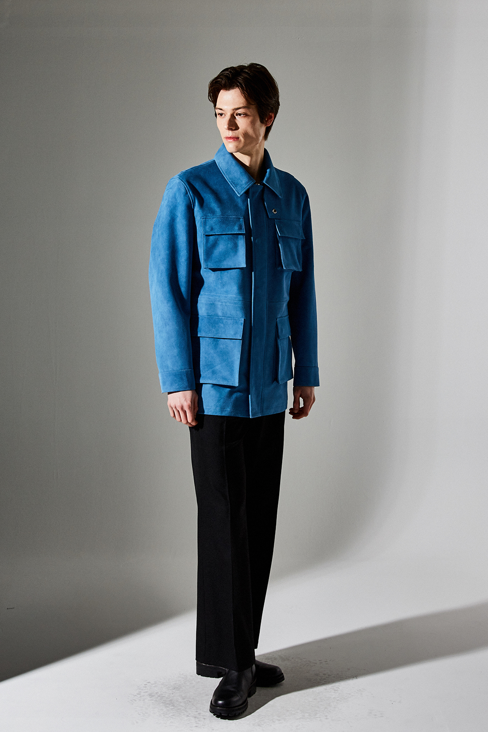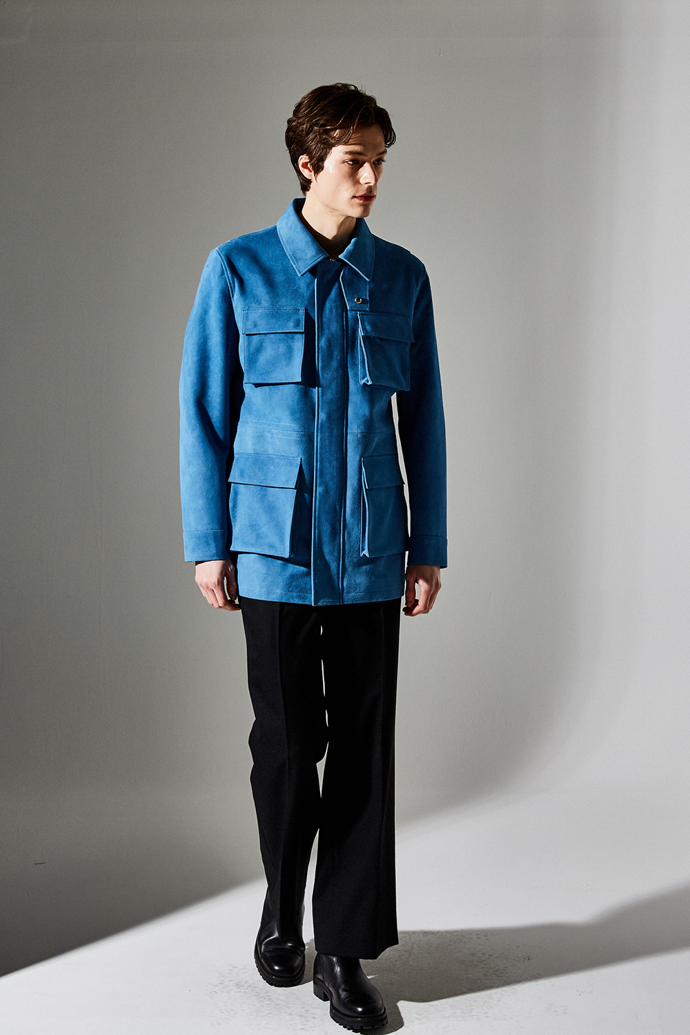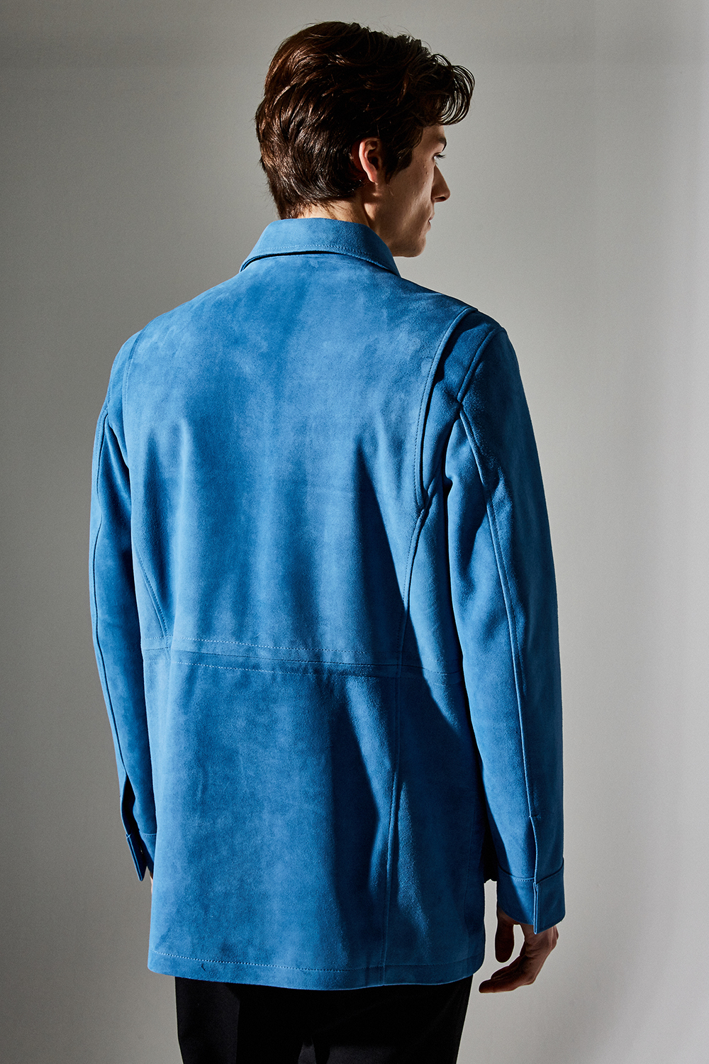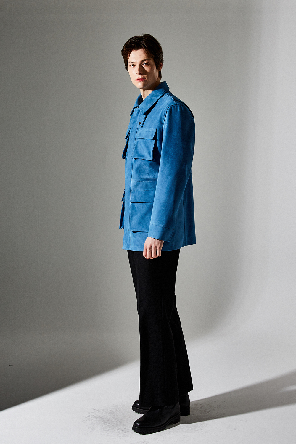 스웨이드 SUEDE 100% / 색상 DEEP-SKYBLUE 딥-하늘색 / 소뿔단추 100% / JAPAN YKK TWO-WAY ZIPPER 실버 투웨이지퍼 100%
