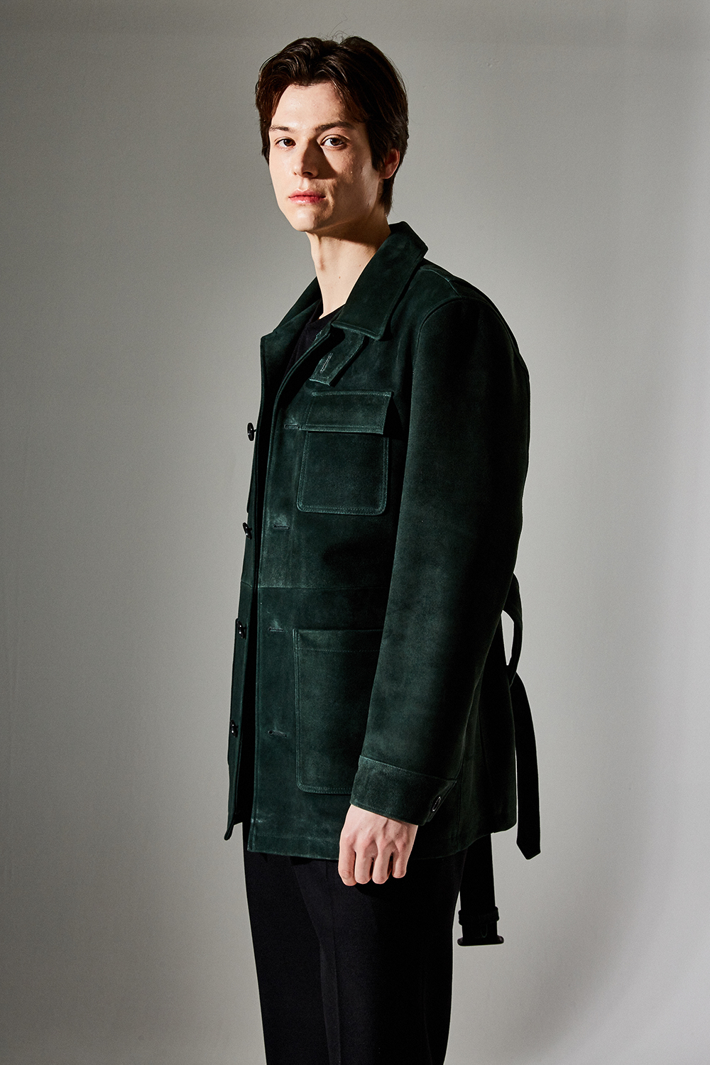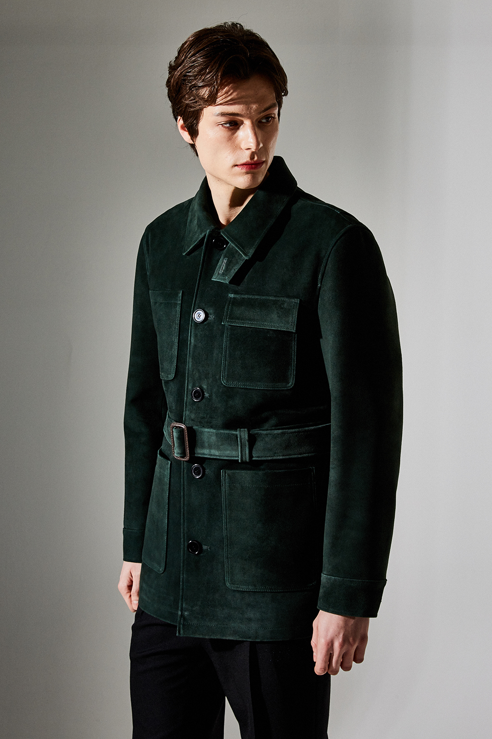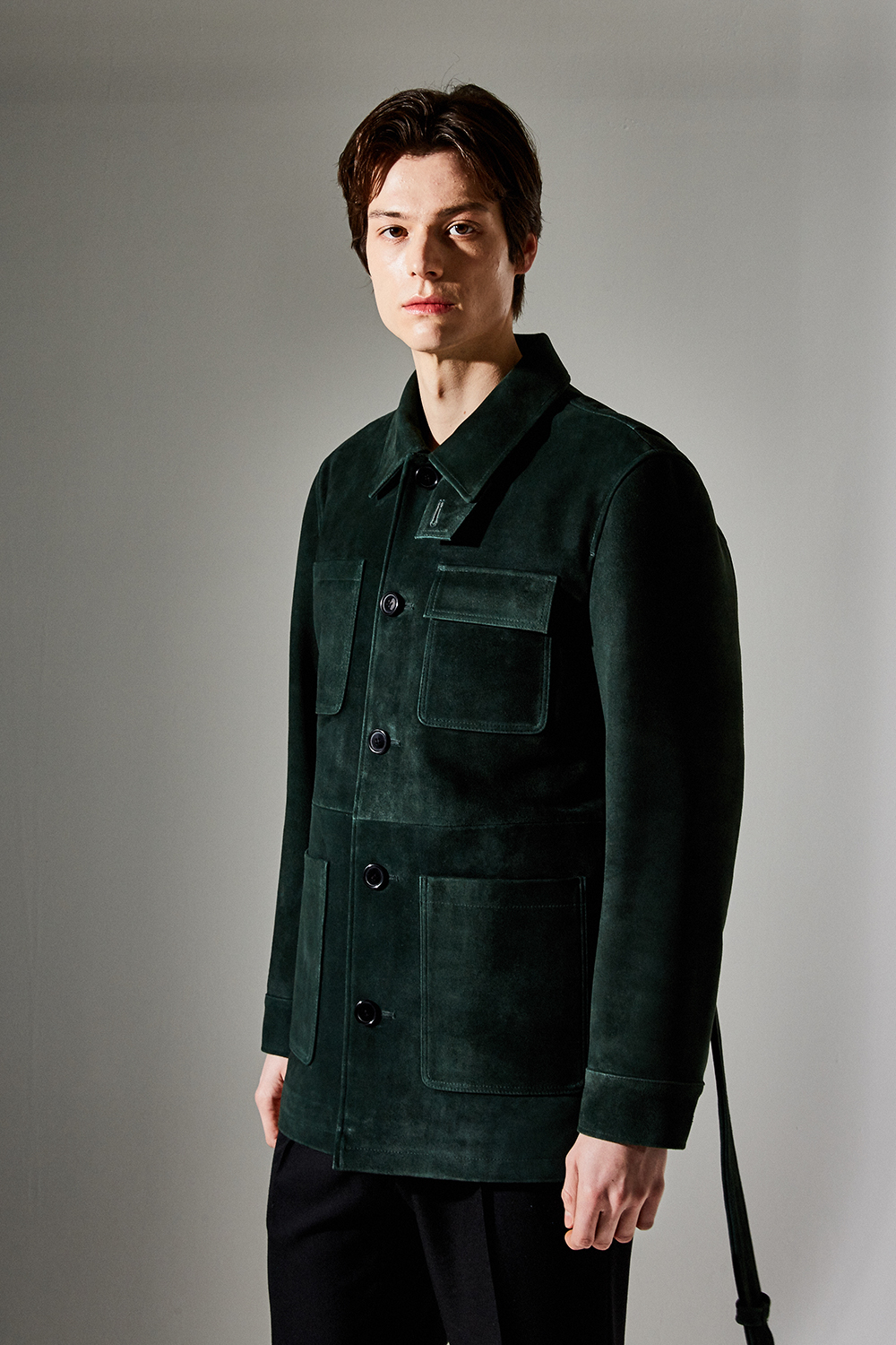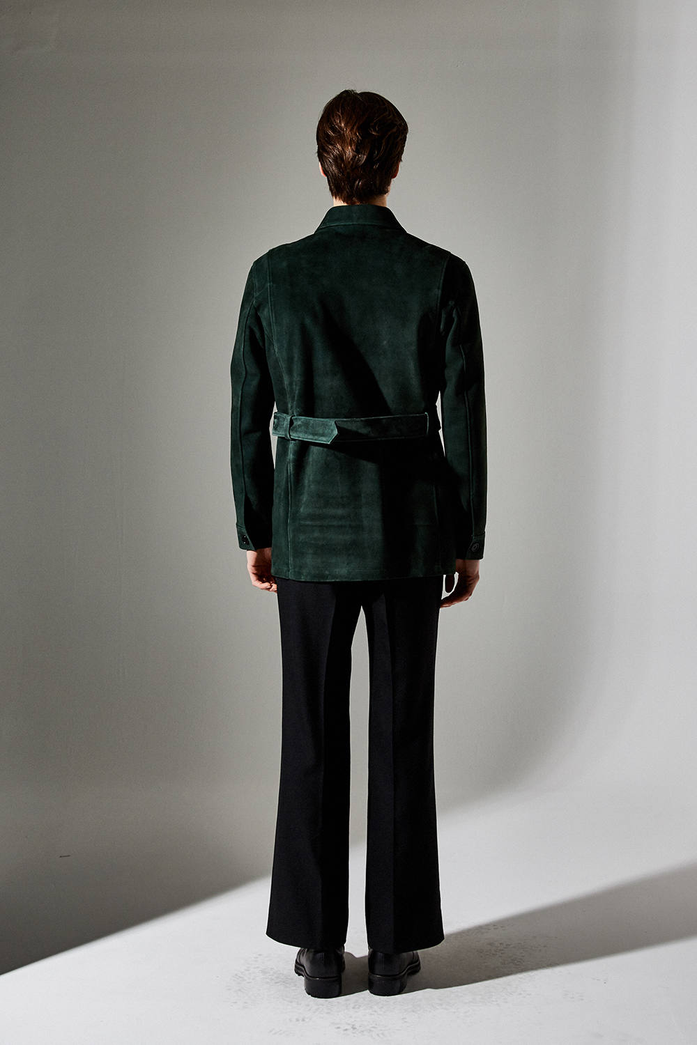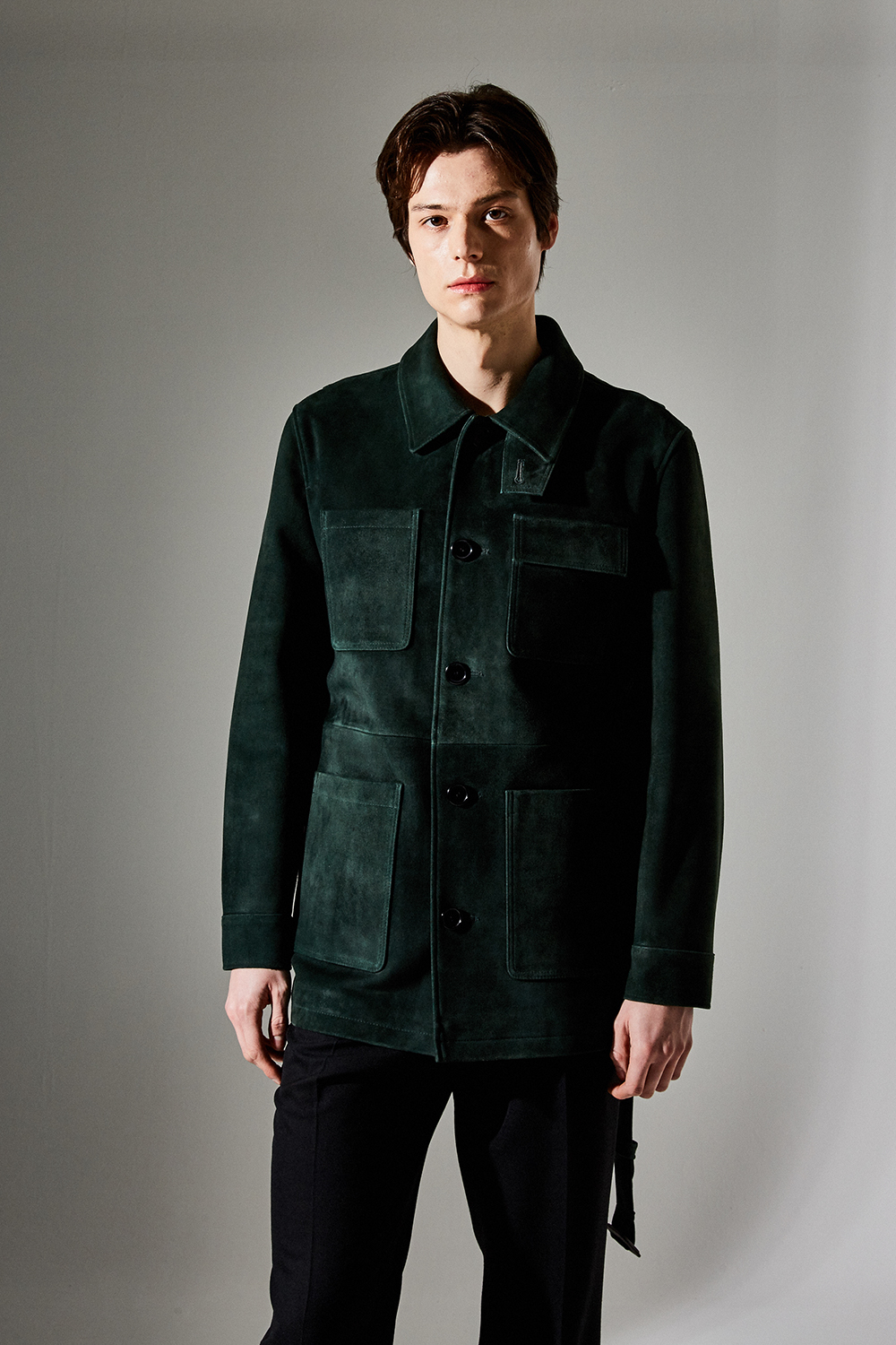 스웨이드 SUEDE 100% / 색상 DEEP-GREEN 딥-그린 / 소뿔단추 100% / JAPAN YKK TWO-WAY ZIPPER 실버 투웨이지퍼 100%