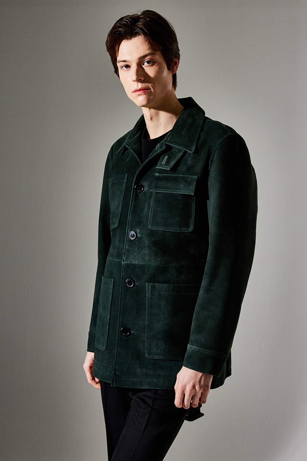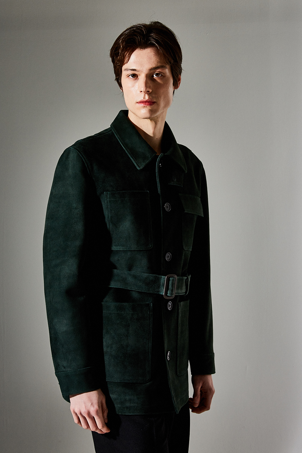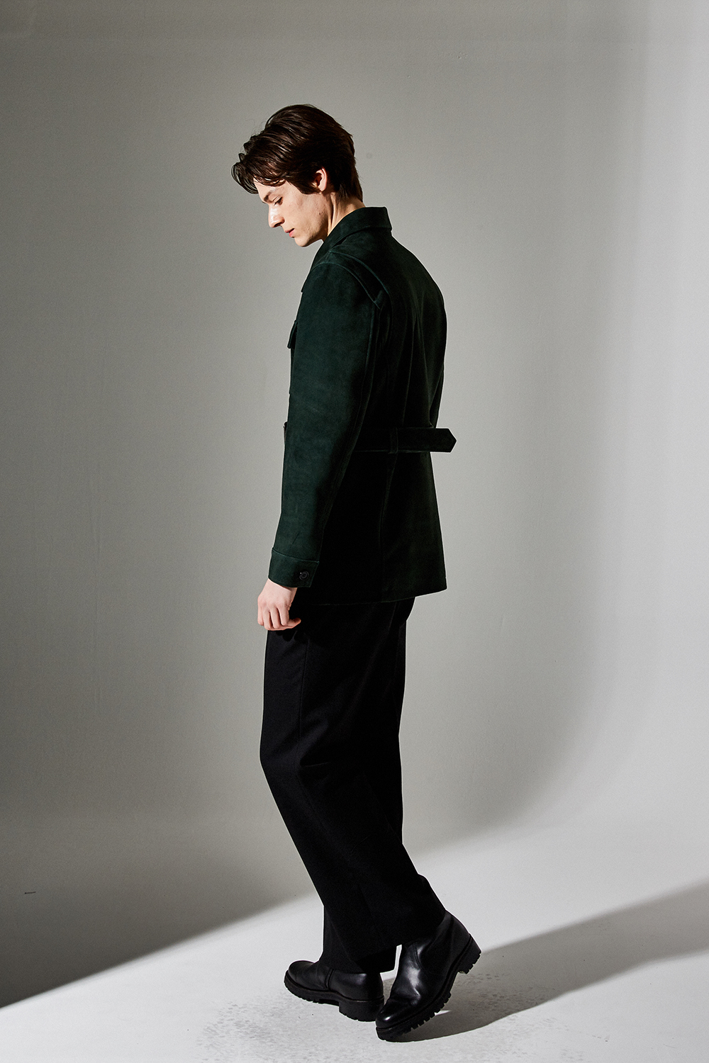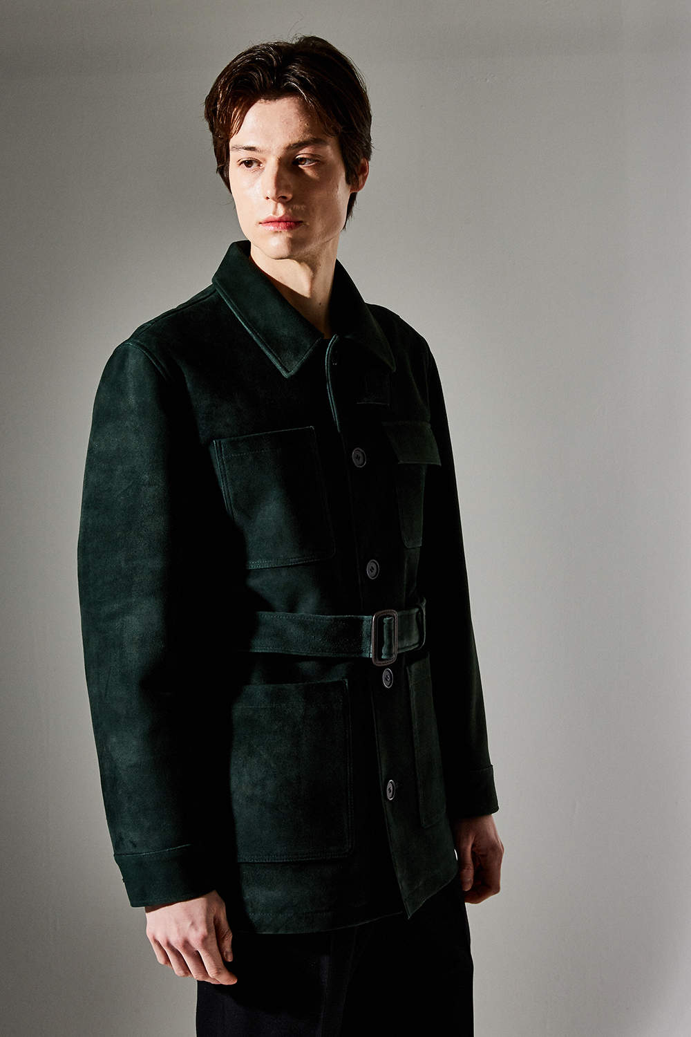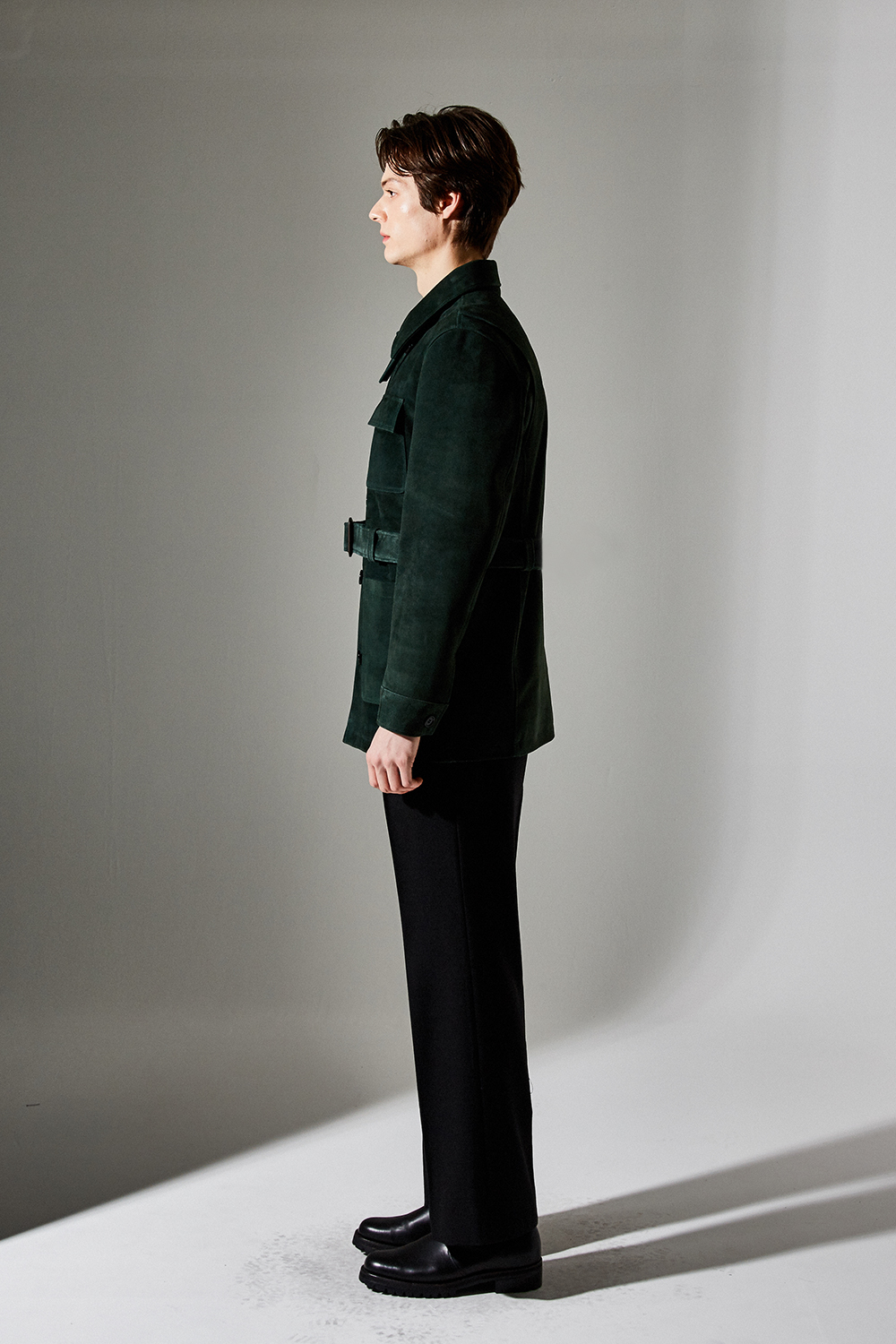 스웨이드 SUEDE 100% / 색상 DEEP-GREEN 딥-그린 / 소뿔단추 100% / JAPAN YKK TWO-WAY ZIPPER 실버 투웨이지퍼 100%