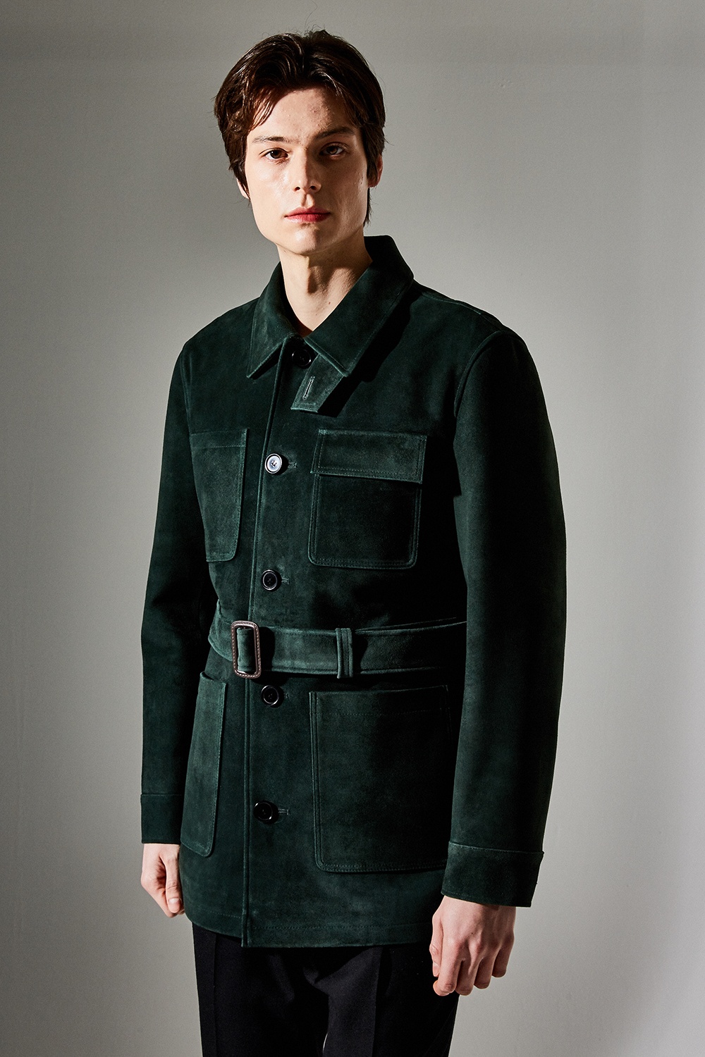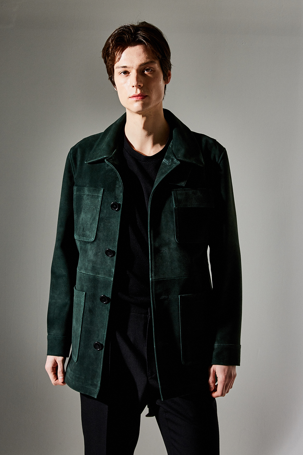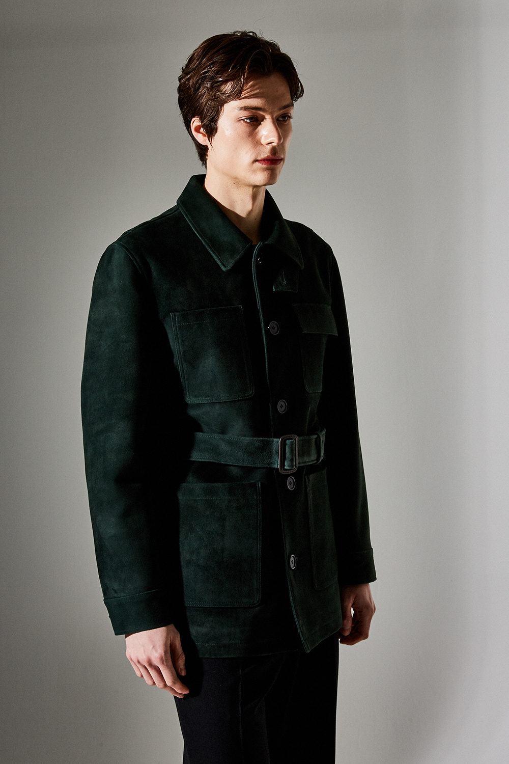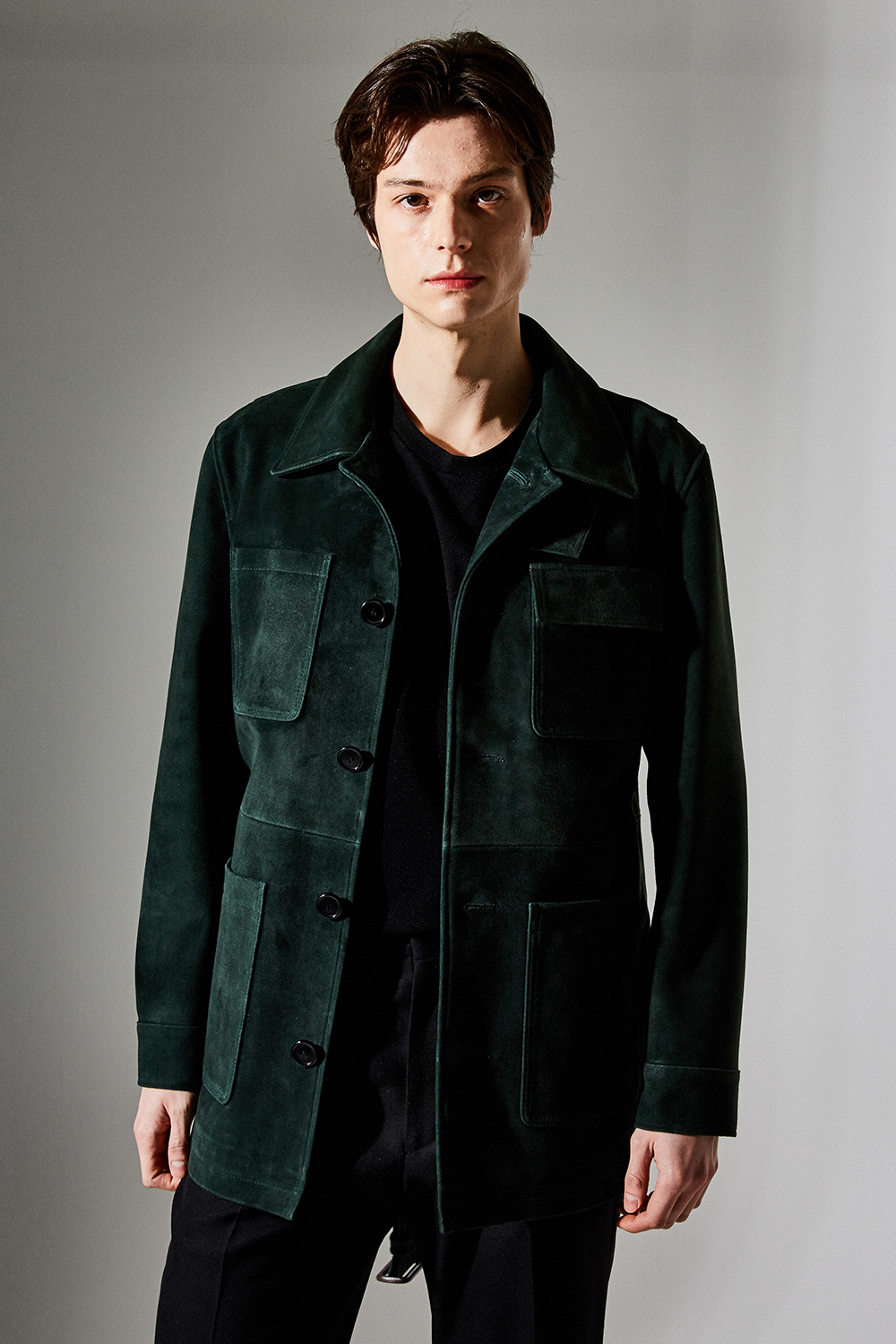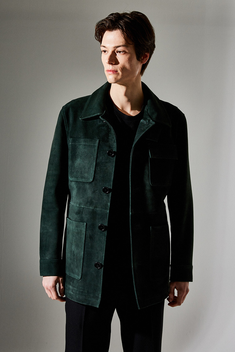 스웨이드 SUEDE 100% / 색상 DEEP-GREEN 딥-그린 / 소뿔단추 100% / JAPAN YKK TWO-WAY ZIPPER 실버 투웨이지퍼 100%