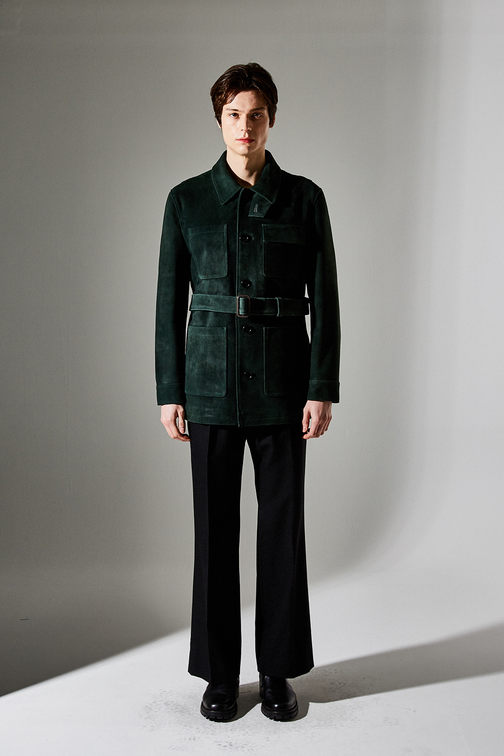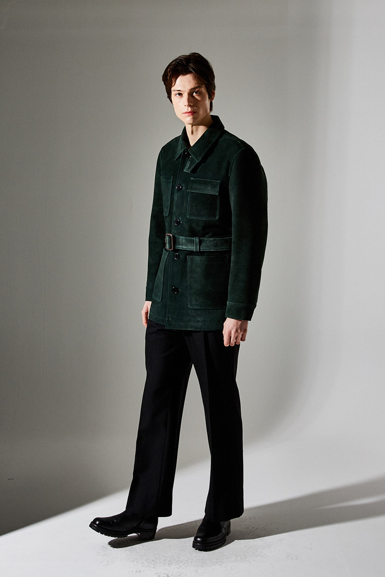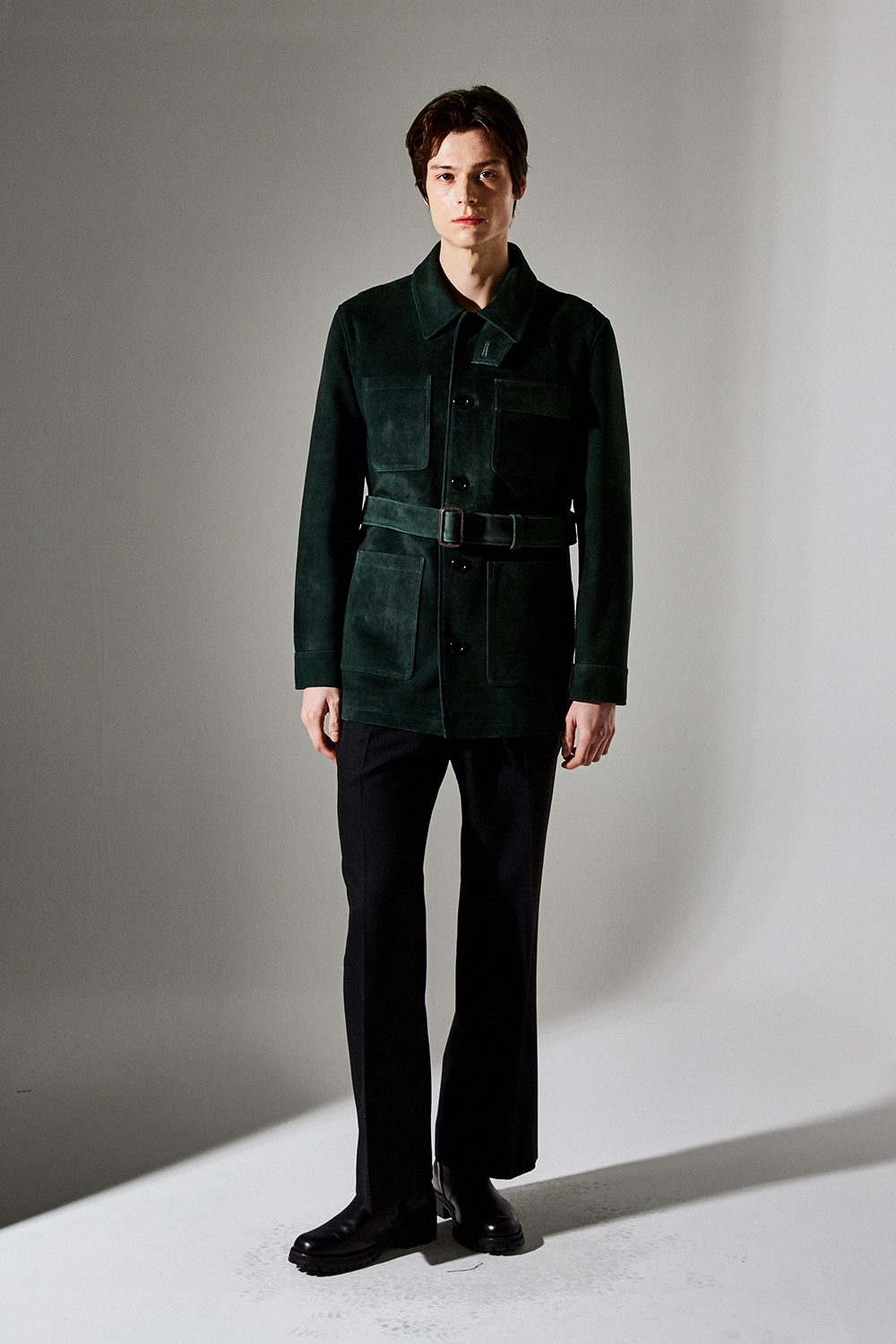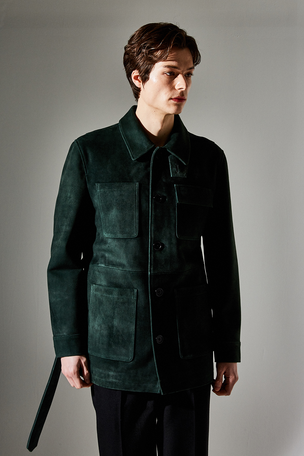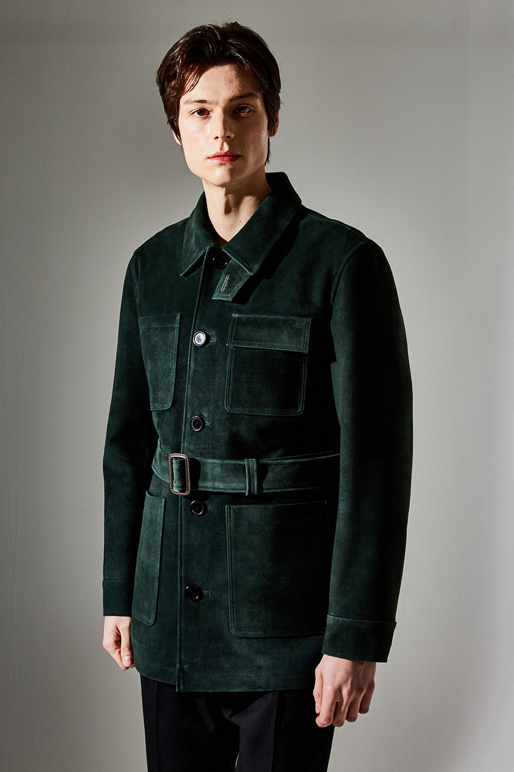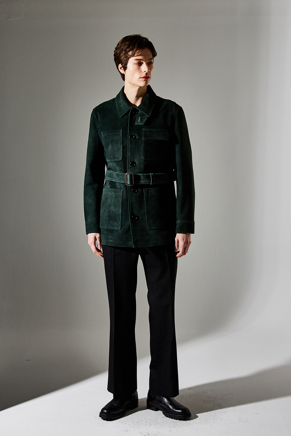 스웨이드 SUEDE 100% / 색상 DEEP-GREEN 딥-그린 / 소뿔단추 100% / JAPAN YKK TWO-WAY ZIPPER 실버 투웨이지퍼 100%