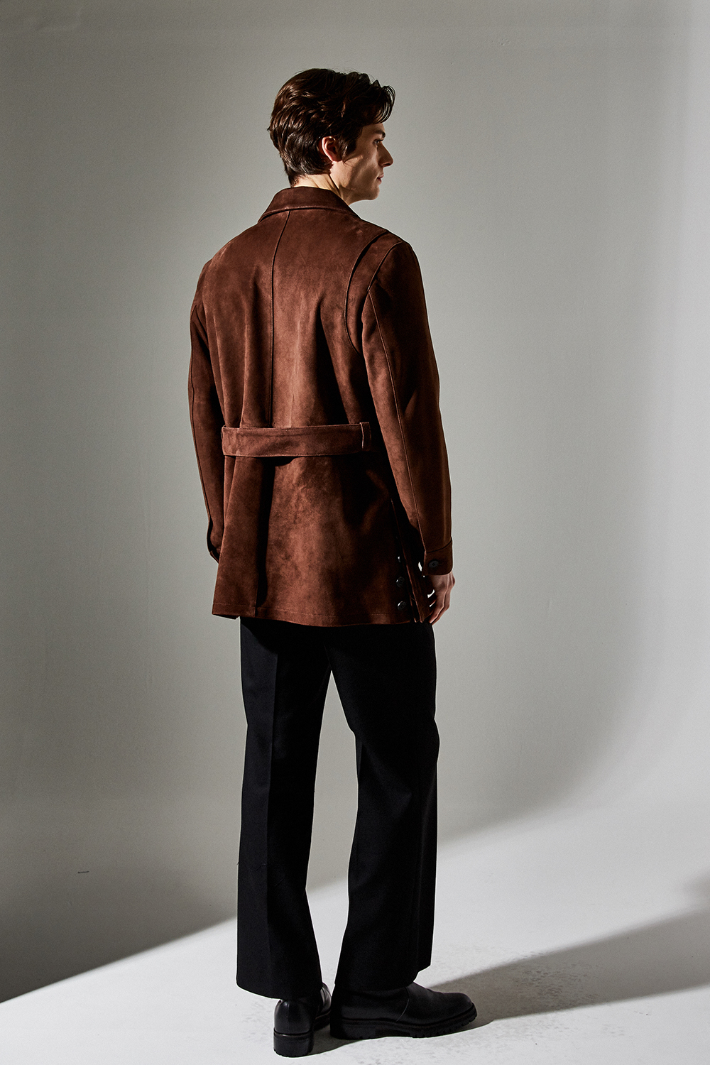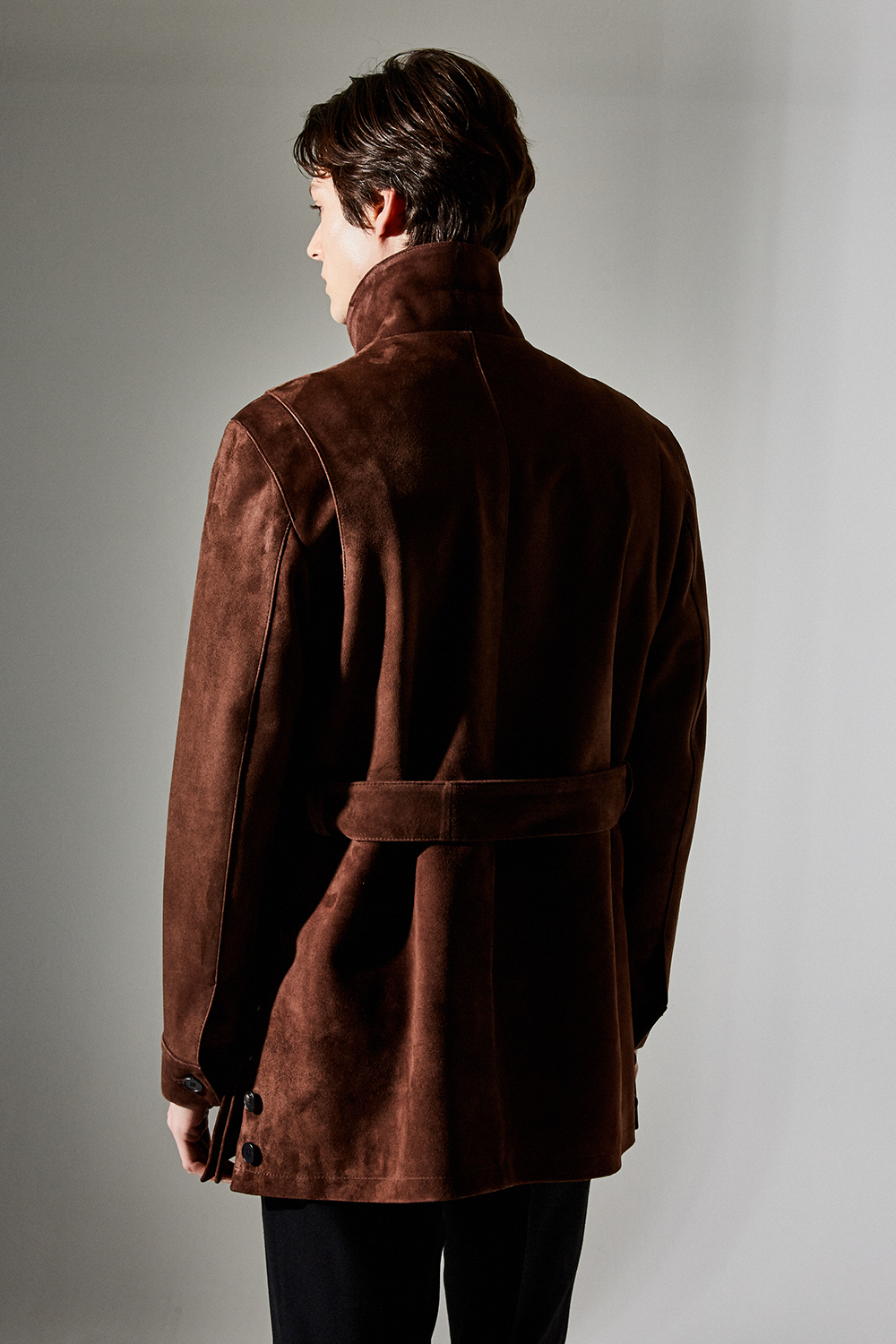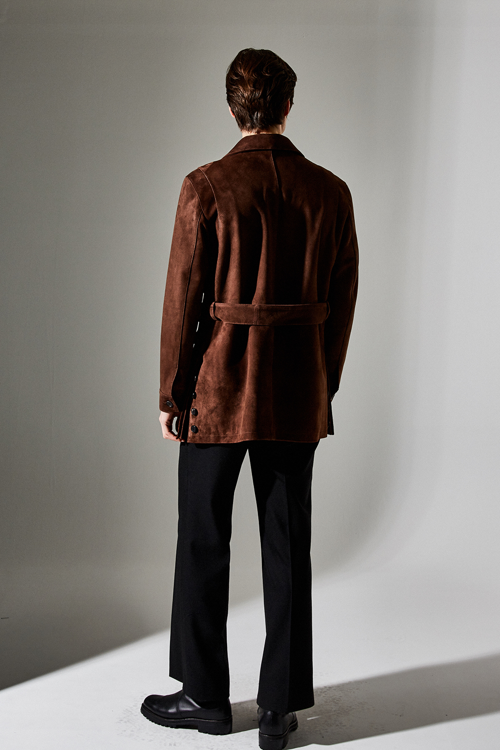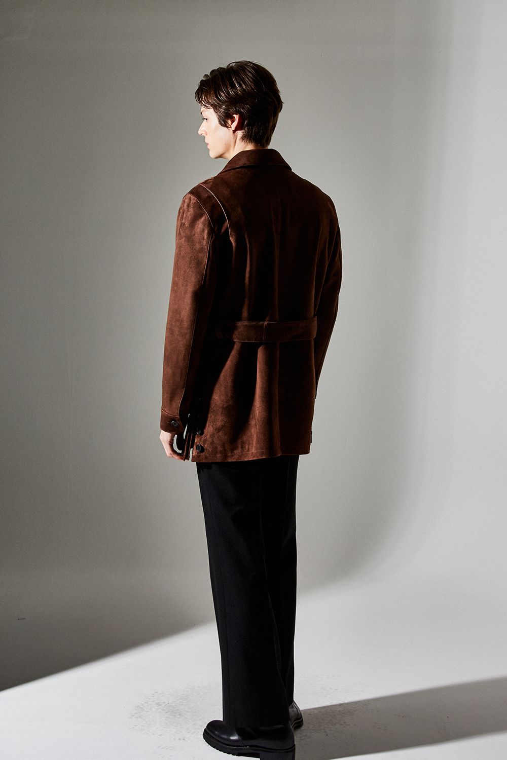 (최상급 스웨이드 100% 양가죽 스웨이드로 결이 매우 고운 터치감과 구김이 덜가며 몸에 감기듯한 자연스러운 착용감과 두께감이 있어 내구성이 좋은 럭셔리 최고급 리얼 스웨이드 소재 입니다.)
