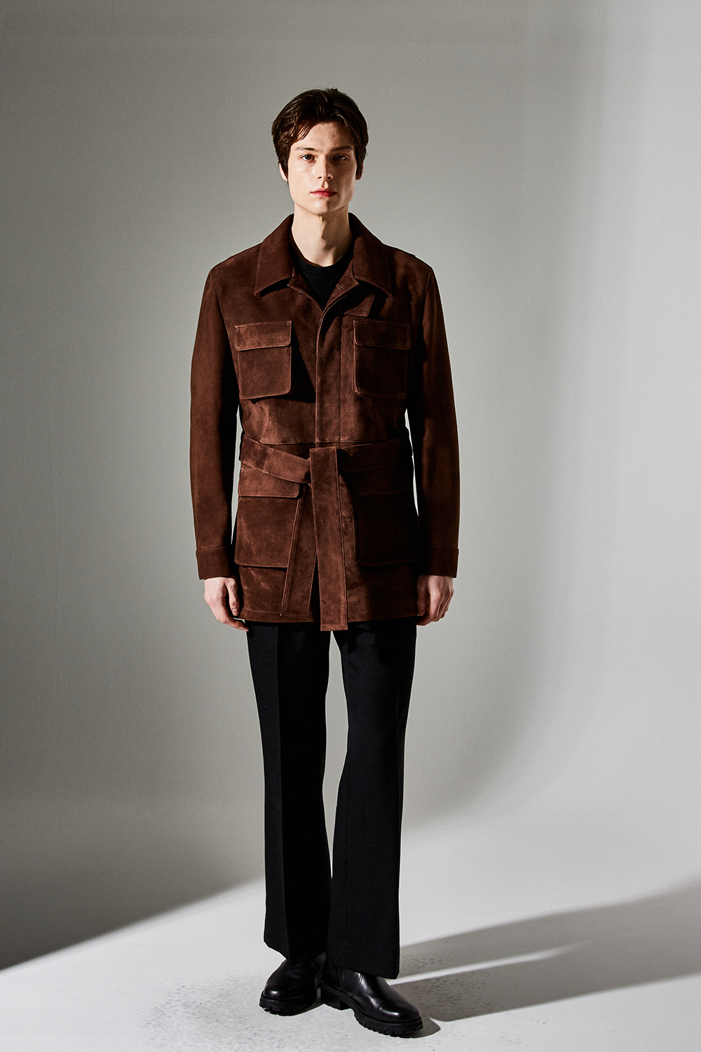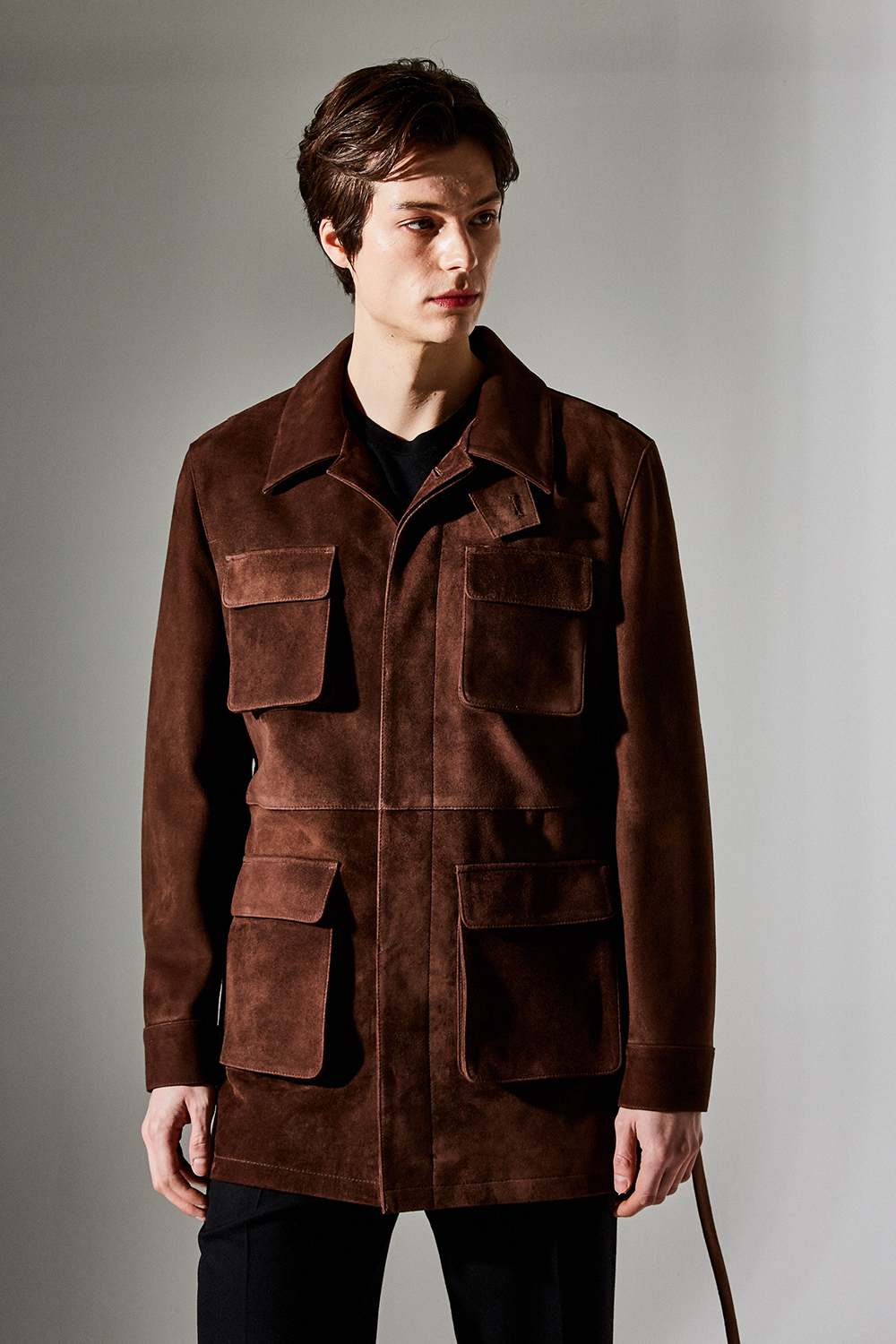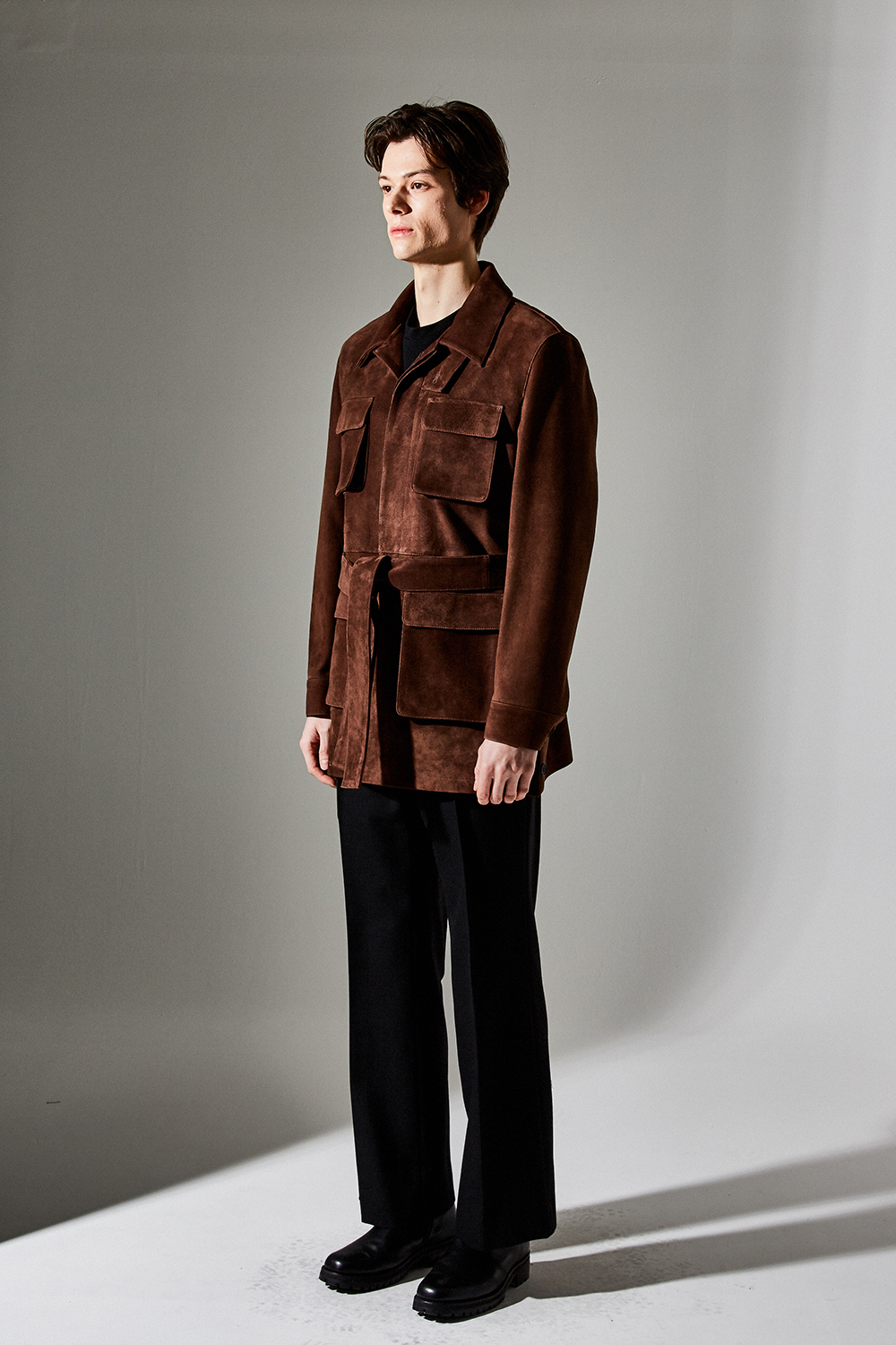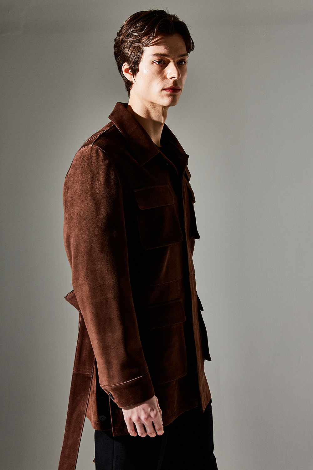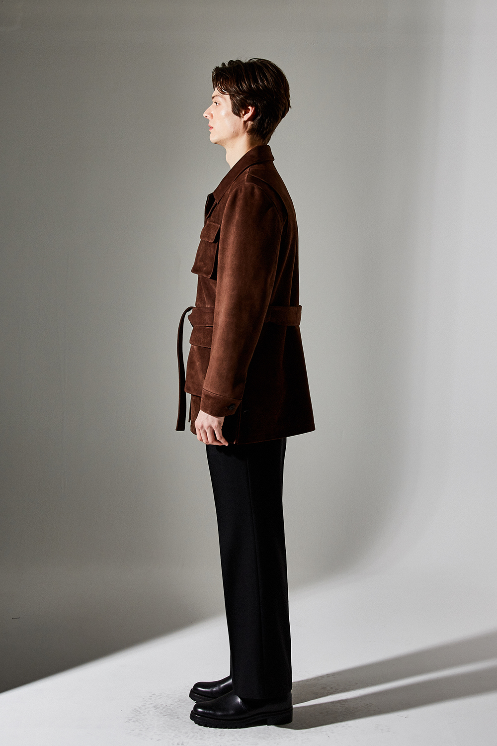 (최상급 스웨이드 100% 양가죽 스웨이드로 결이 매우 고운 터치감과 구김이 덜가며 몸에 감기듯한 자연스러운 착용감과 두께감이 있어 내구성이 좋은 럭셔리 최고급 리얼 스웨이드 소재 입니다.)
