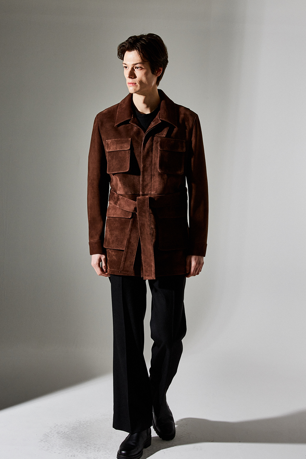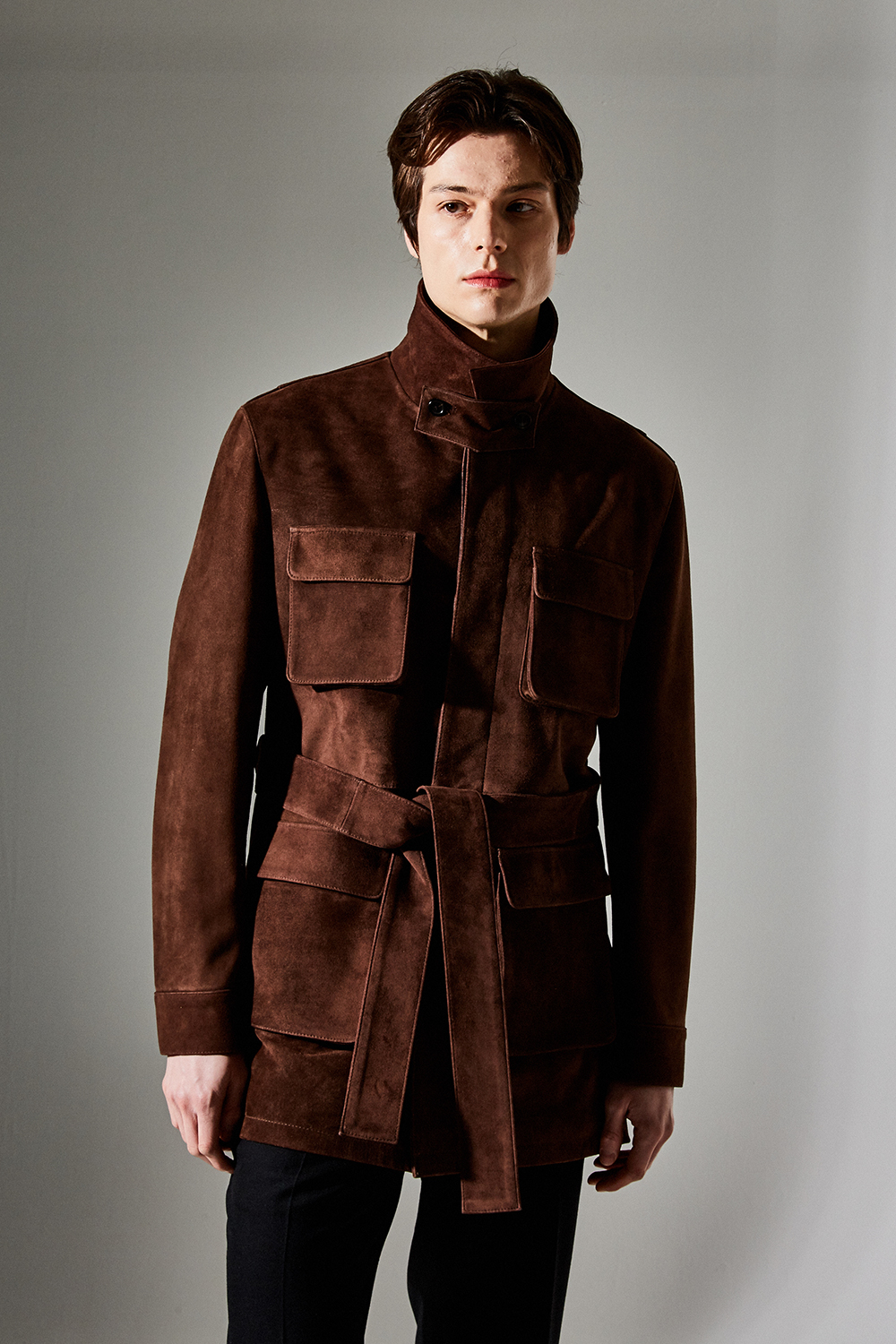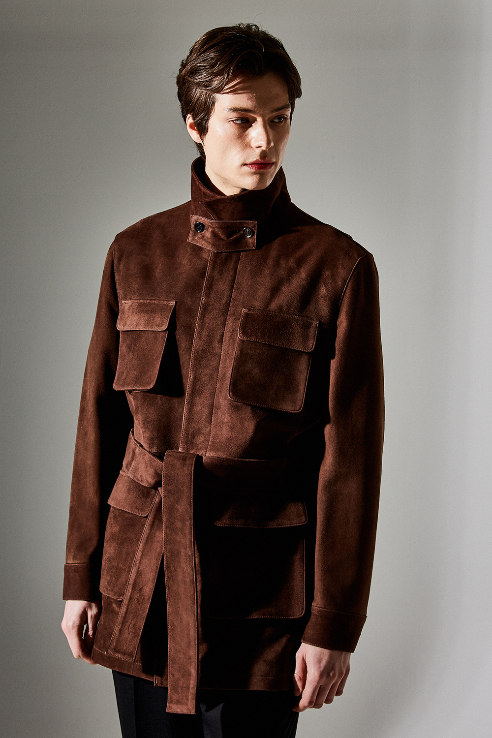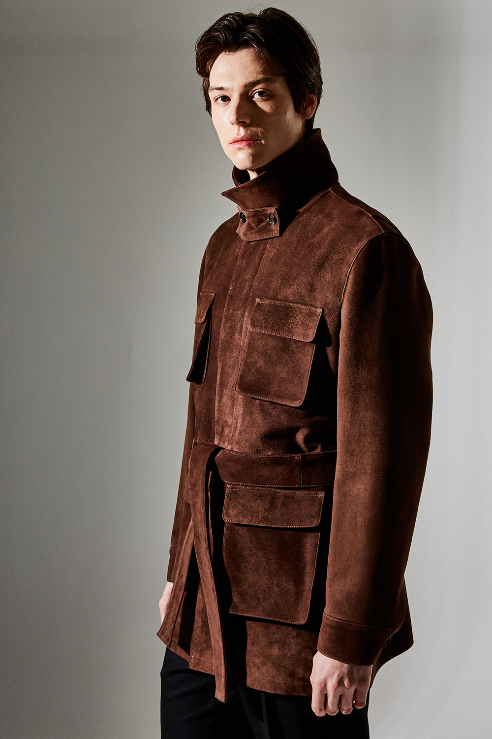 (최상급 스웨이드 100% 양가죽 스웨이드로 결이 매우 고운 터치감과 구김이 덜가며 몸에 감기듯한 자연스러운 착용감과 두께감이 있어 내구성이 좋은 럭셔리 최고급 리얼 스웨이드 소재 입니다.)