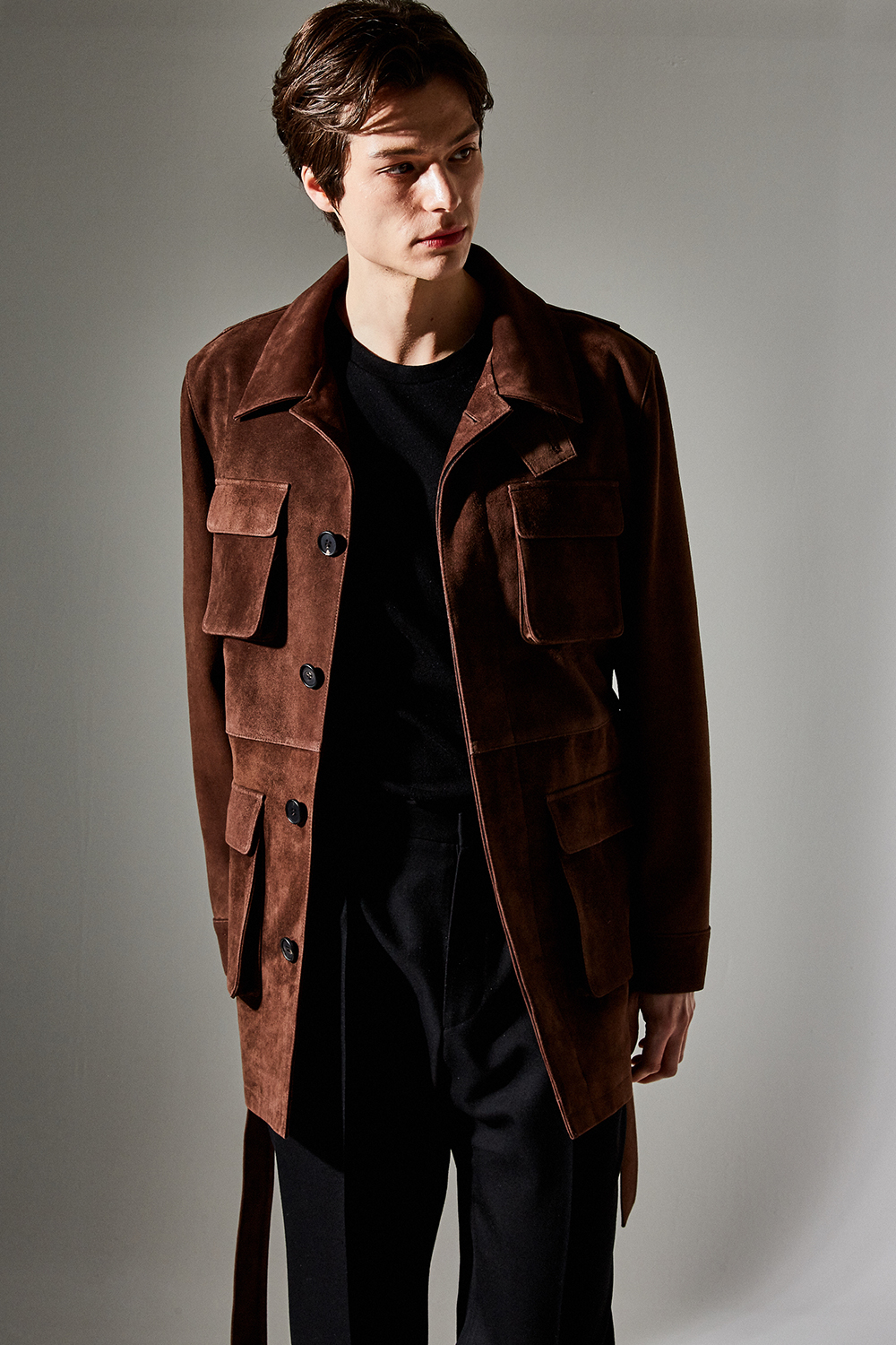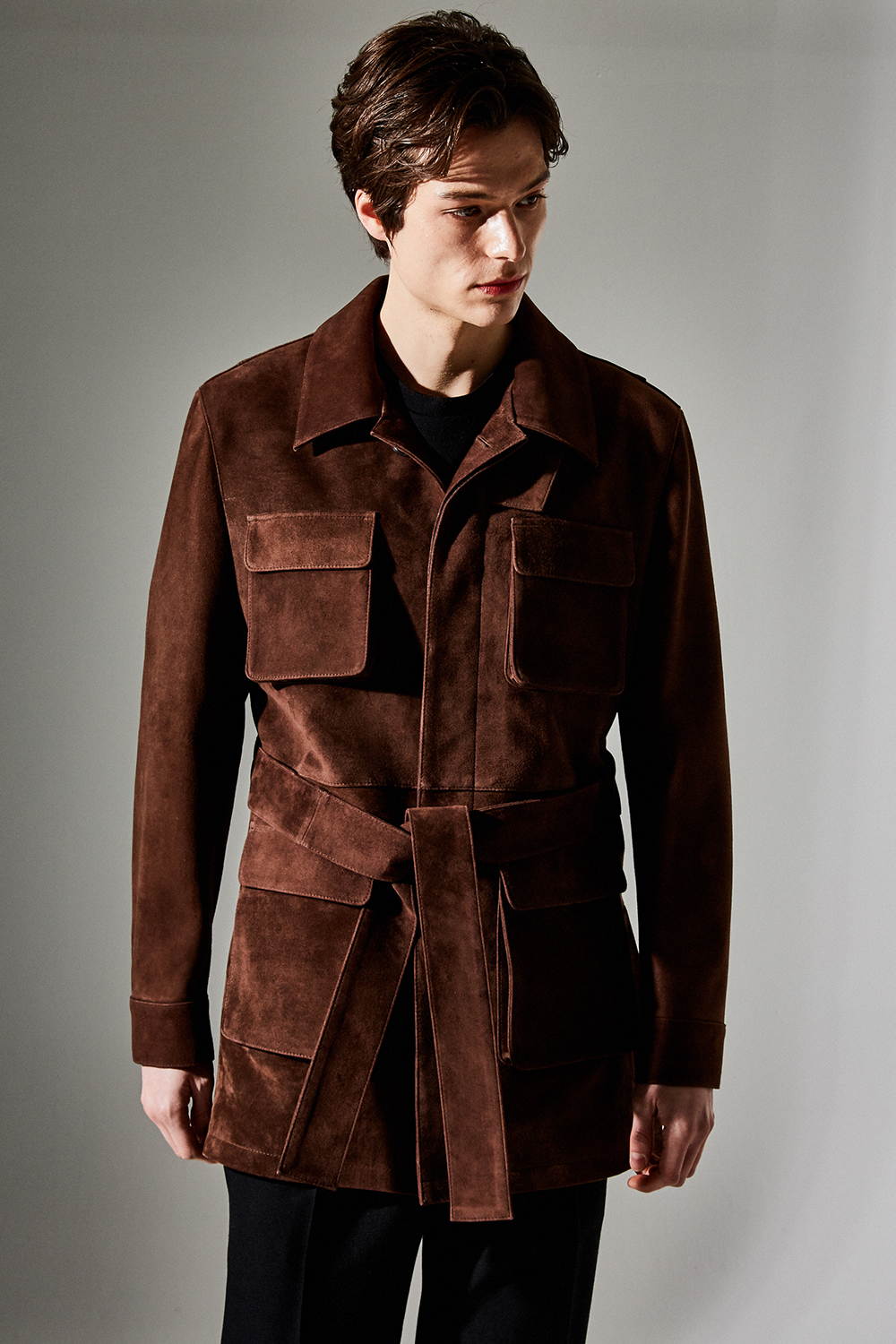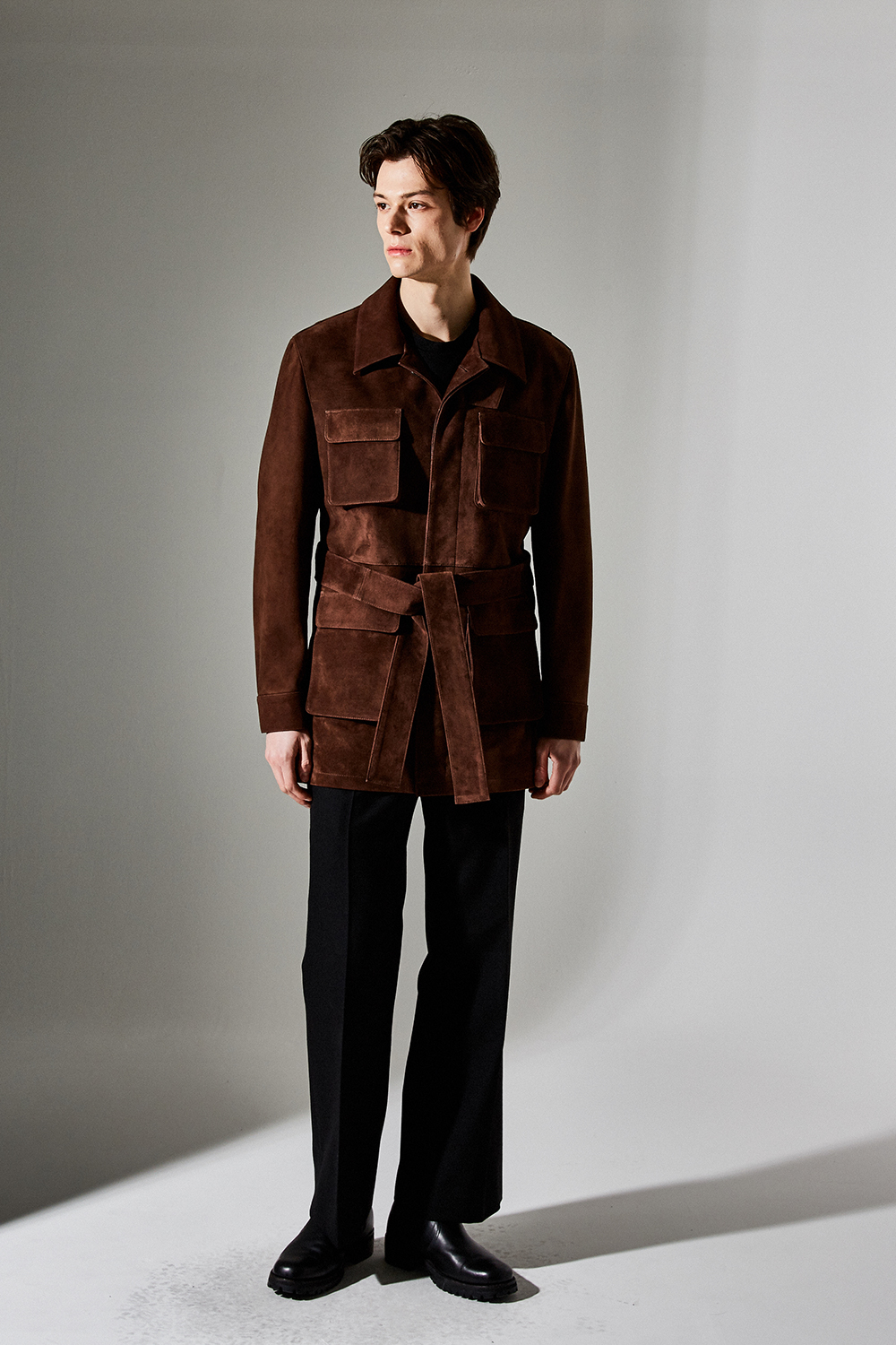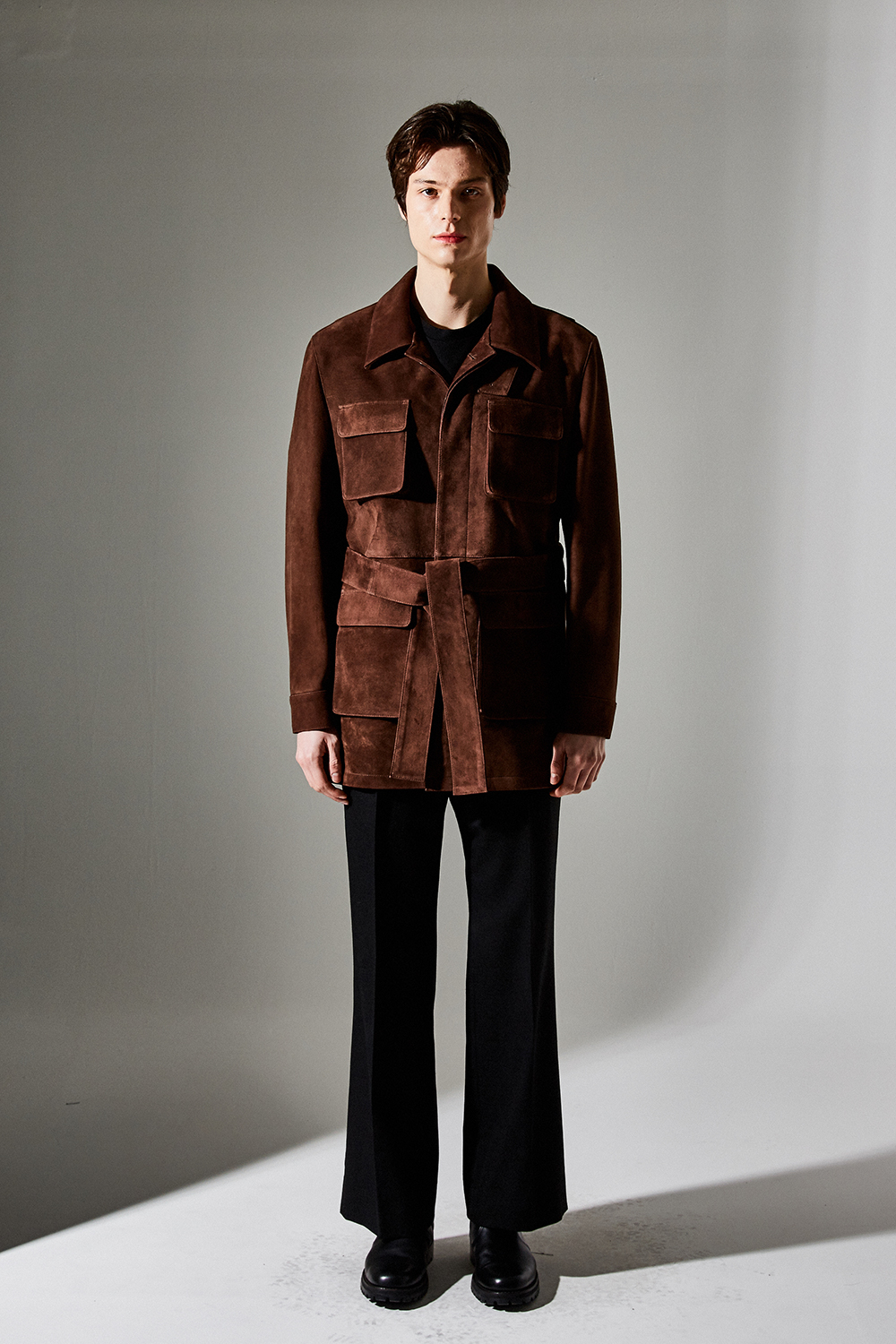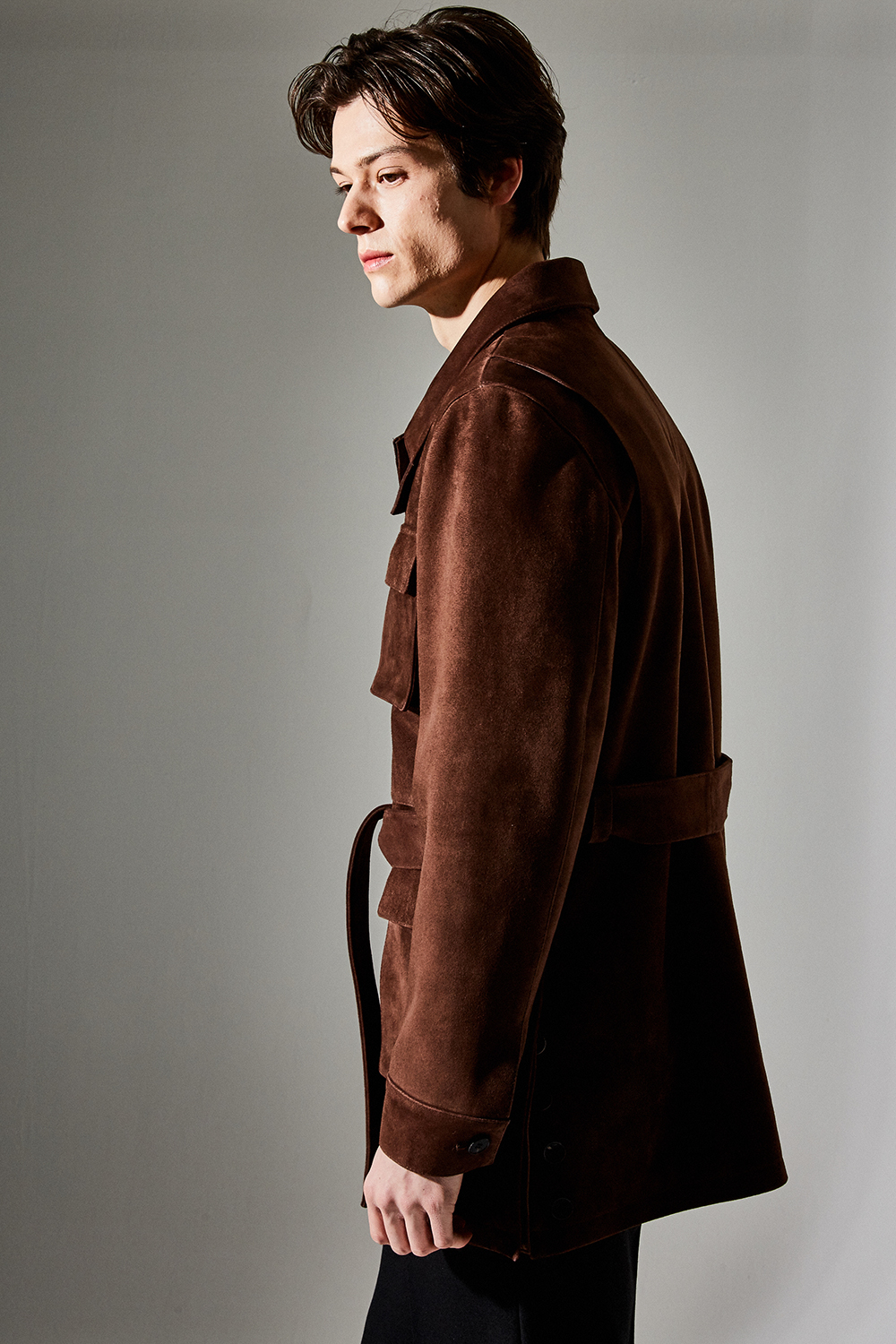 (최상급 스웨이드 100% 양가죽 스웨이드로 결이 매우 고운 터치감과 구김이 덜가며 몸에 감기듯한 자연스러운 착용감과 두께감이 있어 내구성이 좋은 럭셔리 최고급 리얼 스웨이드 소재 입니다.)