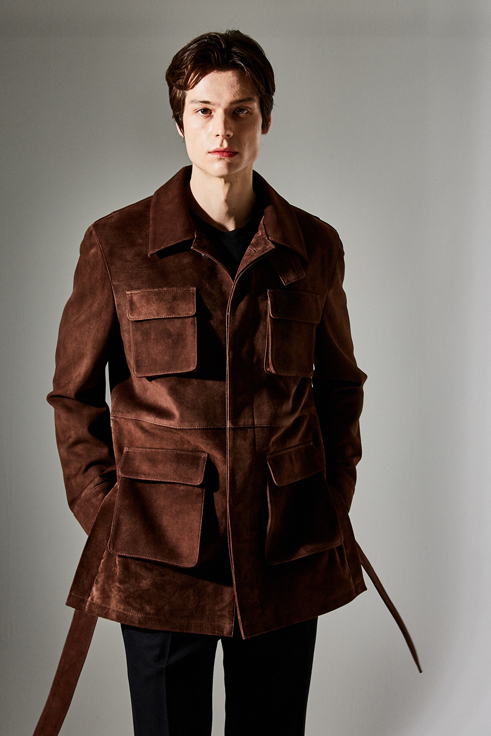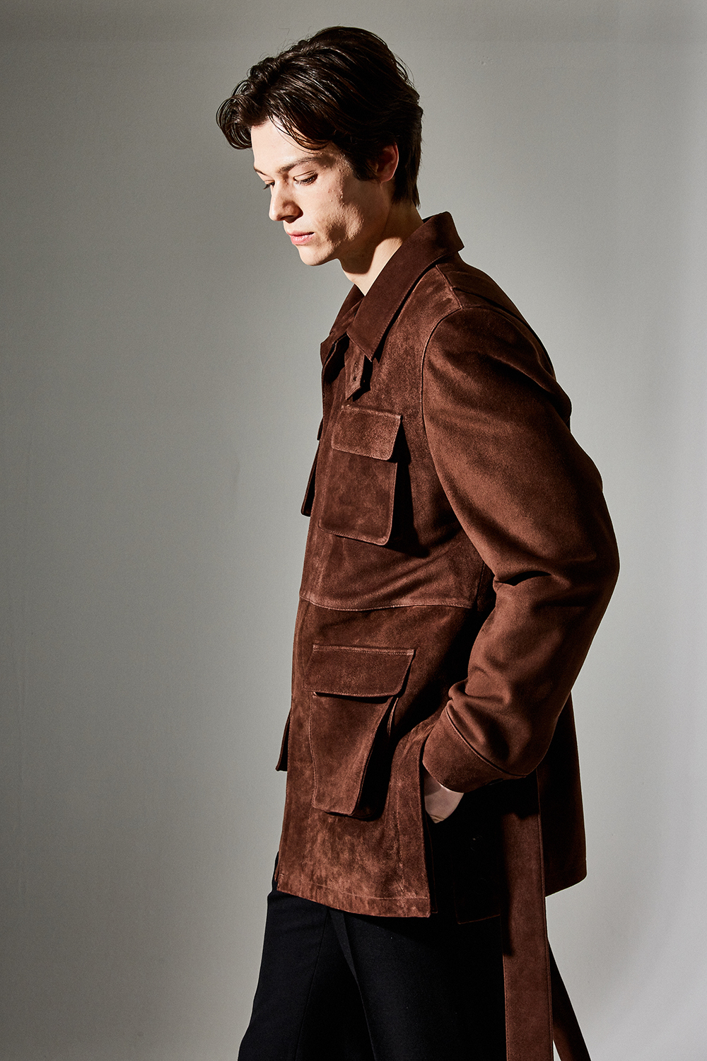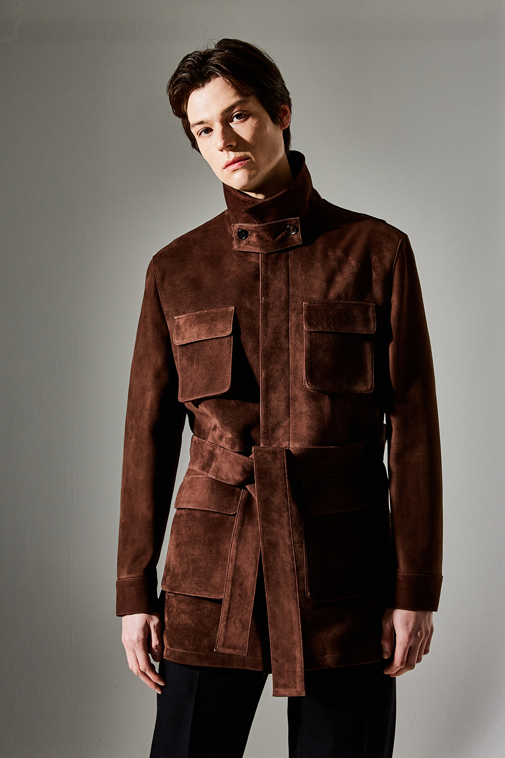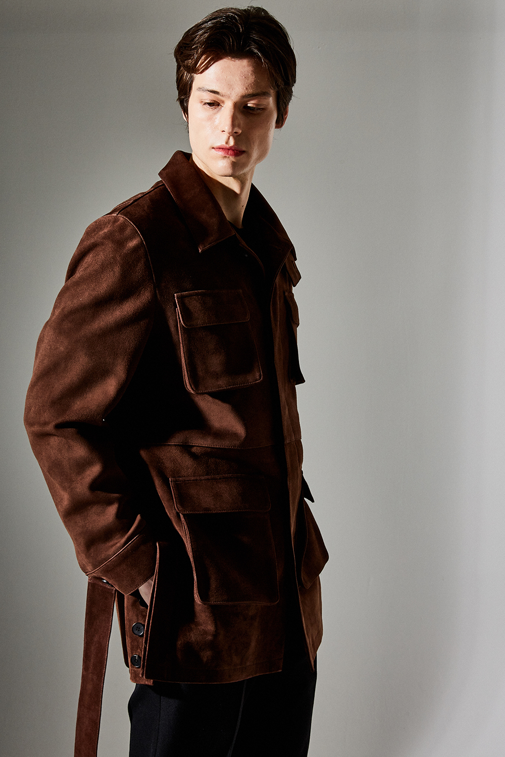 (최상급 스웨이드 100% 양가죽 스웨이드로 결이 매우 고운 터치감과 구김이 덜가며 몸에 감기듯한 자연스러운 착용감과 두께감이 있어 내구성이 좋은 럭셔리 최고급 리얼 스웨이드 소재 입니다.)