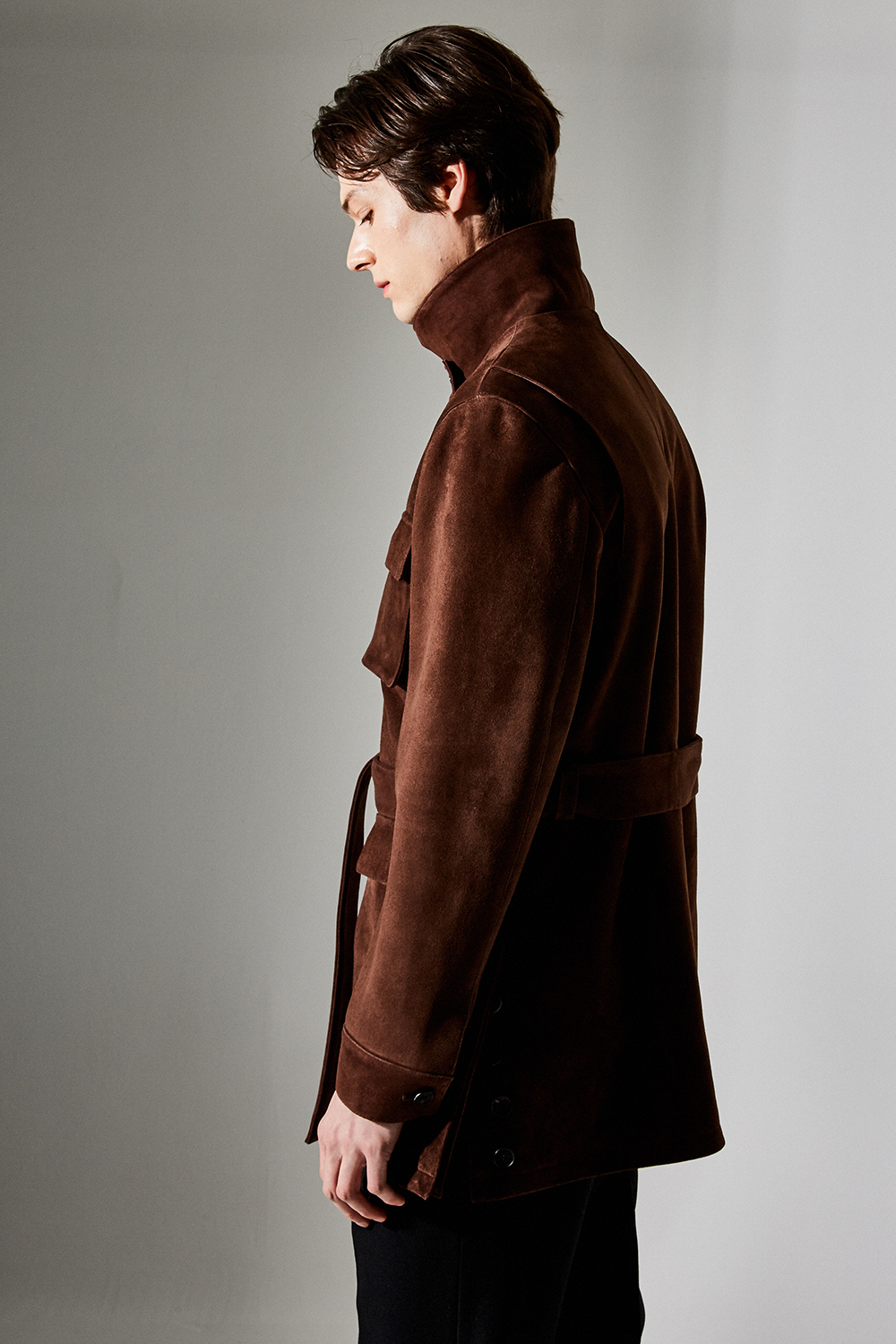 스웨이드 SUEDE 100% / 색상 DEEP-BROWN 딥-브라운 / 소뿔단추 100% / JAPAN YKK TWO-WAY ZIPPER 실버 투웨이지퍼 100%